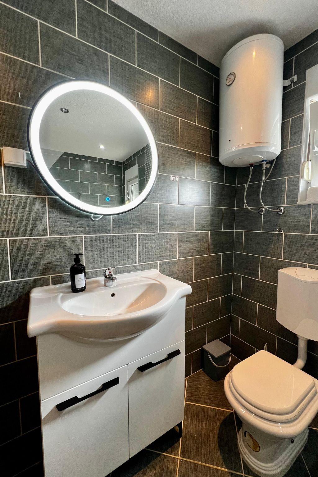 The pebble beach and the sea are 100 metres away. The shop is 800 metres from the flat, while the nearest restaurant is only 400 metres away. The distance from the centre of the island of Vir is 3000 m.