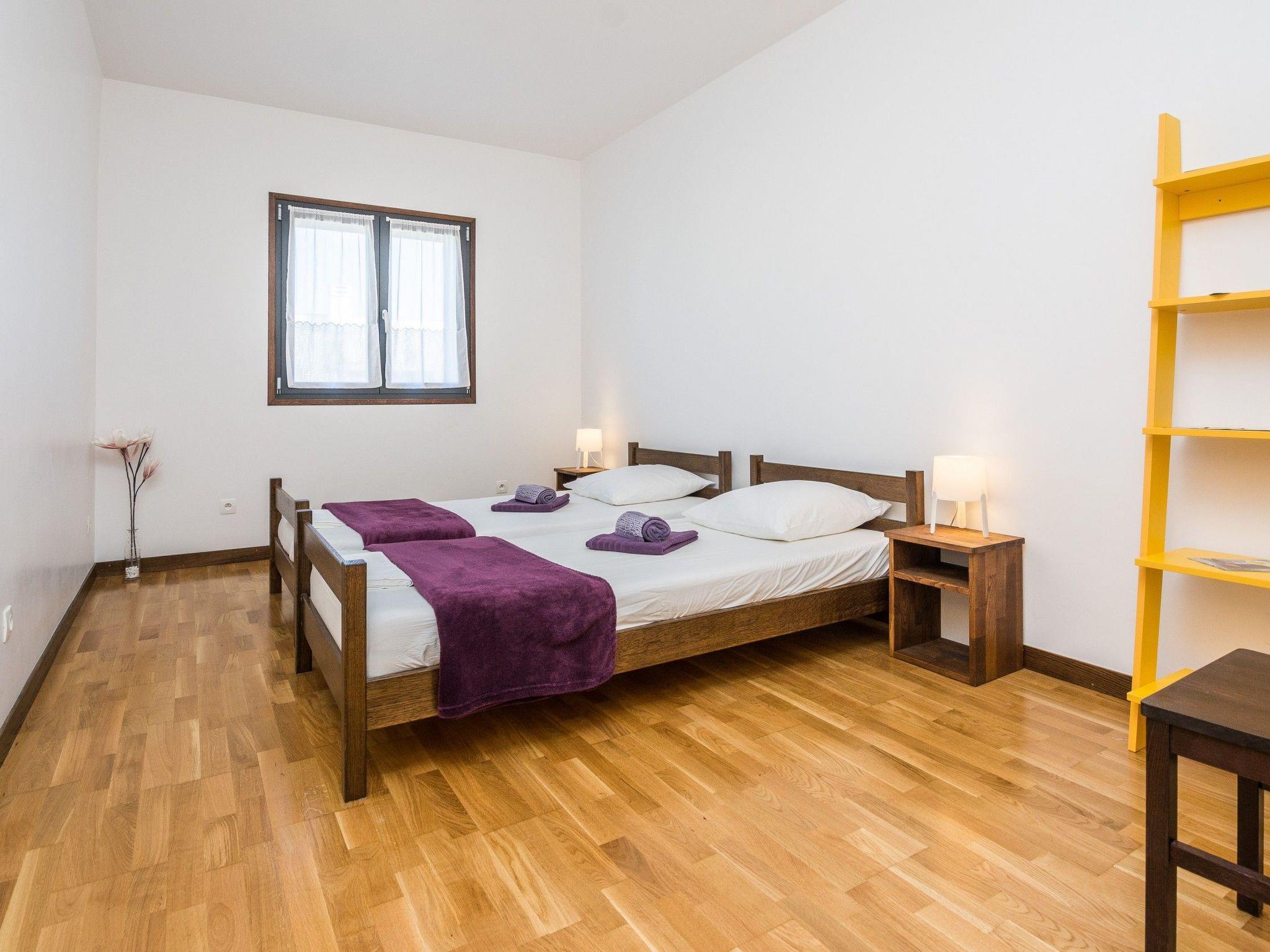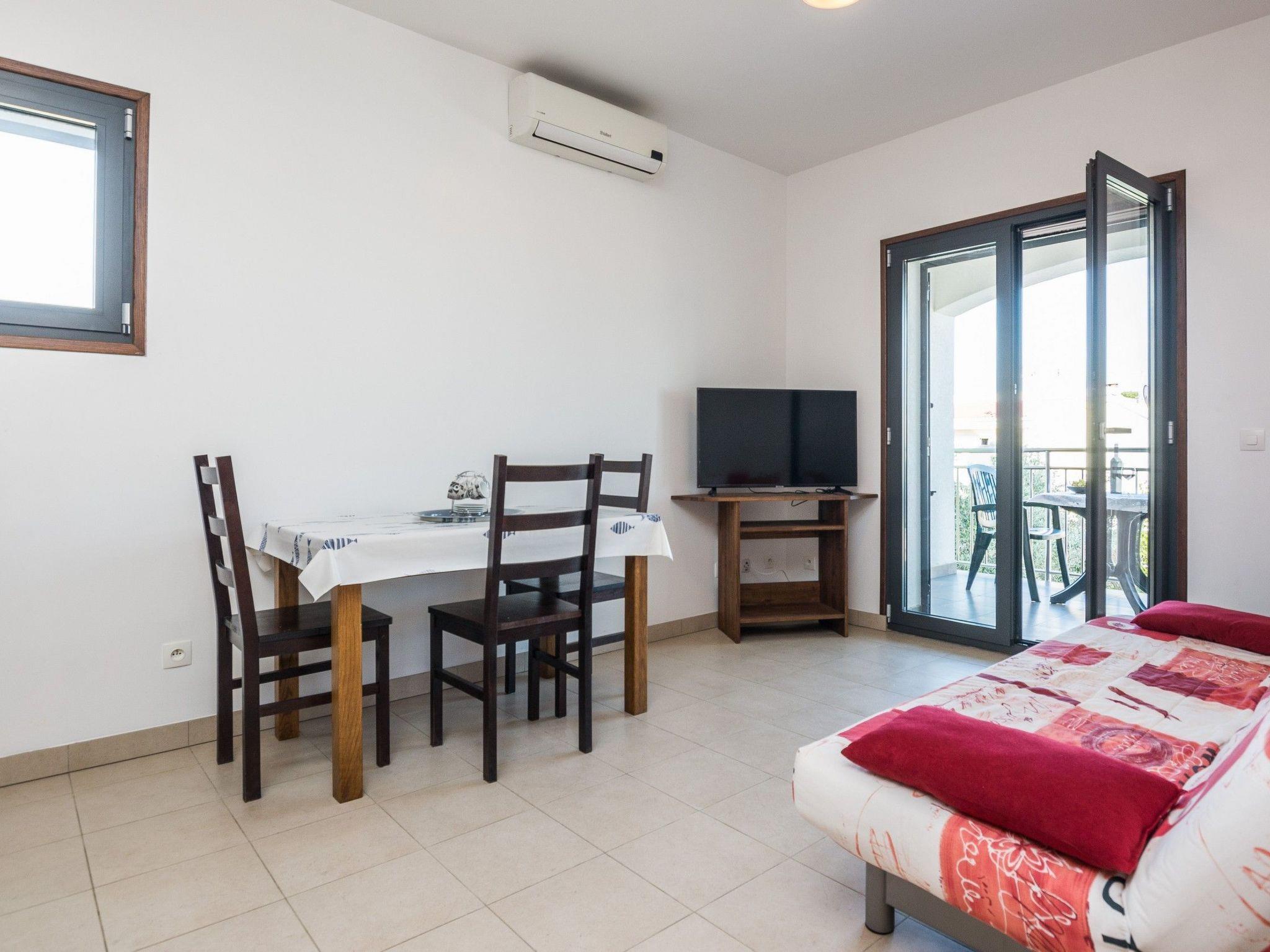 This flat for 2-3 persons is located on the first floor of the house in a quiet area of the island of Vir called Prezida only 70 metres from the pebble beach Prezida. The 39 m² living space is divided into a living/dining room with kitchen, a bedroom with two separate beds and a bathroom with shower. In the living room there is a sofa bed for an additional person. From the living area you can reach a furnished balcony (9 m²). Other features include air conditioning, WLAN Internet, satellite TV, cot, high chair, barbecue and parking on the property.