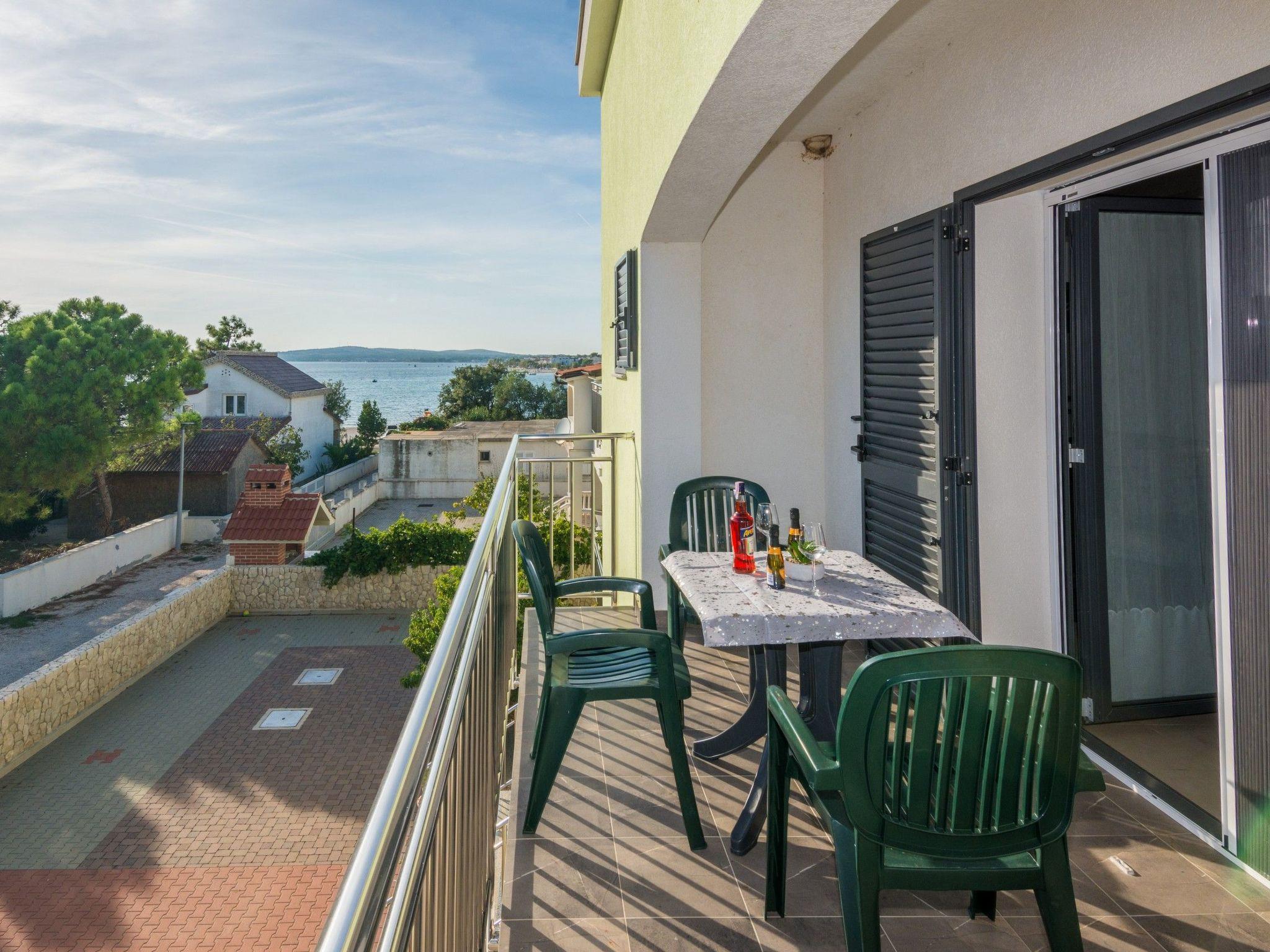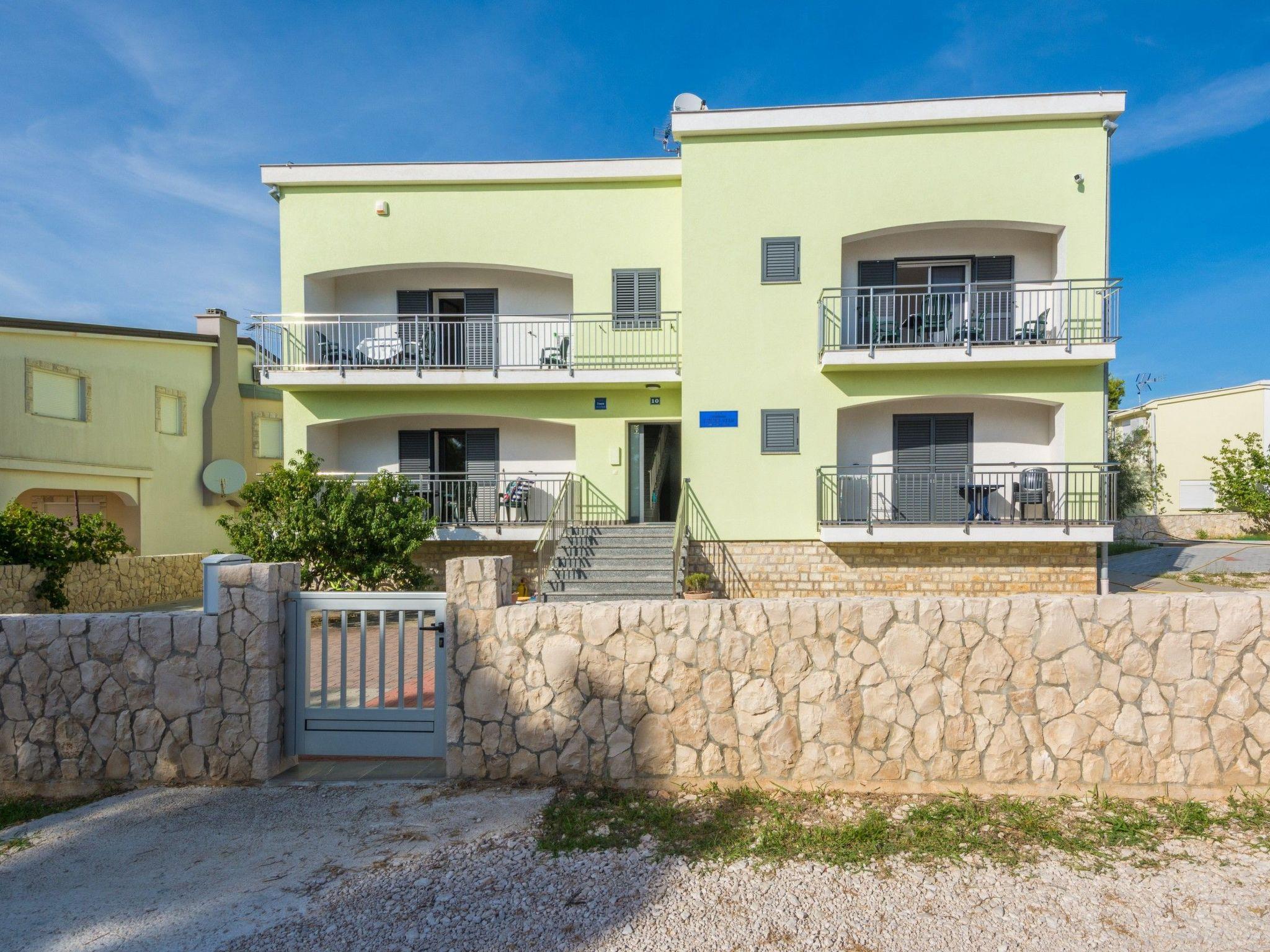 This flat with sea view for 2-3 persons is located on the first floor of the house in a quiet area of the island of Vir called Prezida only 70 metres from the pebble beach Prezida. The 39 m² living space is divided into a living/dining room with a kitchen, a bedroom with a double bed and a bathroom with a shower. In the living room there is a sofa bed for an additional person. From the living area you can reach a furnished balcony (9 m²) with sea view. Other features include air conditioning, WLAN Internet, satellite TV, cot, high chair, barbecue and parking on the property.
