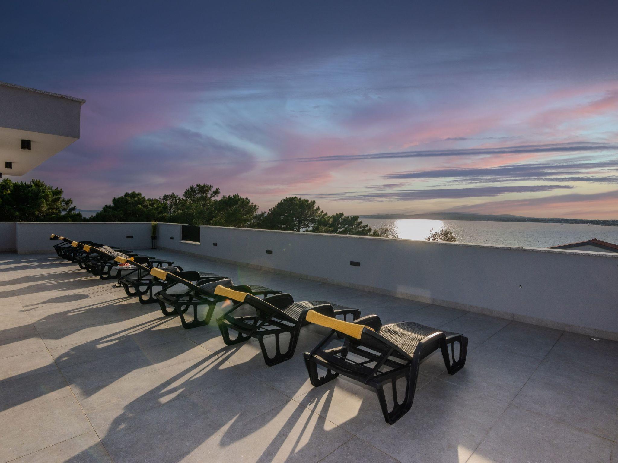 Apartment (52 m²) is divided on a living room with dining room and fully equipped kitchen, two bed-rooms with double beds and bathroom with a shower. To the apartment belongs a roofed balcony (12 m²) with a sea view and loungers, table and chairs. To the apartment belongs a shared roof ter-race with a sea view and loungers.