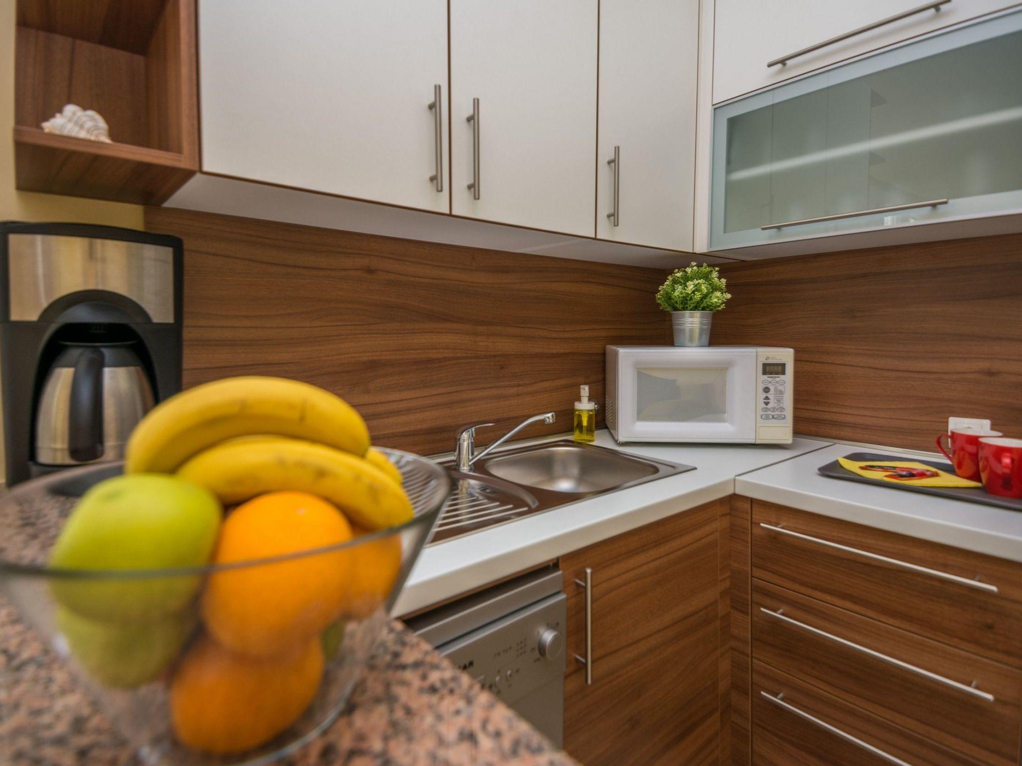 The interior of the flat has been functionally and thoughtfully designed to offer you maximum comfort during your stay. In addition to a cosily furnished living area equipped with a sofa bed for additional guests, you will find a perfectly equipped kitchenette with coffee machine, dishwasher and kettle, providing all the amenities you need for a carefree holiday. Furthermore, a washing machine for your sole use and partial air conditioning provide additional comfort and convenience.