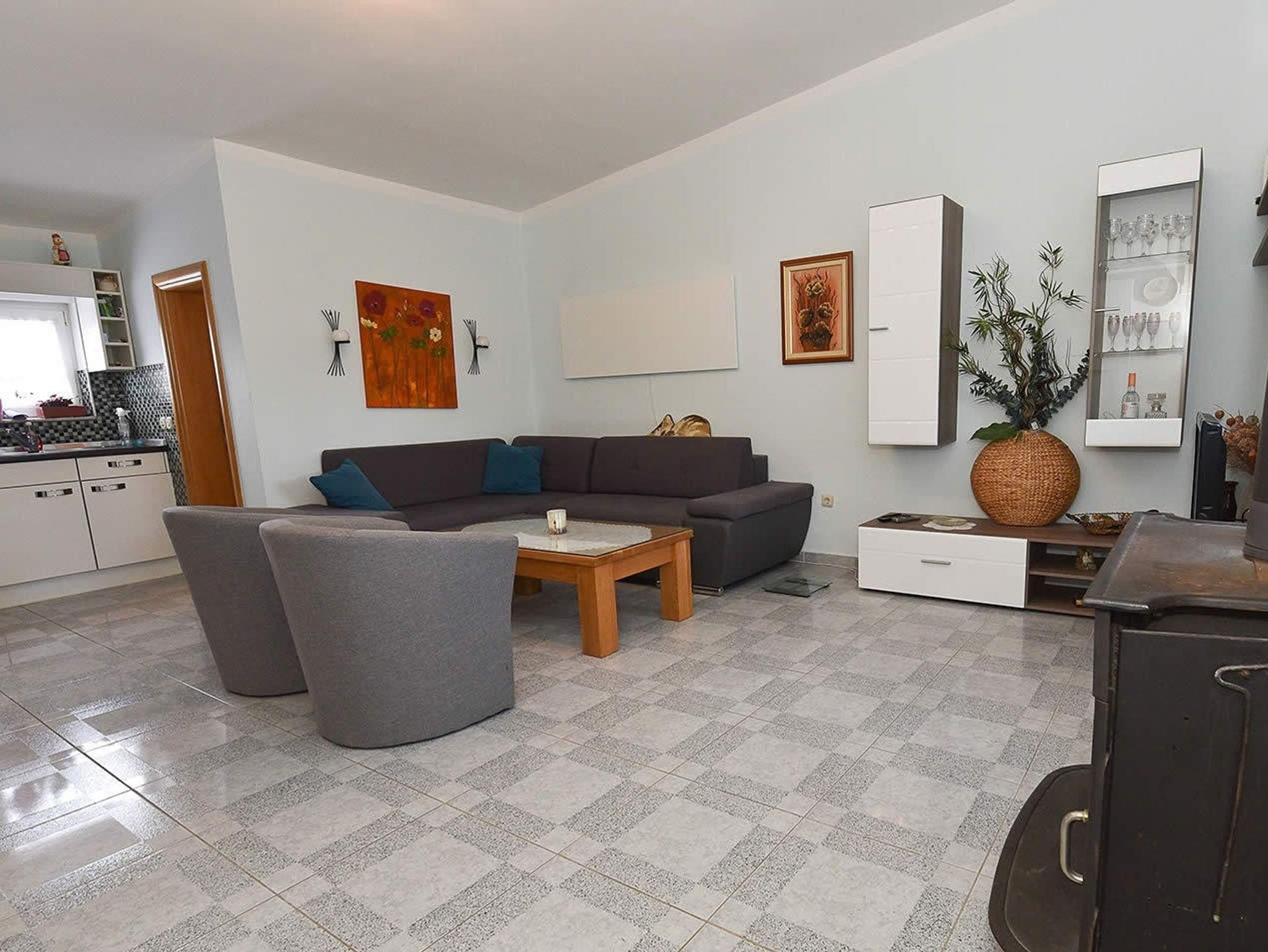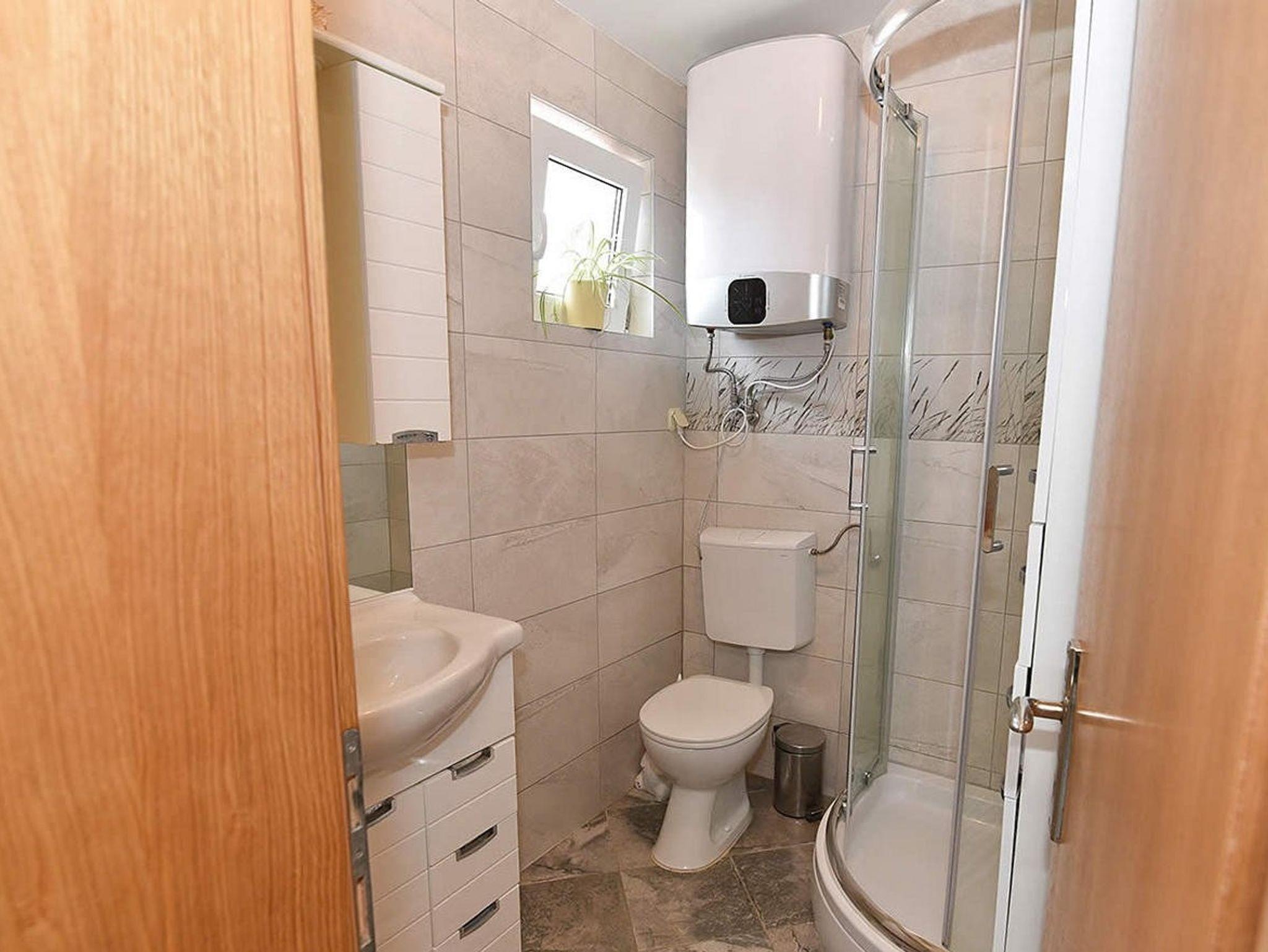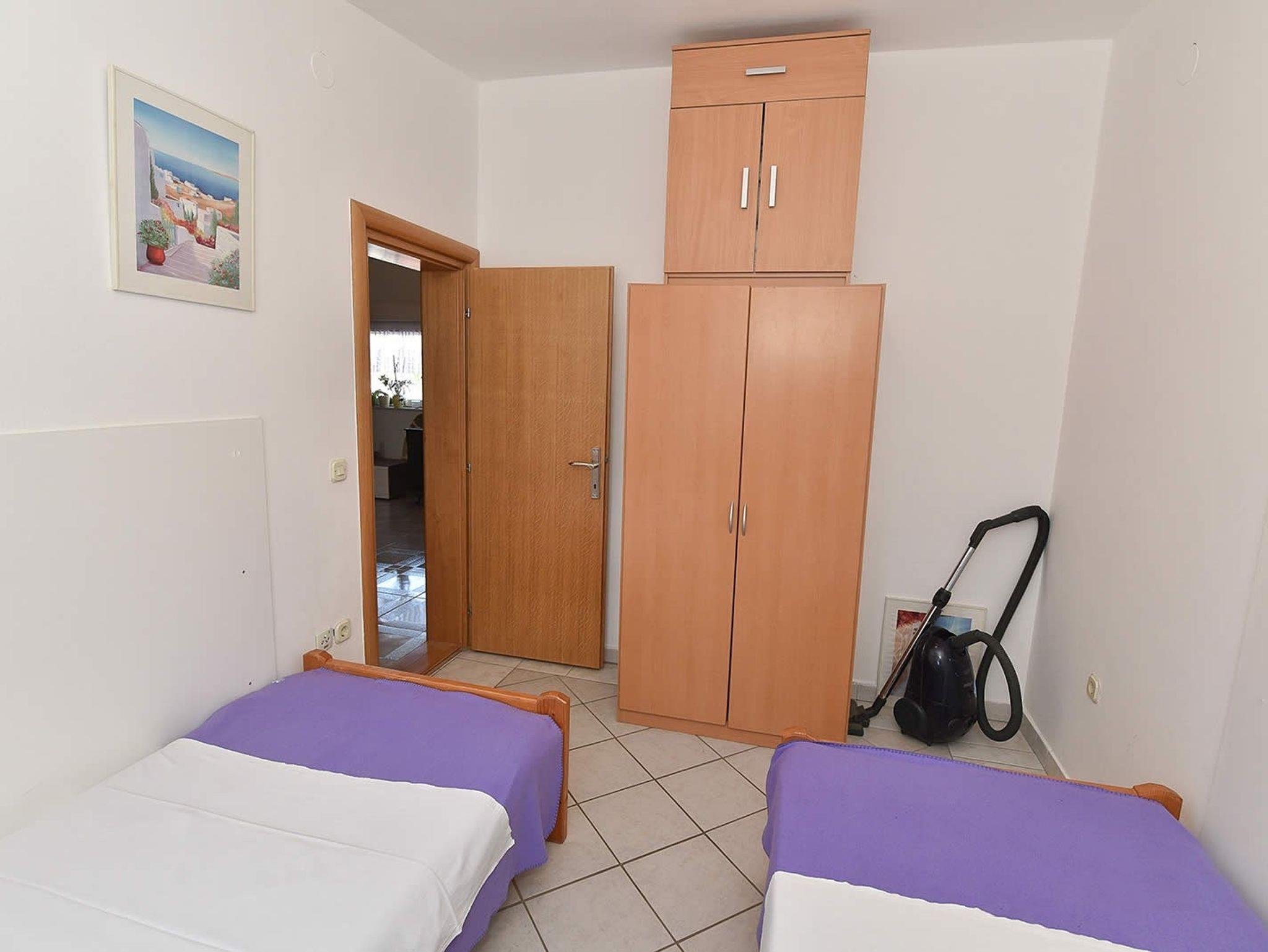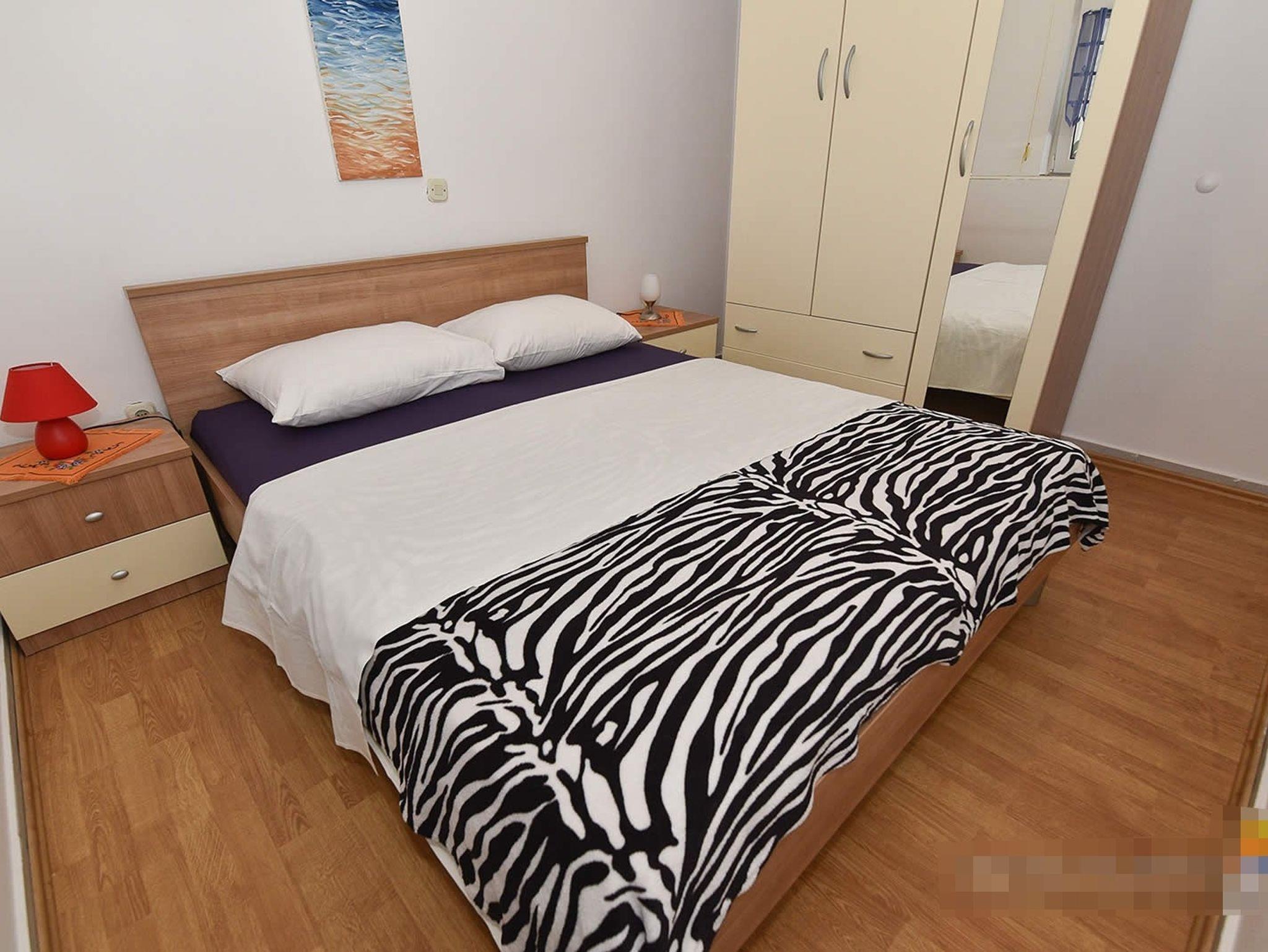 Ferienwohnung bietet Platz für 5 Gäste. Die Betten sind in Schlafzimmern, die es 2 gibt, und in Wohnzimmer, innerhalb einer Gesamtfläche von 46m2, angeordnet. Die Gäste haben eine eigene Terrasse zur Verfügung, auf der sie in warmen Sommernächten genießen können. Das Apartment bietet Meerblick. Es ist erlaubt, Speisen auf dem Gemeinschafts-Grill vorzubereiten. In der Unterkunftseinheit besteht die Möglichkeit des Mitbringens von Haustieren gegen Aufpreis. IM PREIS INBEGRIFFEN: Kurtaxe, Endreinigung, Klimatisierung, Parkplatz, Internet, Kinderbett, Bügeleisen, Bügelbrett, Föhn, Sonnenschirm, Liegestühle. VERBINDLICHE ZUSÄTZLICHE KOSTEN: Aufzahlung für Kurzaufenthalte (prozentualer Zuschlag pro Nächtigungsanzahl: 30% - 1, 20% - 2, 10% - 3). UNVERBINDLICHE ZUSÄTZLICHE KOSTEN: Wäschewaschen (10,00 € Waschen), Haustiere (5,00 € pro Nacht). Die Verfügbarkeit zusätzlicher Dienstleistungen in Ihrem reservierten Termin und die Preise derselben (falls nicht aufgeführt) müssen im Voraus überprüft werden. Zusätzliche Dienstleistungen die in der Zahlungsaufforderung nicht aufgeführt sind werden direkt beim Vermieter bezahlt, angenommen der Gast nutzt auch diese.