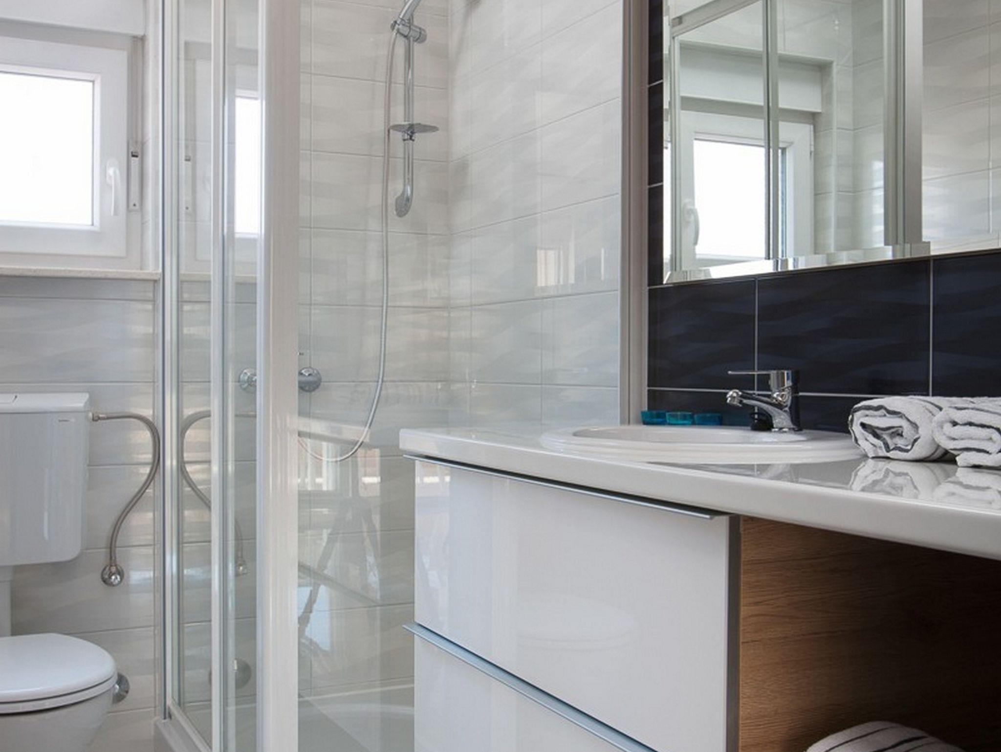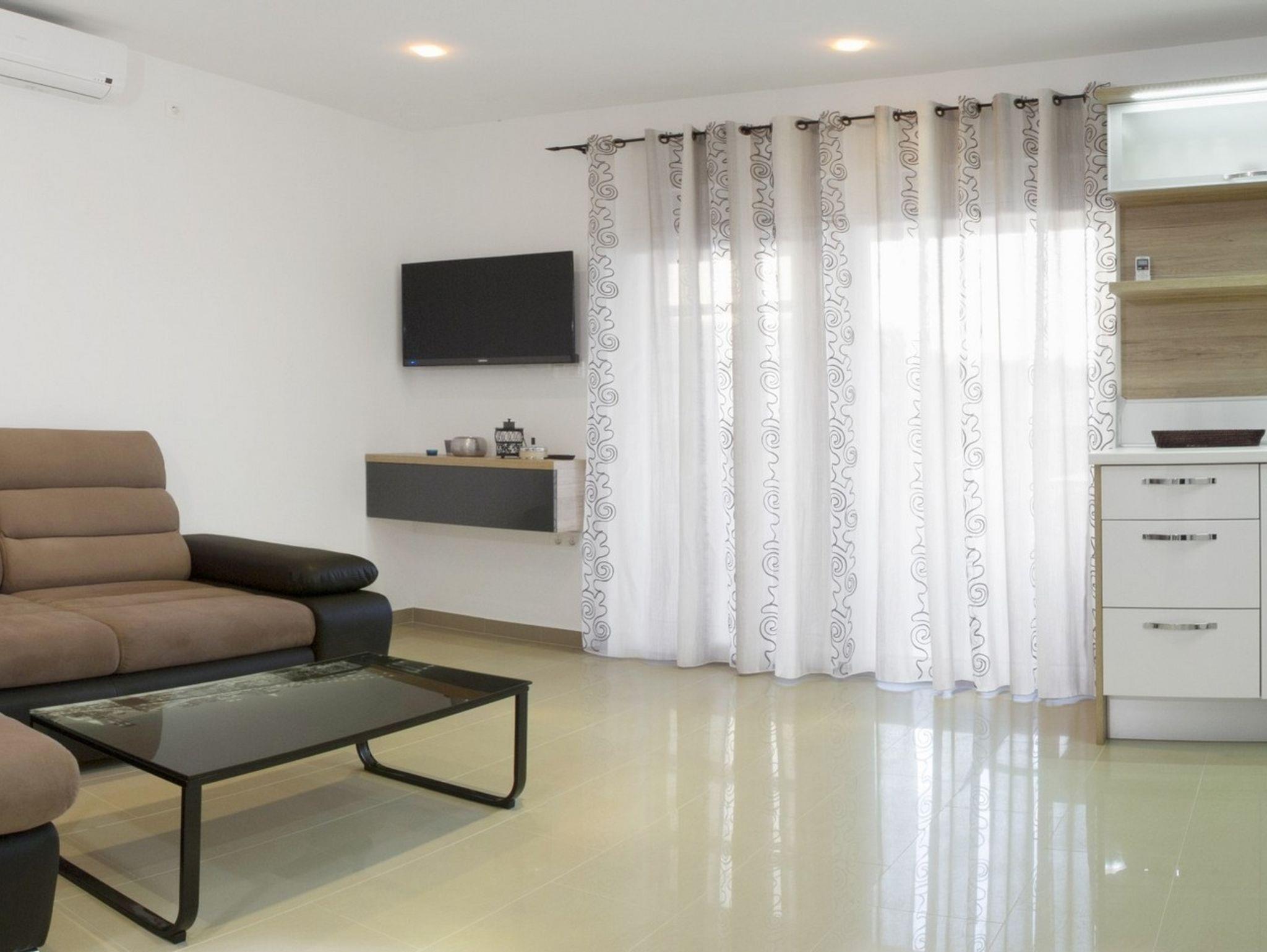 Ferienwohnung bietet Platz für 4 Gäste. Die Betten sind in Schlafzimmern, die es 1 gibt, und in Wohnzimmer, innerhalb einer Gesamtfläche von 28m2, angeordnet. Die Gäste haben eine eigene Terrasse zur Verfügung, auf der sie in warmen Sommernächten genießen können. Das Apartment bietet Meerblick. Es ist erlaubt, Speisen auf dem Gemeinschafts-Grill vorzubereiten. IM PREIS INBEGRIFFEN: Kurtaxe, Endreinigung, Klimatisierung, Parkplatz, Internet, Bügeleisen, Bügelbrett, Föhn. VERBINDLICHE ZUSÄTZLICHE KOSTEN: Aufzahlung für Kurzaufenthalte (prozentualer Zuschlag pro Nächtigungsanzahl: 30% - 1, 20% - 2, 10% - 3). Die Verfügbarkeit zusätzlicher Dienstleistungen in Ihrem reservierten Termin und die Preise derselben (falls nicht aufgeführt) müssen im Voraus überprüft werden. Zusätzliche Dienstleistungen die in der Zahlungsaufforderung nicht aufgeführt sind werden direkt beim Vermieter bezahlt, angenommen der Gast nutzt auch diese.