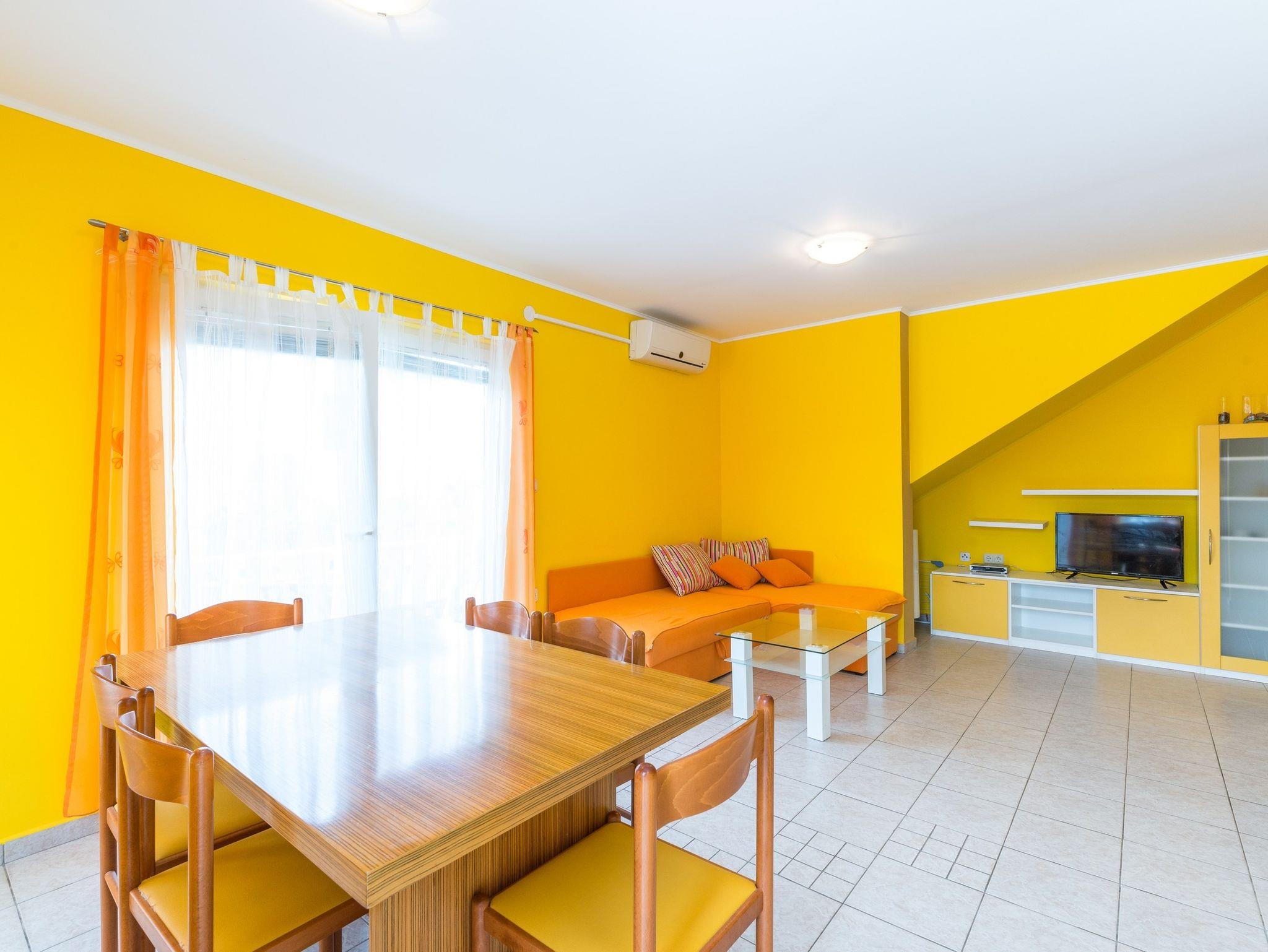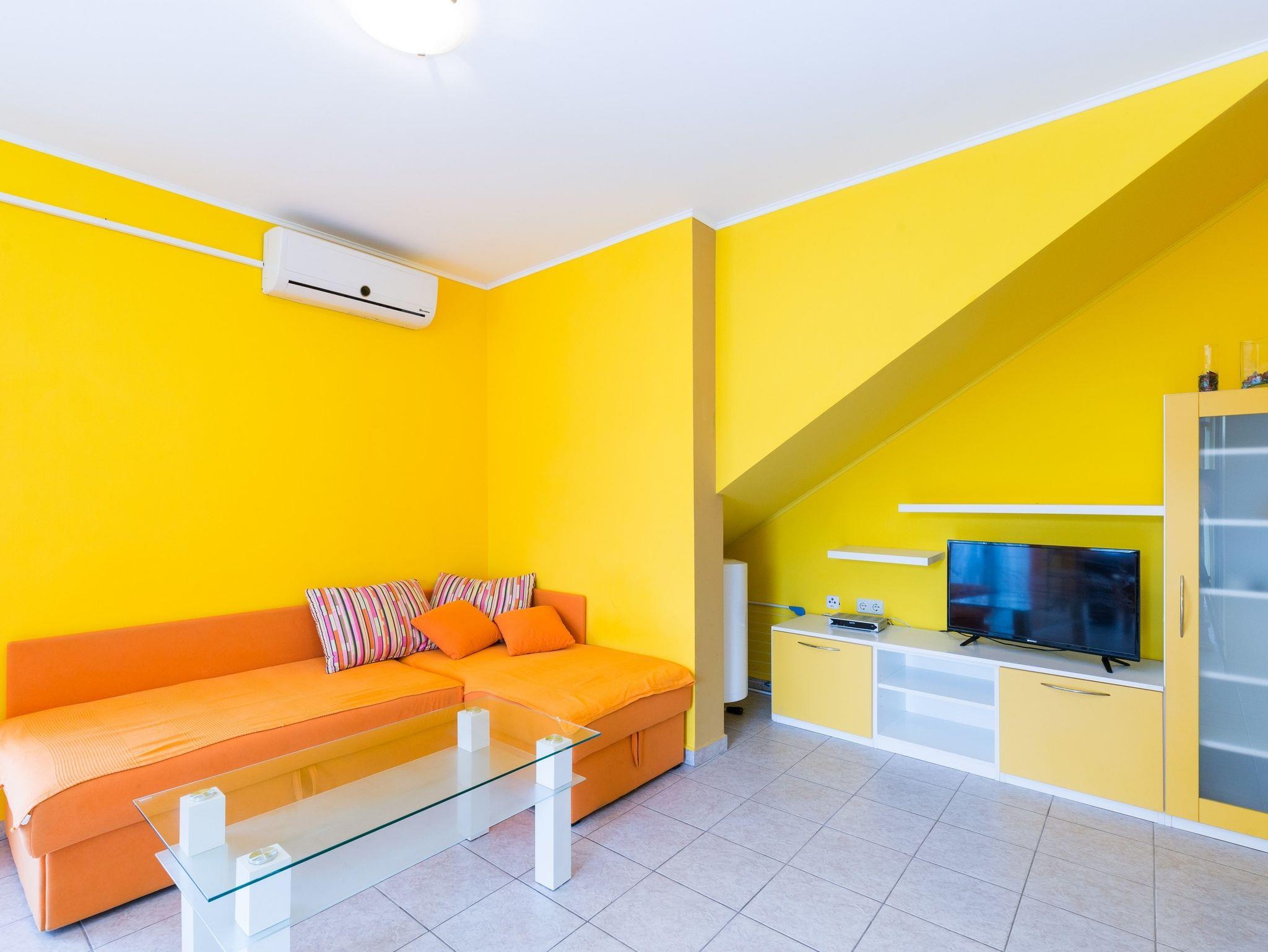 Ferienwohnung bietet Platz für 4 Gäste. Die Betten sind in Schlafzimmern, die es 1 gibt, und in Wohnzimmer, innerhalb einer Gesamtfläche von 38m2, angeordnet. Die Gäste haben einen eigenen Balkon zur Verfügung, auf der sie in warmen Sommernächten genießen können. Es ist erlaubt, Speisen auf dem Gemeinschafts-Grill vorzubereiten. IM PREIS INBEGRIFFEN: Kurtaxe, Endreinigung, Klimatisierung, Parkplatz, Internet, Kinderbett, Föhn. VERBINDLICHE ZUSÄTZLICHE KOSTEN: Aufzahlung für Kurzaufenthalte (prozentualer Zuschlag pro Nächtigungsanzahl: 30% - 1, 20% - 2, 10% - 3). Die Verfügbarkeit zusätzlicher Dienstleistungen in Ihrem reservierten Termin und die Preise derselben (falls nicht aufgeführt) müssen im Voraus überprüft werden. Zusätzliche Dienstleistungen die in der Zahlungsaufforderung nicht aufgeführt sind werden direkt beim Vermieter bezahlt, angenommen der Gast nutzt auch diese.
