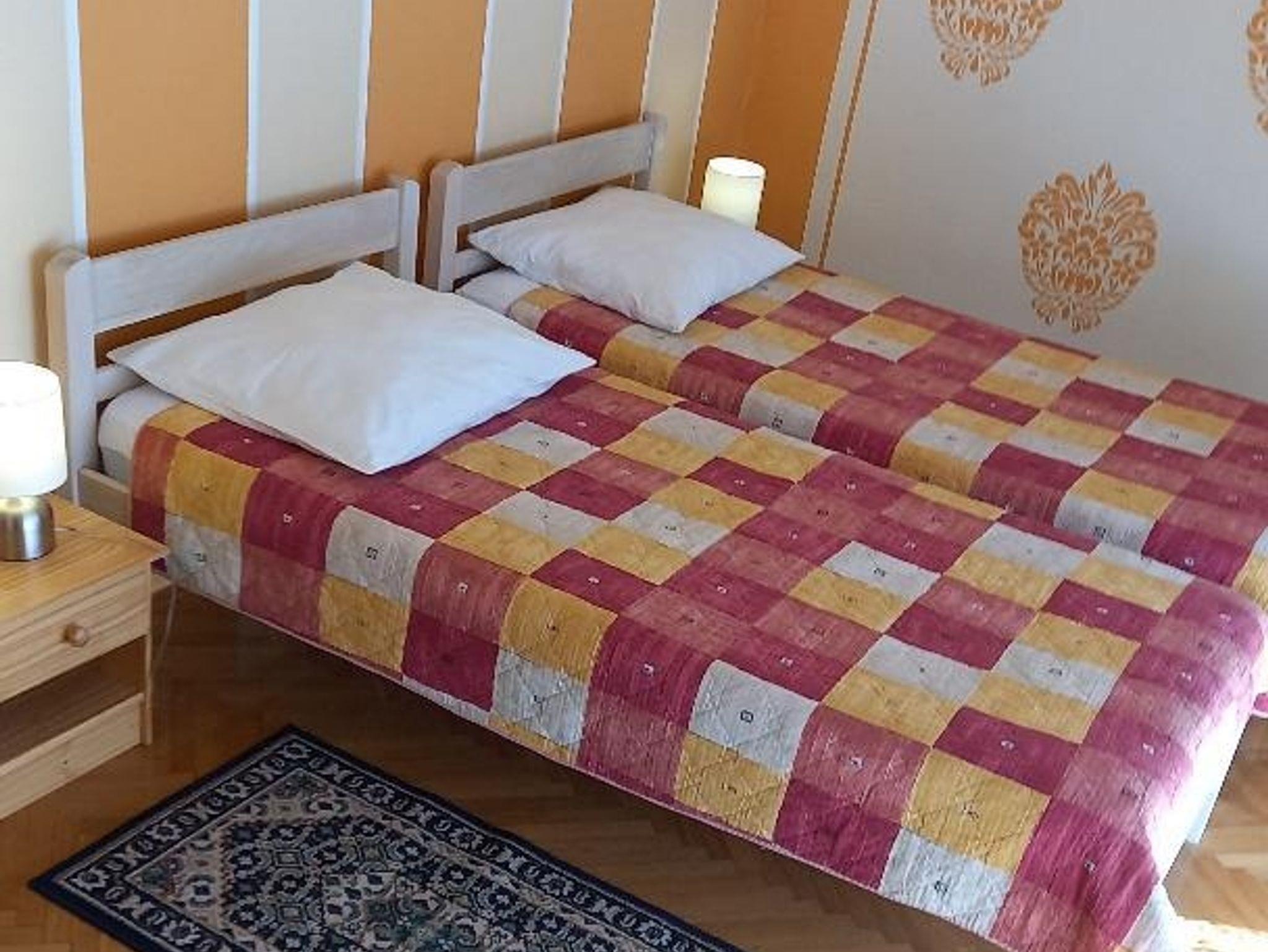 Ferienwohnung bietet Platz für 6 Gäste. Die Betten sind in Schlafzimmern, die es 3 gibt, innerhalb einer Gesamtfläche von 63m2, angeordnet. Die Gäste haben einen eigenen Balkon zur Verfügung, auf der sie in warmen Sommernächten genießen können. Für vollen Genuss und Entspannung gibt es einen privaten Grill für Gäste dieser Unterkunft. Die reservierte Unterkunftseinheit verfügt über einen gemeinsame Terrasse. IM PREIS INBEGRIFFEN: Kurtaxe, Endreinigung, Klimatisierung, Parkplatz, Internet, Bügeleisen. VERBINDLICHE ZUSÄTZLICHE KOSTEN: Aufzahlung für Kurzaufenthalte (prozentualer Zuschlag pro Nächtigungsanzahl: 30% - 1, 20% - 2, 10% - 3). Die Verfügbarkeit zusätzlicher Dienstleistungen in Ihrem reservierten Termin und die Preise derselben (falls nicht aufgeführt) müssen im Voraus überprüft werden. Zusätzliche Dienstleistungen die in der Zahlungsaufforderung nicht aufgeführt sind werden direkt beim Vermieter bezahlt, angenommen der Gast nutzt auch diese. Ermäßigung auf den Grundpreis: Gratistag 14=13 (bei einem Aufenthalt von 14 Tagen oder mehr erhalten Sie einen Gratistag für den Aufenthalt bis 31.12.26).