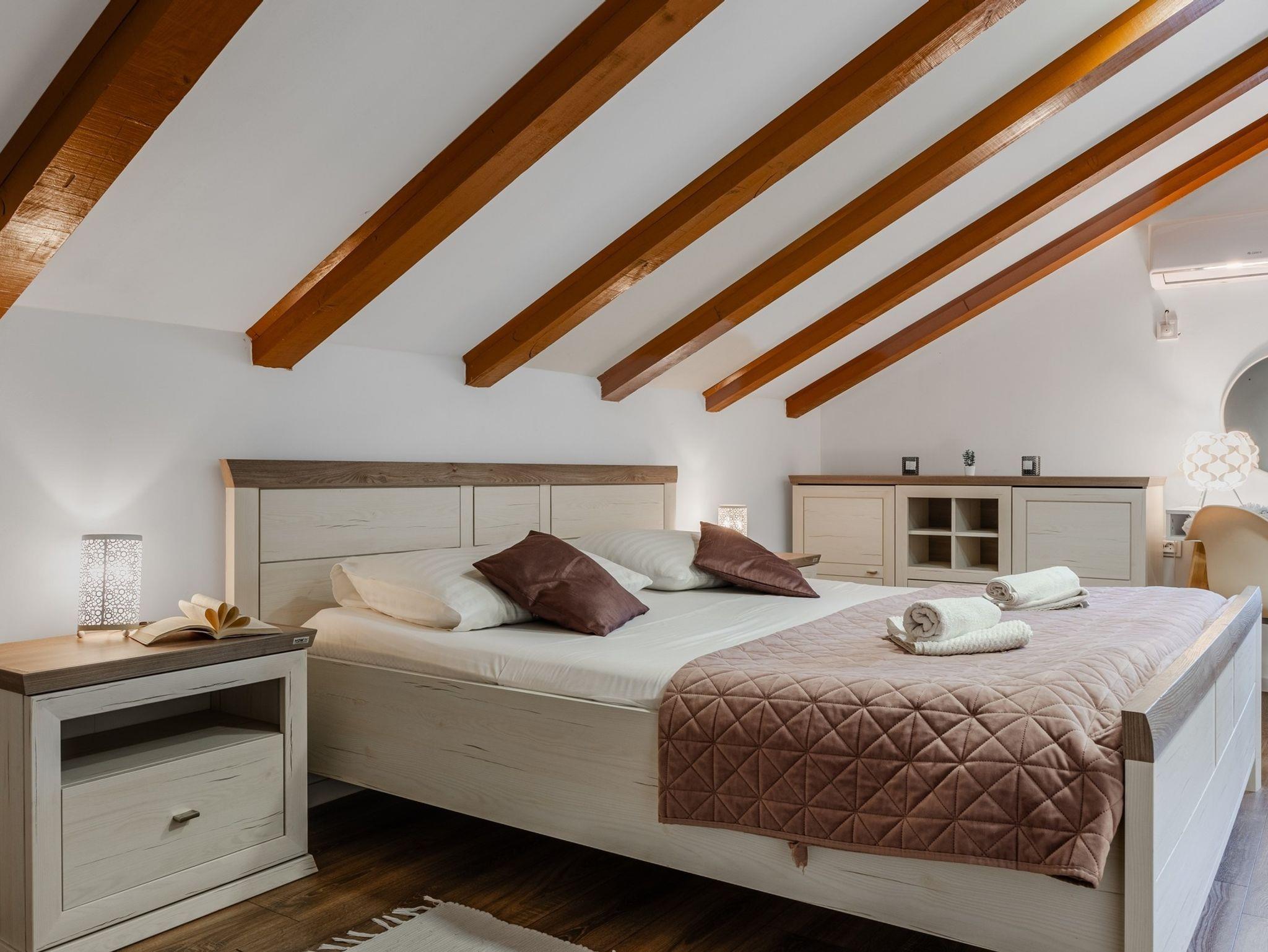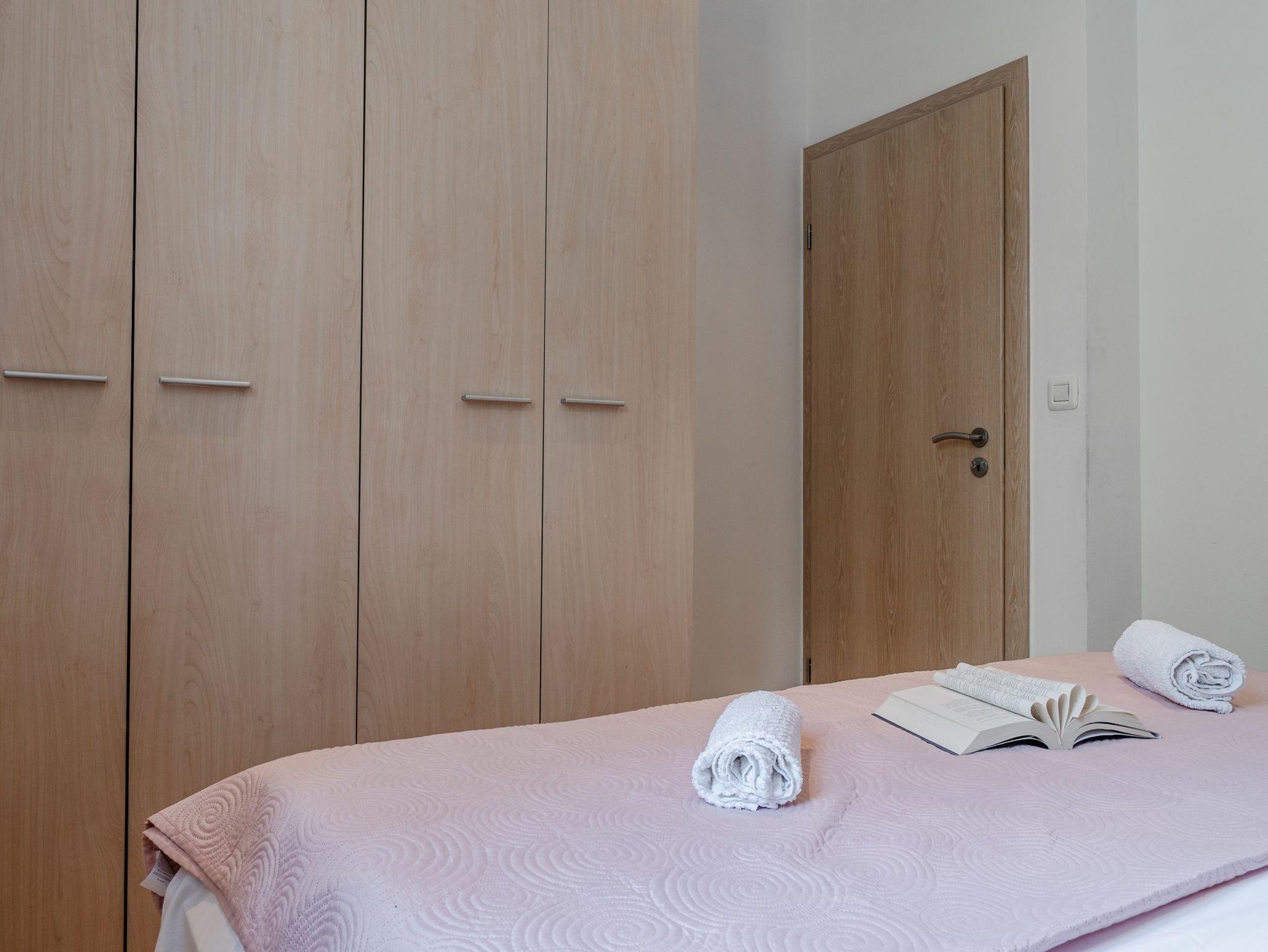 Ferienwohnung bietet Platz für 5 Gäste. Die Betten sind in Schlafzimmern, die es 3 gibt, innerhalb einer Gesamtfläche von 60m2, angeordnet. Die Gäste haben einen eigenen Balkon zur Verfügung, auf der sie in warmen Sommernächten genießen können. Es ist erlaubt, Speisen auf dem Gemeinschafts-Grill vorzubereiten. In der Unterkunftseinheit besteht die Möglichkeit des Mitbringens von Haustieren, und die Dienstleistung ist im Preis der Unterkunft enthalten. IM PREIS INBEGRIFFEN: Kurtaxe, Endreinigung, Klimatisierung, Parkplatz, Internet, Haustiere, Bügeleisen, Bügelbrett, Föhn. Die Verfügbarkeit zusätzlicher Dienstleistungen in Ihrem reservierten Termin und die Preise derselben (falls nicht aufgeführt) müssen im Voraus überprüft werden. Zusätzliche Dienstleistungen die in der Zahlungsaufforderung nicht aufgeführt sind werden direkt beim Vermieter bezahlt, angenommen der Gast nutzt auch diese.