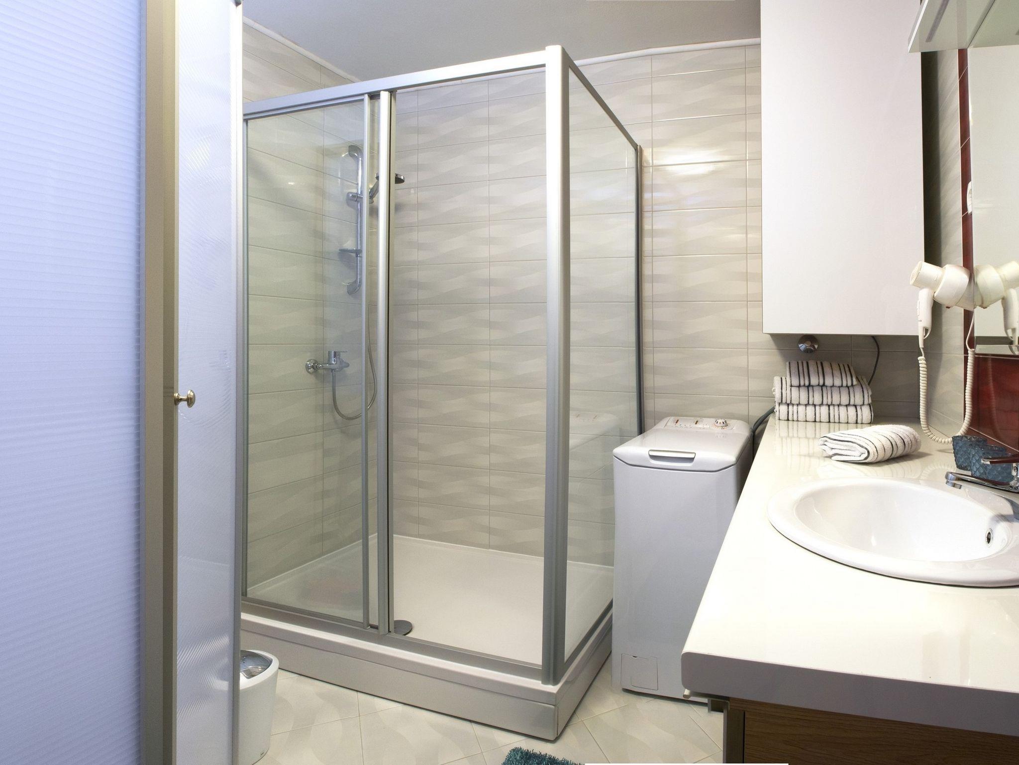 Ferienwohnung bietet Platz für 6 Gäste. Die Betten sind in Schlafzimmern, die es 2 gibt, und in Wohnzimmer, innerhalb einer Gesamtfläche von 72m2, angeordnet. Die Gäste haben eine eigene Terrasse zur Verfügung, auf der sie in warmen Sommernächten genießen können. Das Apartment bietet Meerblick. Es ist erlaubt, Speisen auf dem Gemeinschafts-Grill vorzubereiten. IM PREIS INBEGRIFFEN: Kurtaxe, Endreinigung, Klimatisierung, Parkplatz, Internet, Bügeleisen, Bügelbrett, Föhn. VERBINDLICHE ZUSÄTZLICHE KOSTEN: Aufzahlung für Kurzaufenthalte (prozentualer Zuschlag pro Nächtigungsanzahl: 30% - 1, 20% - 2, 10% - 3). Die Verfügbarkeit zusätzlicher Dienstleistungen in Ihrem reservierten Termin und die Preise derselben (falls nicht aufgeführt) müssen im Voraus überprüft werden. Zusätzliche Dienstleistungen die in der Zahlungsaufforderung nicht aufgeführt sind werden direkt beim Vermieter bezahlt, angenommen der Gast nutzt auch diese.