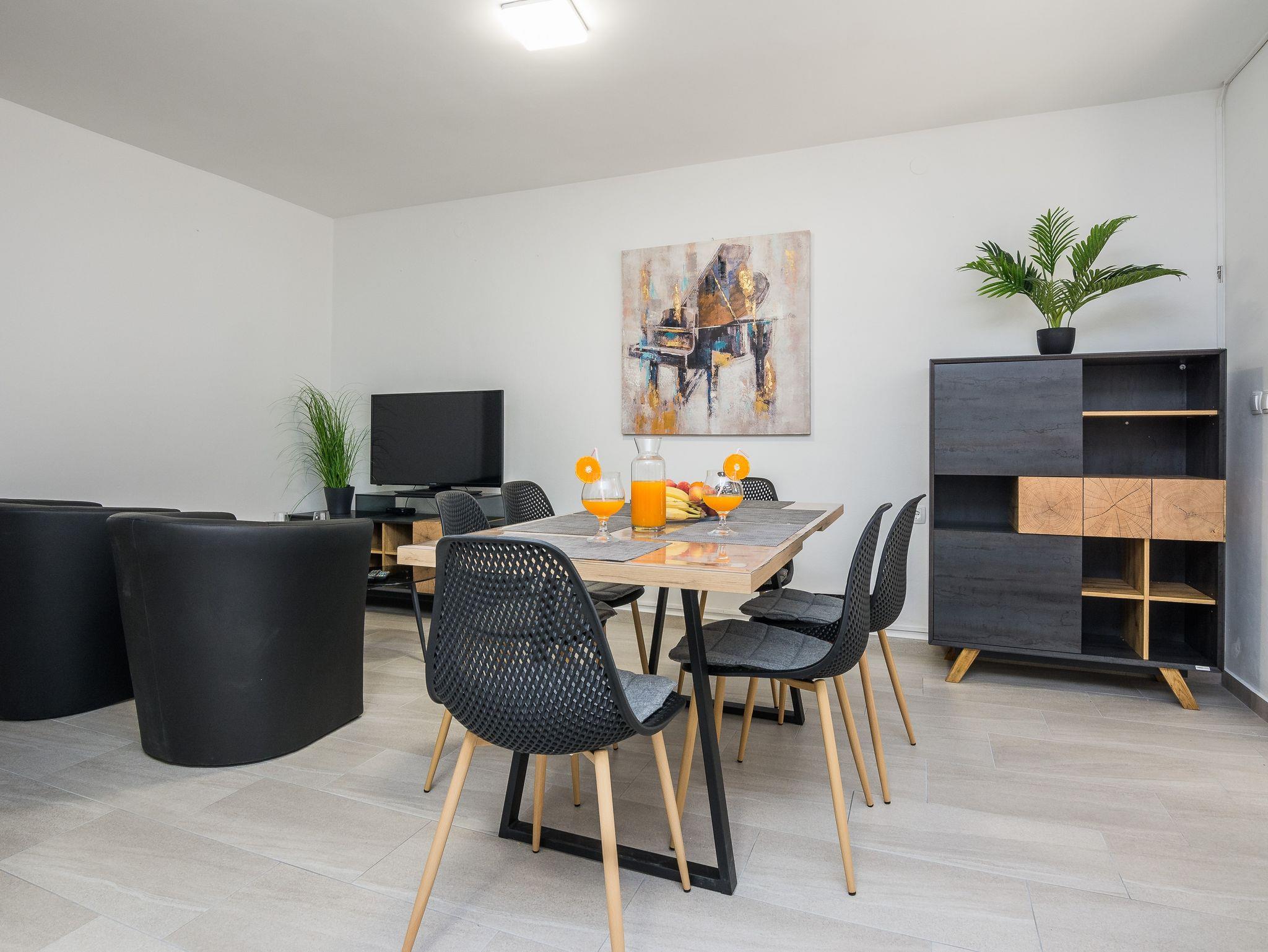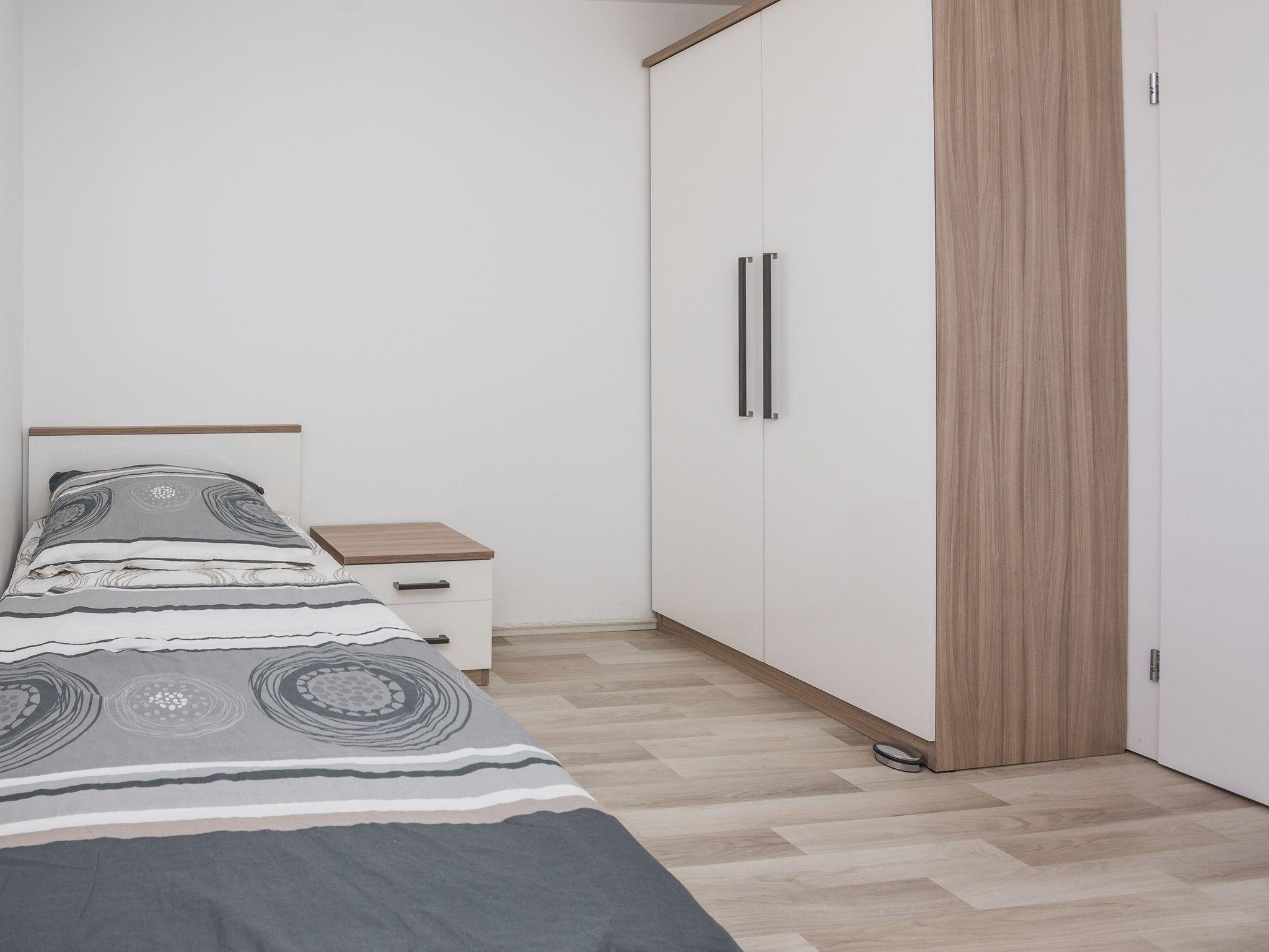 Ferienwohnung bietet Platz für 7 Gäste. Die Betten sind in Schlafzimmern, die es 4 gibt, innerhalb einer Gesamtfläche von 69m2, angeordnet. Die Gäste haben eine eigene Terrasse zur Verfügung, auf der sie in warmen Sommernächten genießen können. Es ist erlaubt, Speisen auf dem Gemeinschafts-Grill vorzubereiten. IM PREIS INBEGRIFFEN: Kurtaxe, Endreinigung, Klimatisierung, Parkplatz, Internet, Kinderbett, Bügeleisen, Bügelbrett, Föhn. VERBINDLICHE ZUSÄTZLICHE KOSTEN: Aufzahlung für Kurzaufenthalte (prozentualer Zuschlag pro Nächtigungsanzahl: 30% - 1, 20% - 2, 10% - 3). Die Verfügbarkeit zusätzlicher Dienstleistungen in Ihrem reservierten Termin und die Preise derselben (falls nicht aufgeführt) müssen im Voraus überprüft werden. Zusätzliche Dienstleistungen die in der Zahlungsaufforderung nicht aufgeführt sind werden direkt beim Vermieter bezahlt, angenommen der Gast nutzt auch diese.