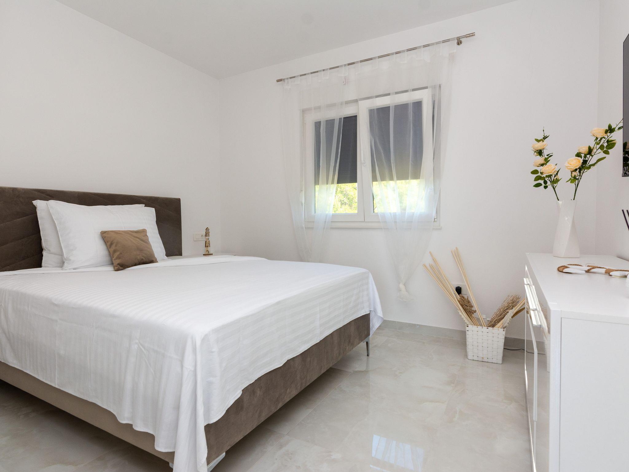 Ferienwohnung bietet Platz für 5 Gäste. Die Betten sind in Schlafzimmern, die es 2 gibt, und in Wohnzimmer, innerhalb einer Gesamtfläche von 68m2, angeordnet. Die Gäste haben eine eigene Terrasse zur Verfügung, auf der sie in warmen Sommernächten genießen können. Das Apartment bietet Meerblick. Es ist erlaubt, Speisen auf dem Gemeinschafts-Grill vorzubereiten. IM PREIS INBEGRIFFEN: Kurtaxe, Endreinigung, Klimatisierung, Parkplatz, Internet, Kinderbett, Bügeleisen, Bügelbrett, Föhn. VERBINDLICHE ZUSÄTZLICHE KOSTEN: Aufzahlung für Kurzaufenthalte (prozentualer Zuschlag pro Nächtigungsanzahl: 30% - 1, 20% - 2, 10% - 3). Die Verfügbarkeit zusätzlicher Dienstleistungen in Ihrem reservierten Termin und die Preise derselben (falls nicht aufgeführt) müssen im Voraus überprüft werden. Zusätzliche Dienstleistungen die in der Zahlungsaufforderung nicht aufgeführt sind werden direkt beim Vermieter bezahlt, angenommen der Gast nutzt auch diese.