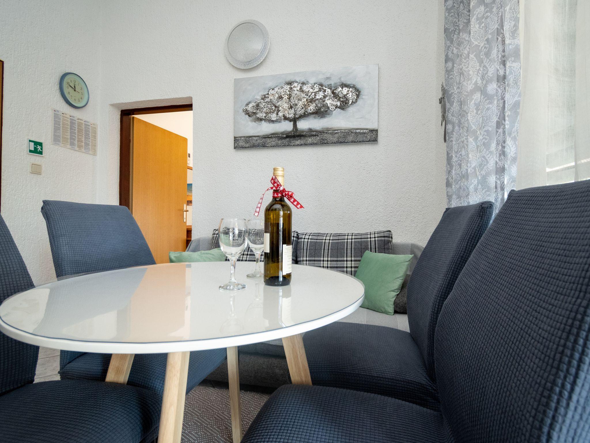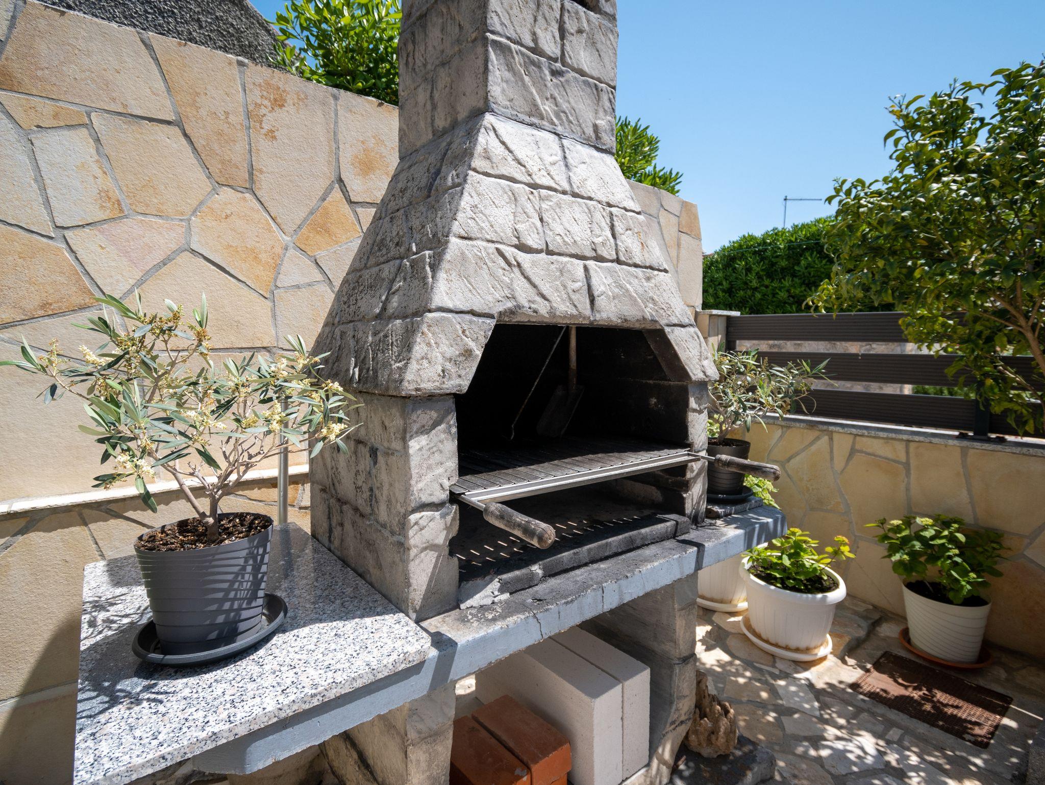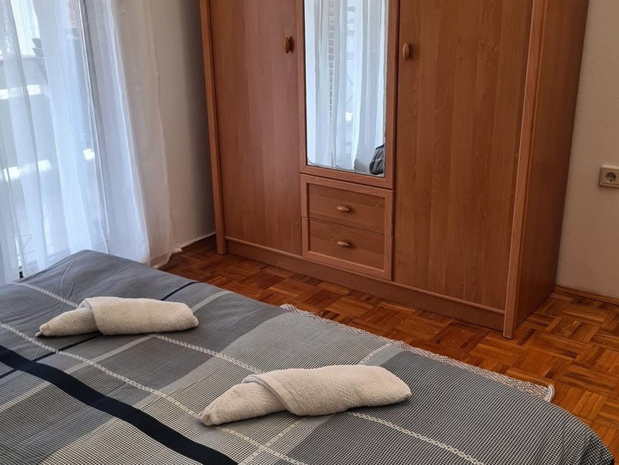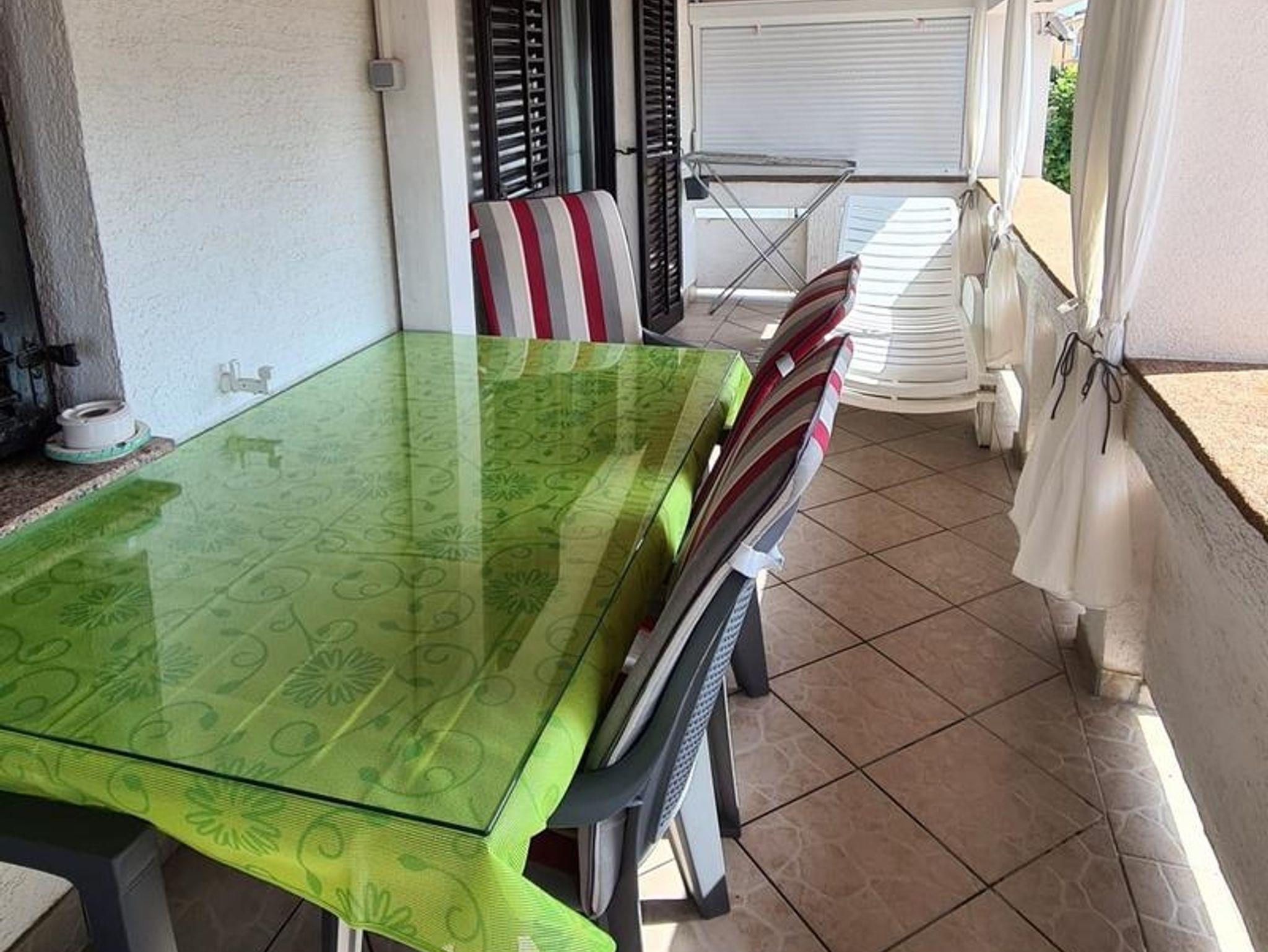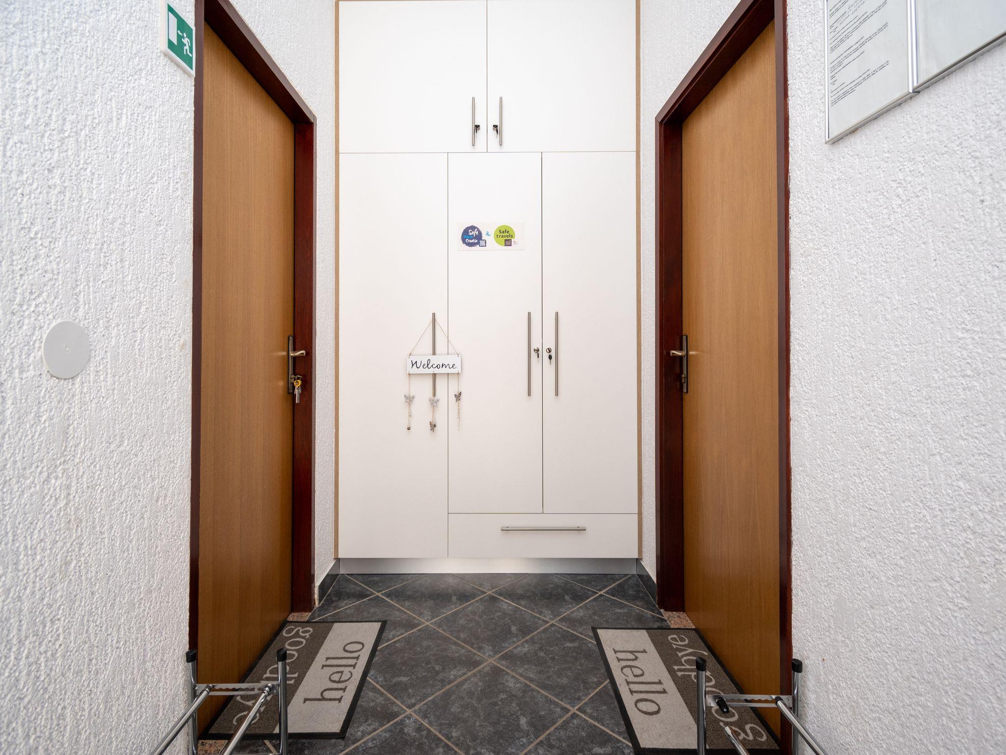 Ferienwohnung bietet Platz für 4 Gäste. Die Betten sind in Schlafzimmern, die es 1 gibt, und in Esszimmer, innerhalb einer Gesamtfläche von 24m2, angeordnet. Die Gäste haben eine eigene Terrasse zur Verfügung, auf der sie in warmen Sommernächten genießen können. Das Apartment bietet Meerblick. Es ist erlaubt, Speisen auf dem Gemeinschafts-Grill vorzubereiten. In der Unterkunftseinheit besteht die Möglichkeit des Mitbringens von Haustieren gegen Aufpreis. IM PREIS INBEGRIFFEN: Kurtaxe, Endreinigung, Klimatisierung, Parkplatz, Internet, Bootsanlegeplatz, Bügeleisen, Bügelbrett, Föhn. VERBINDLICHE ZUSÄTZLICHE KOSTEN: Aufzahlung für Kurzaufenthalte (prozentualer Zuschlag pro Nächtigungsanzahl: 30% - 1, 20% - 2, 10% - 3). UNVERBINDLICHE ZUSÄTZLICHE KOSTEN: Wäschewaschen (5,00 € Waschen), Haustiere (5,00 € pro Nacht). Die Verfügbarkeit zusätzlicher Dienstleistungen in Ihrem reservierten Termin und die Preise derselben (falls nicht aufgeführt) müssen im Voraus überprüft werden. Zusätzliche Dienstleistungen die in der Zahlungsaufforderung nicht aufgeführt sind werden direkt beim Vermieter bezahlt, angenommen der Gast nutzt auch diese.