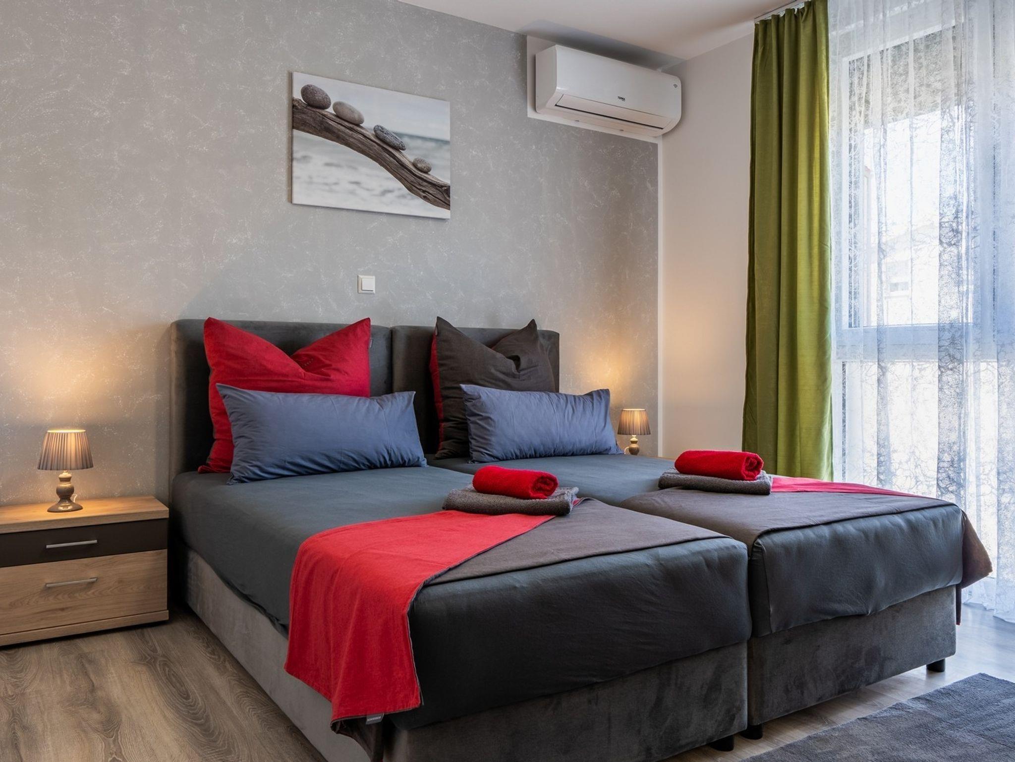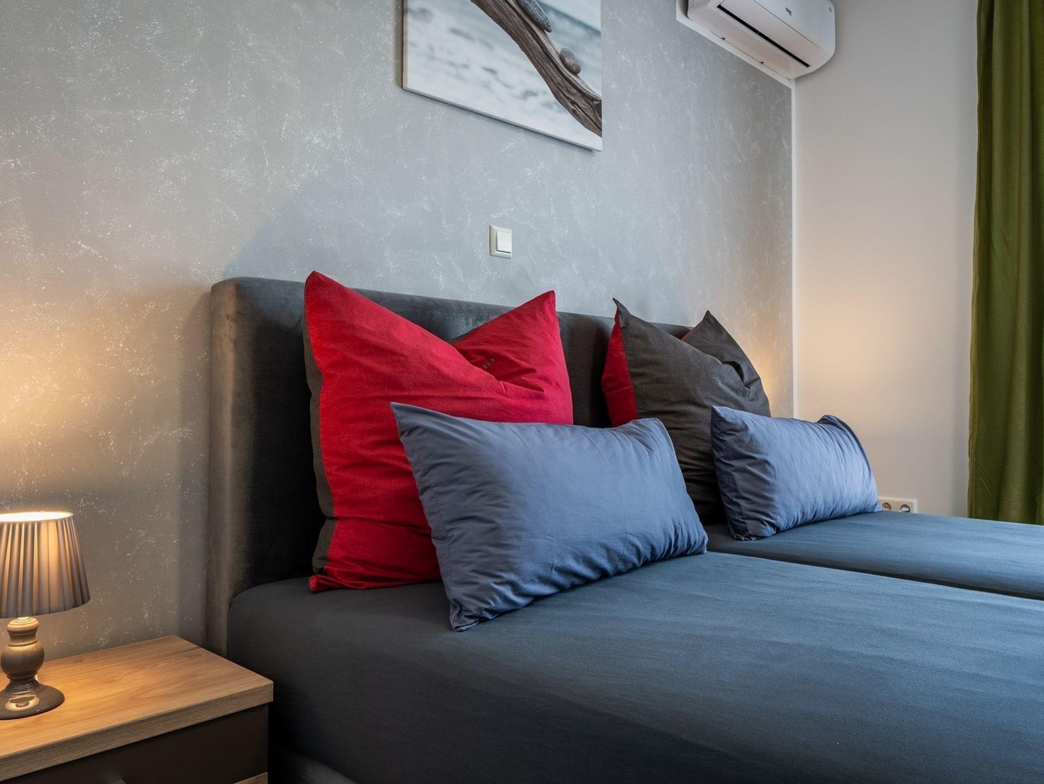 Ferienwohnung bietet Platz für 6 Gäste. Die Betten sind in Schlafzimmern, die es 3 gibt, innerhalb einer Gesamtfläche von 89m2, angeordnet. Die Gäste haben eine eigene Terrasse zur Verfügung, auf der sie in warmen Sommernächten genießen können. Es ist erlaubt, Speisen auf dem Gemeinschafts-Grill vorzubereiten. IM PREIS INBEGRIFFEN: Kurtaxe, Endreinigung, Klimatisierung, Parkplatz, Internet, Bügeleisen, Bügelbrett, Föhn. Die Verfügbarkeit zusätzlicher Dienstleistungen in Ihrem reservierten Termin und die Preise derselben (falls nicht aufgeführt) müssen im Voraus überprüft werden. Zusätzliche Dienstleistungen die in der Zahlungsaufforderung nicht aufgeführt sind werden direkt beim Vermieter bezahlt, angenommen der Gast nutzt auch diese.