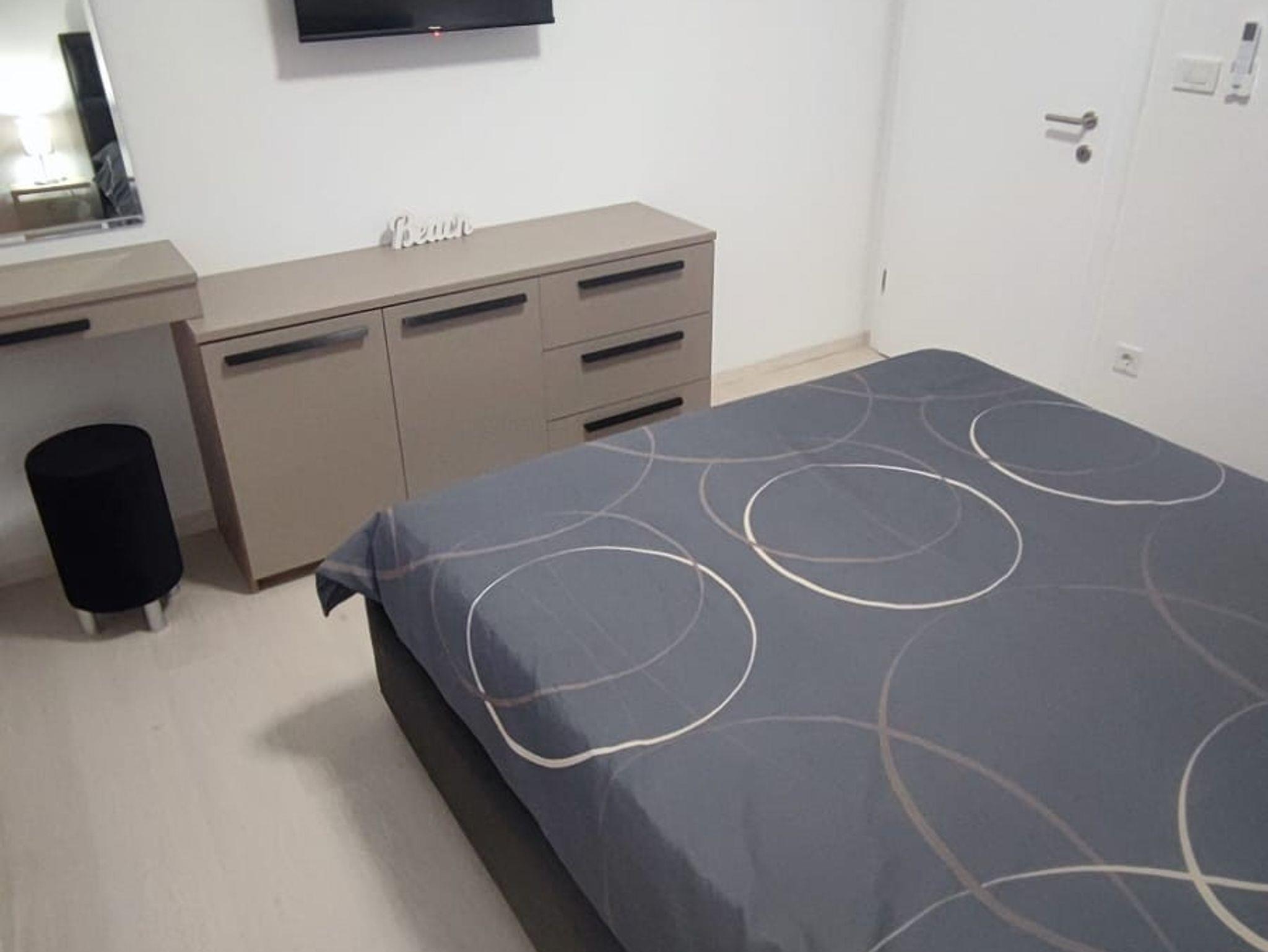 Haus bietet Platz für 8 Gäste. Die Betten sind in Schlafzimmern, die es 3 gibt, und in Wohnzimmer, innerhalb einer Gesamtfläche von 118m2, angeordnet. Die Gäste haben eine eigene Terrasse zur Verfügung, auf der sie in warmen Sommernächten genießen können. Für vollen Genuss und Entspannung gibt es einen privaten Grill für Gäste dieser Unterkunft. IM PREIS INBEGRIFFEN: Kurtaxe, Endreinigung, Klimatisierung, Parkplatz, Internet, Kinderbett, Bügeleisen, Bügelbrett, Föhn. VERBINDLICHE ZUSÄTZLICHE KOSTEN: Aufzahlung für Kurzaufenthalte (prozentualer Zuschlag pro Nächtigungsanzahl: 30% - 1, 20% - 2, 10% - 3). Die Verfügbarkeit zusätzlicher Dienstleistungen in Ihrem reservierten Termin und die Preise derselben (falls nicht aufgeführt) müssen im Voraus überprüft werden. Zusätzliche Dienstleistungen die in der Zahlungsaufforderung nicht aufgeführt sind werden direkt beim Vermieter bezahlt, angenommen der Gast nutzt auch diese.
