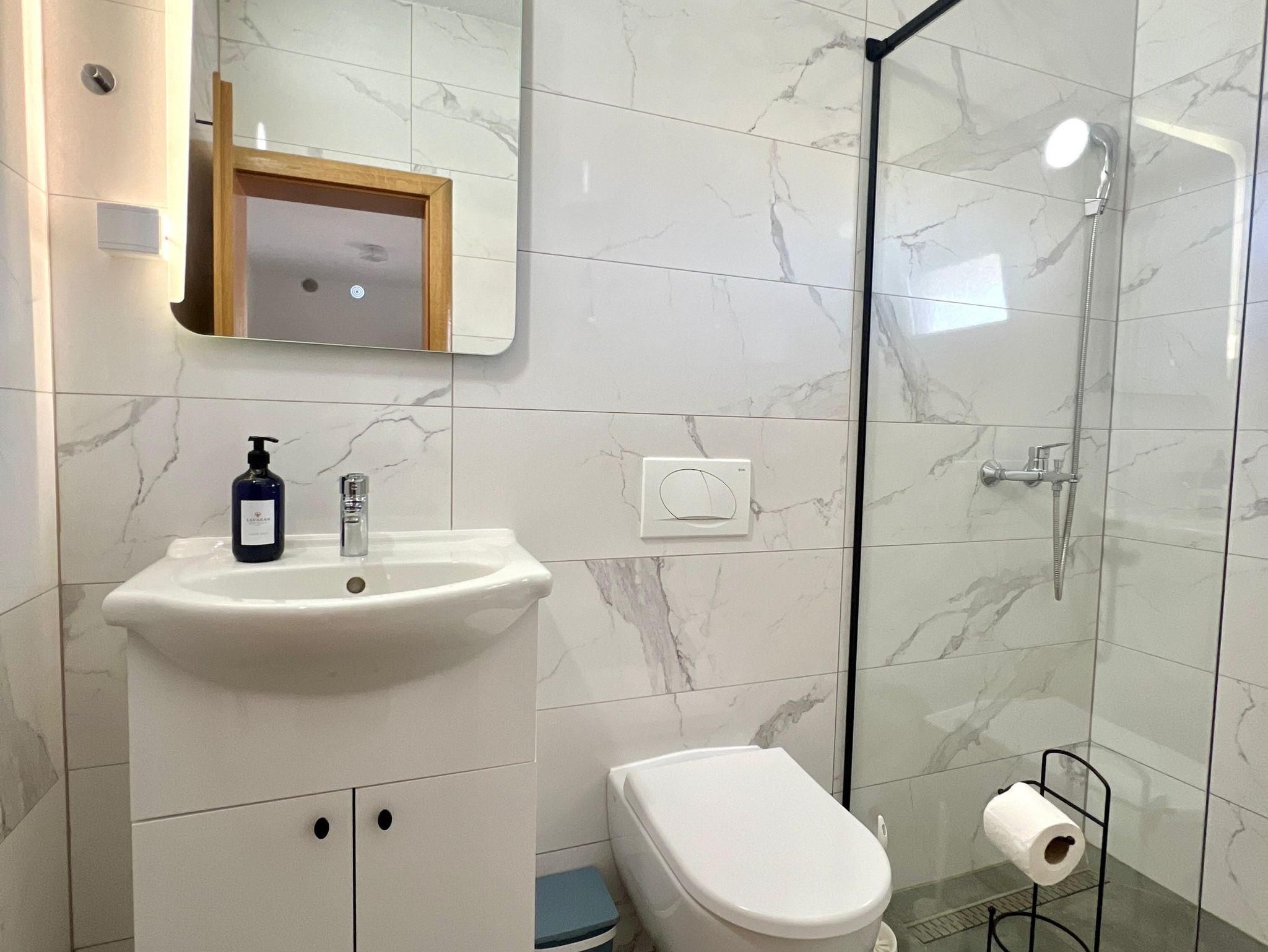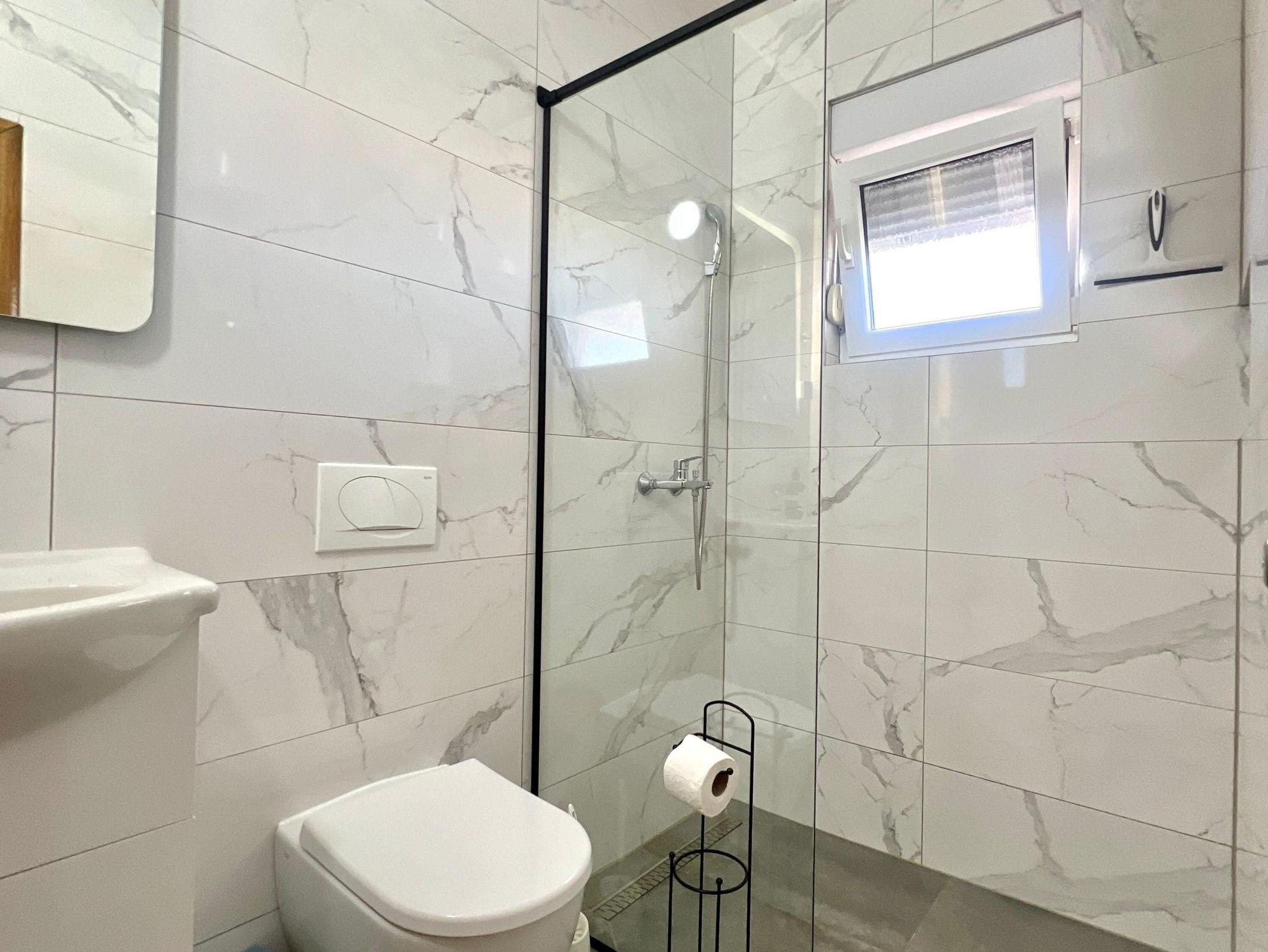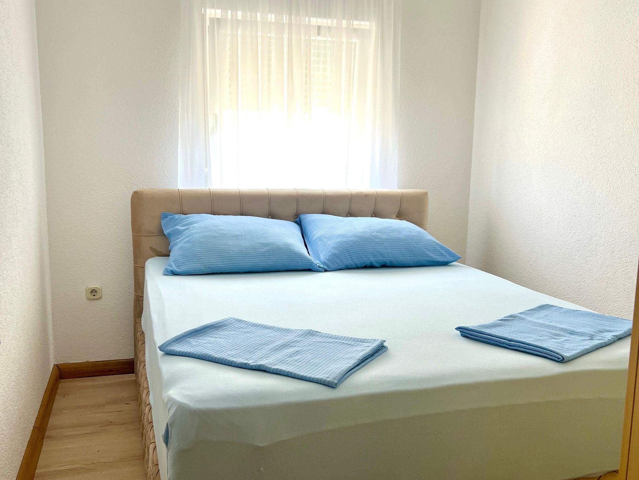Ferienwohnung bietet Platz für 4 Gäste. Die Betten sind in Schlafzimmern, die es 1 gibt, und in Wohnzimmer, innerhalb einer Gesamtfläche von 50m2, angeordnet. Die Gäste haben eine eigene Terrasse zur Verfügung, auf der sie in warmen Sommernächten genießen können. Das Apartment bietet Meerblick. Es ist erlaubt, Speisen auf dem Gemeinschafts-Grill vorzubereiten. IM PREIS INBEGRIFFEN: Kurtaxe, Endreinigung, Klimatisierung, Parkplatz, Internet, Wäschewaschen, Kinderbett, Föhn. VERBINDLICHE ZUSÄTZLICHE KOSTEN: Aufzahlung für Kurzaufenthalte (prozentualer Zuschlag pro Nächtigungsanzahl: 30% - 1, 20% - 2, 10% - 3). Die Verfügbarkeit zusätzlicher Dienstleistungen in Ihrem reservierten Termin und die Preise derselben (falls nicht aufgeführt) müssen im Voraus überprüft werden. Zusätzliche Dienstleistungen die in der Zahlungsaufforderung nicht aufgeführt sind werden direkt beim Vermieter bezahlt, angenommen der Gast nutzt auch diese.