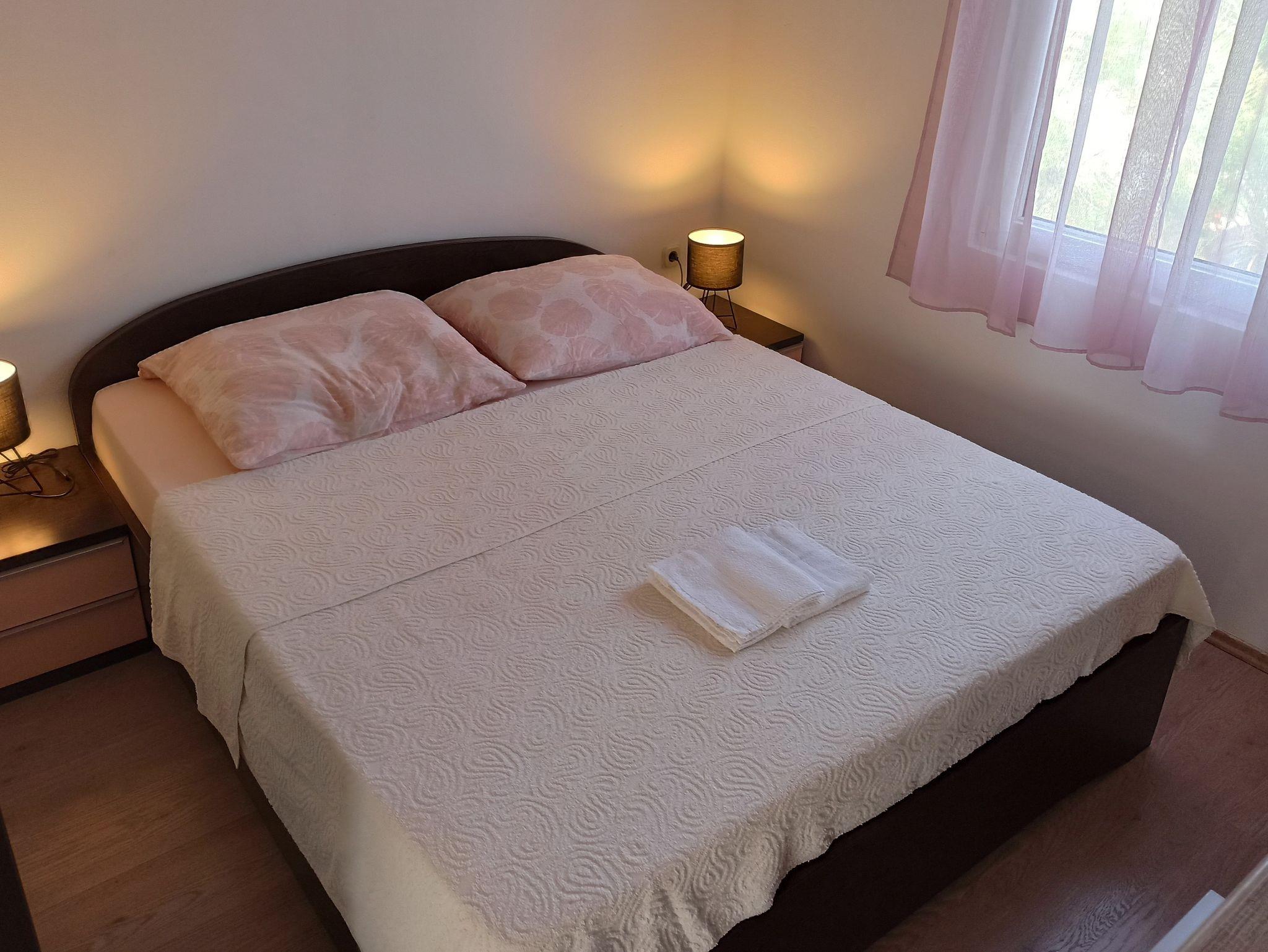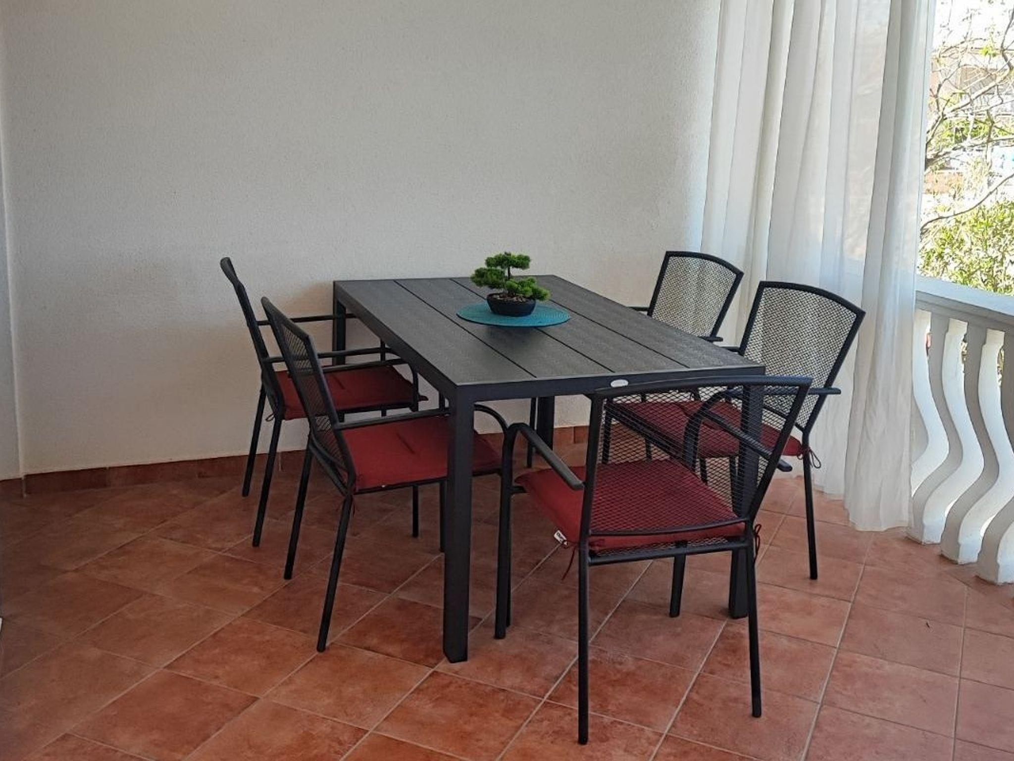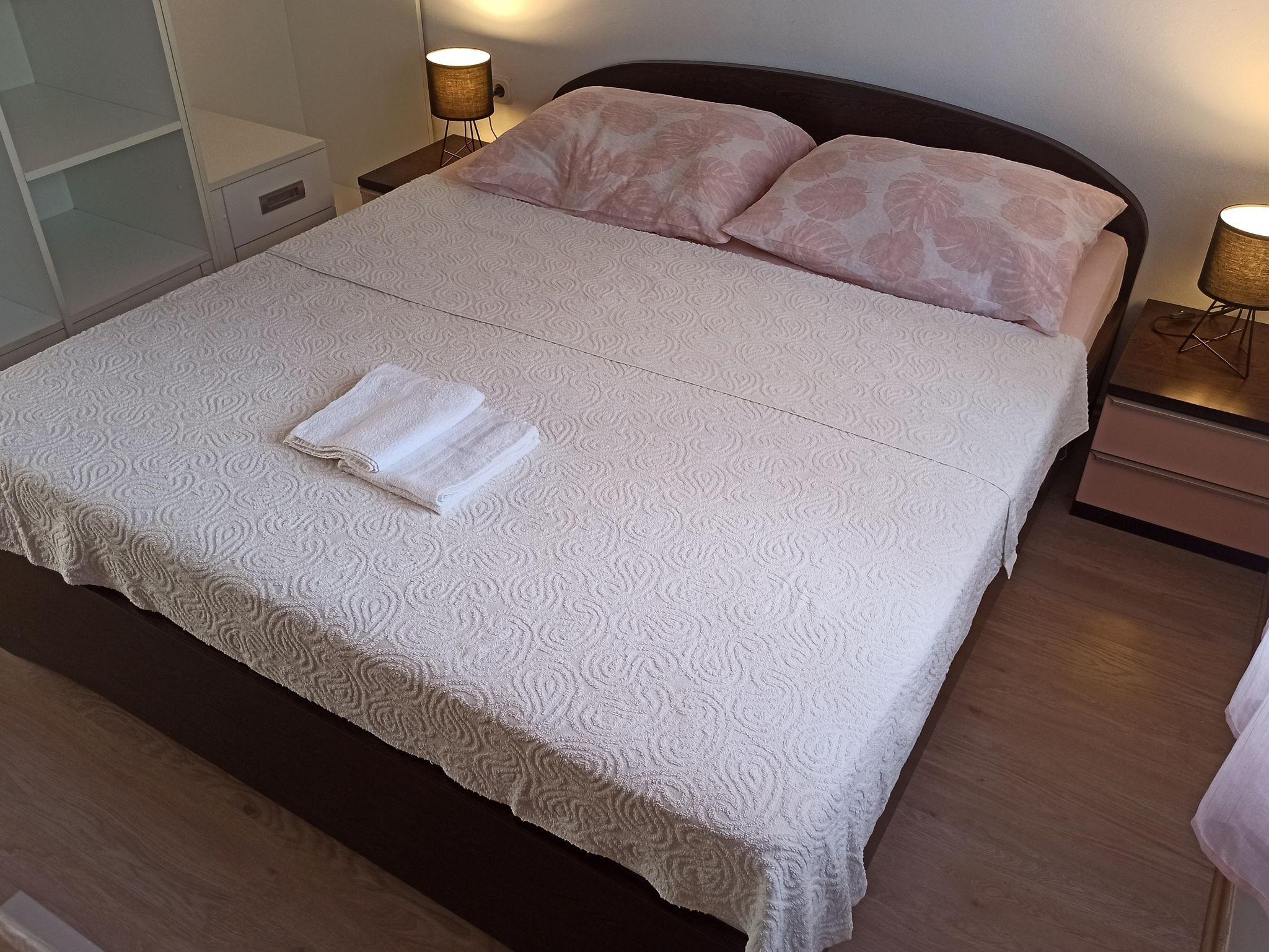 Ferienwohnung bietet Platz für 5 Gäste. Die Betten sind in Schlafzimmern, die es 2 gibt, und in Wohnzimmer, innerhalb einer Gesamtfläche von 51m2, angeordnet. Die Gäste haben eine eigene Terrasse zur Verfügung, auf der sie in warmen Sommernächten genießen können. Es ist erlaubt, Speisen auf dem Gemeinschafts-Grill vorzubereiten. IM PREIS INBEGRIFFEN: Kurtaxe, Endreinigung, Klimatisierung, Parkplatz, Internet, Föhn. Die Verfügbarkeit zusätzlicher Dienstleistungen in Ihrem reservierten Termin und die Preise derselben (falls nicht aufgeführt) müssen im Voraus überprüft werden. Zusätzliche Dienstleistungen die in der Zahlungsaufforderung nicht aufgeführt sind werden direkt beim Vermieter bezahlt, angenommen der Gast nutzt auch diese. Ermäßigung auf den Grundpreis: Gratistag 21=19 (bei einem Aufenthalt von 21 Tagen oder mehr erhalten Sie 2 Gratistage für den Aufenthalt bis 31.12.26).