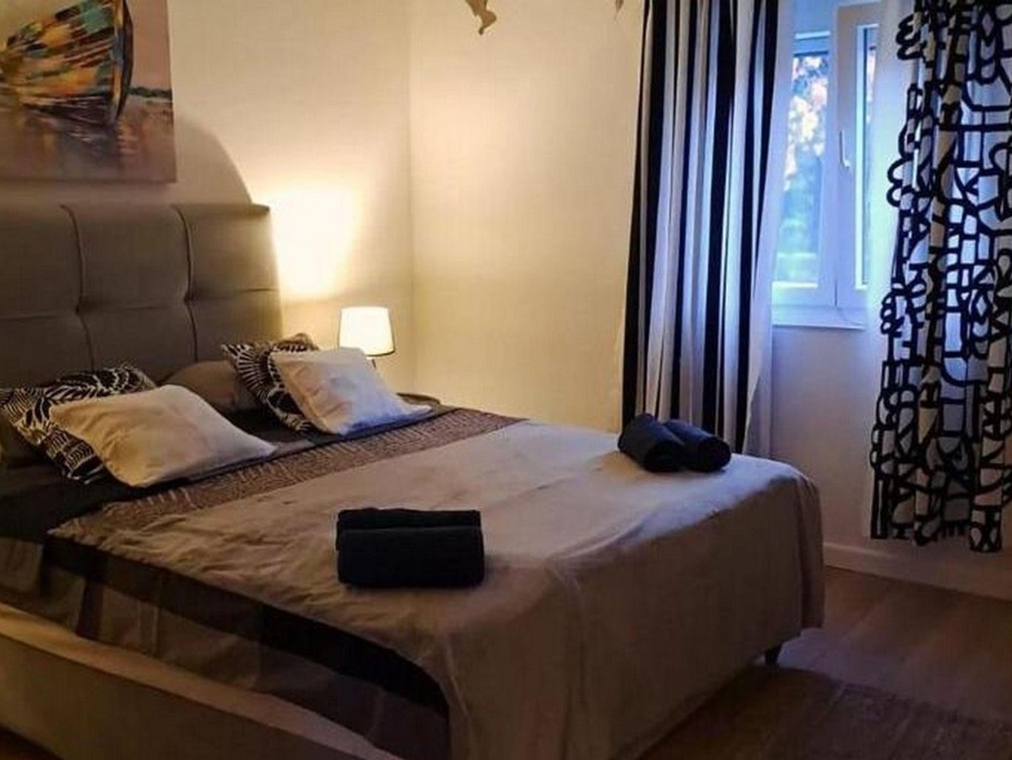Ferienwohnung bietet Platz für 5 Gäste. Die Betten sind in Schlafzimmern, die es 2 gibt, innerhalb einer Gesamtfläche von 80m2, angeordnet. Die Gäste haben eine eigene Terrasse zur Verfügung, auf der sie in warmen Sommernächten genießen können. Es ist erlaubt, Speisen auf dem Gemeinschafts-Grill vorzubereiten. IM PREIS INBEGRIFFEN: Kurtaxe, Endreinigung, Klimatisierung, Parkplatz, Internet, Kinderbett, Bügeleisen, Bügelbrett, Föhn. Die Verfügbarkeit zusätzlicher Dienstleistungen in Ihrem reservierten Termin und die Preise derselben (falls nicht aufgeführt) müssen im Voraus überprüft werden. Zusätzliche Dienstleistungen die in der Zahlungsaufforderung nicht aufgeführt sind werden direkt beim Vermieter bezahlt, angenommen der Gast nutzt auch diese.