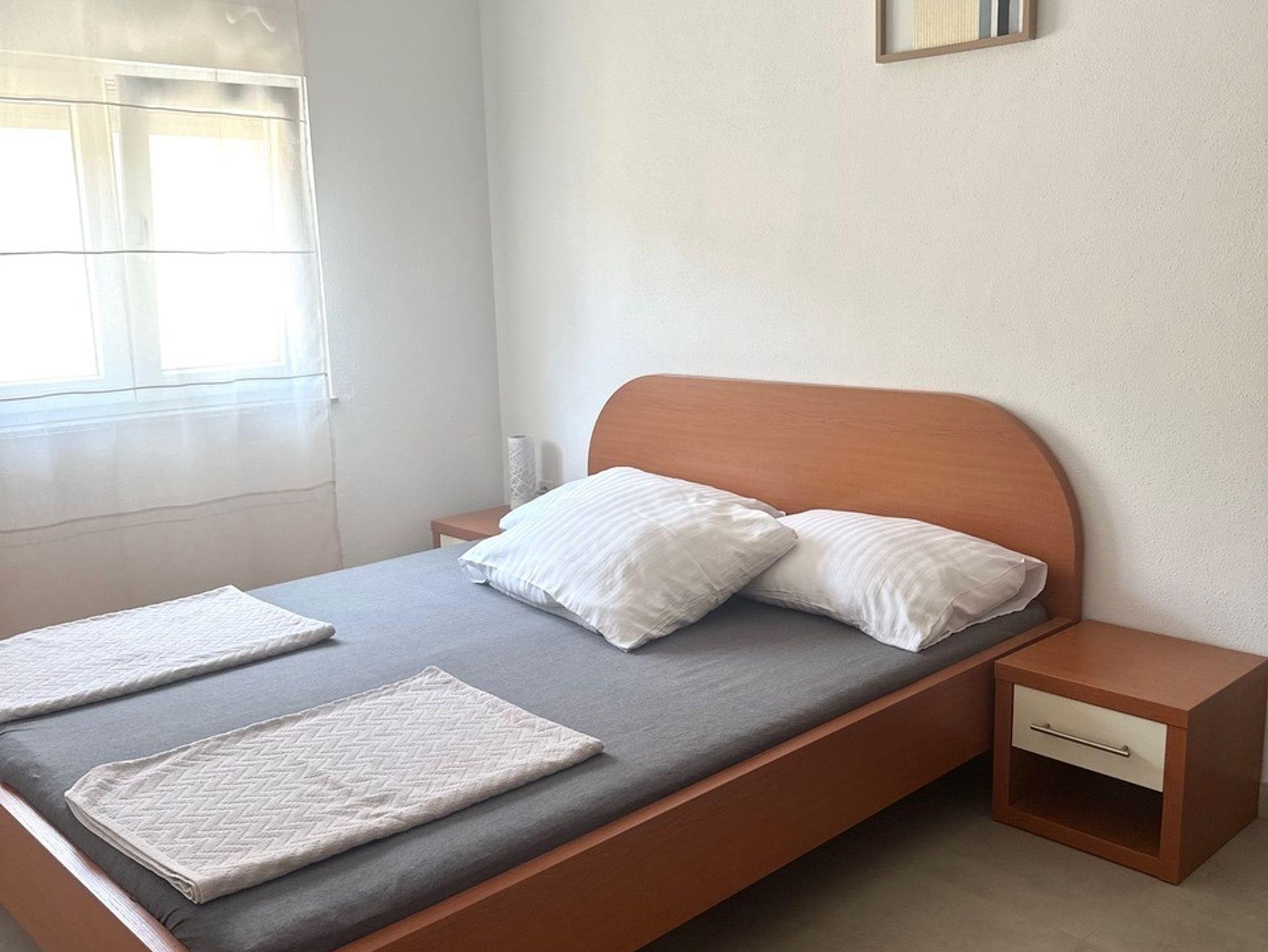 Ferienwohnung bietet Platz für 4 Gäste. Die Betten sind in Schlafzimmern, die es 1 gibt, und in Wohnzimmer, innerhalb einer Gesamtfläche von 33m2, angeordnet. Die Gäste haben eine eigene Terrasse zur Verfügung, auf der sie in warmen Sommernächten genießen können. IM PREIS INBEGRIFFEN: Kurtaxe, Endreinigung, Klimatisierung, Parkplatz, Internet, Kinderbett, Föhn. VERBINDLICHE ZUSÄTZLICHE KOSTEN: Aufzahlung für Kurzaufenthalte (prozentualer Zuschlag pro Nächtigungsanzahl: 30% - 1, 20% - 2, 10% - 3). Die Verfügbarkeit zusätzlicher Dienstleistungen in Ihrem reservierten Termin und die Preise derselben (falls nicht aufgeführt) müssen im Voraus überprüft werden. Zusätzliche Dienstleistungen die in der Zahlungsaufforderung nicht aufgeführt sind werden direkt beim Vermieter bezahlt, angenommen der Gast nutzt auch diese. Ermäßigung auf den Grundpreis: Gratistag 14=13 (bei einem Aufenthalt von 14 Tagen oder mehr erhalten Sie einen Gratistag für den Aufenthalt bis 31.12.26).