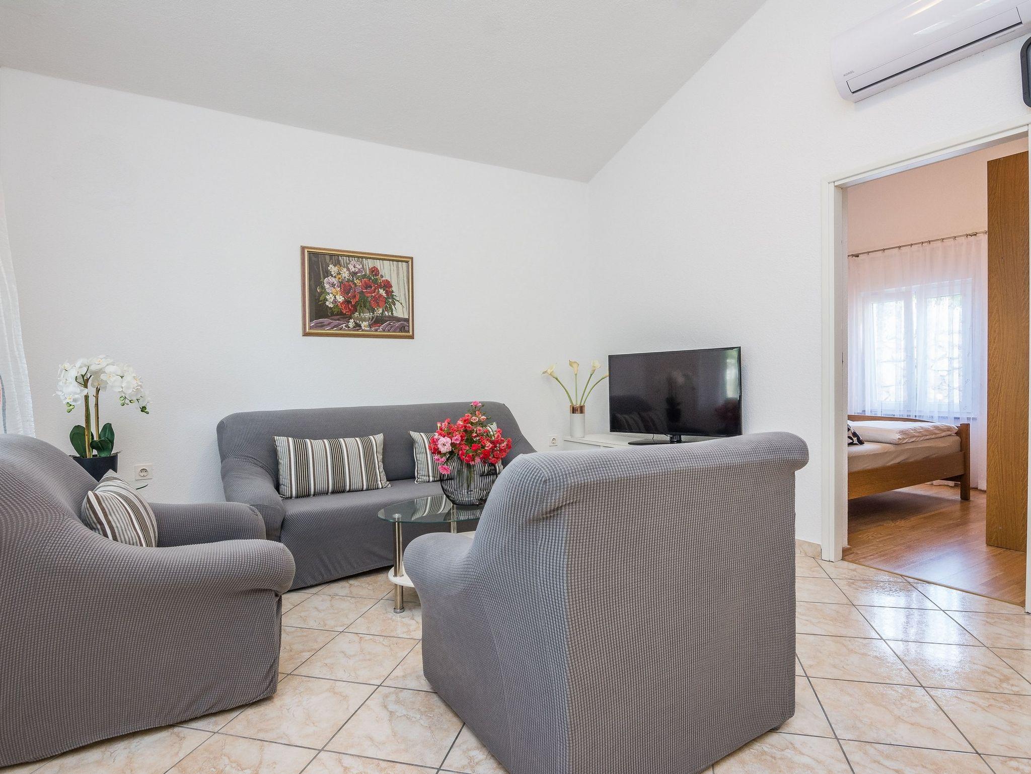 Ferienwohnung bietet Platz für 4 Gäste. Die Betten sind in Schlafzimmern, die es 2 gibt, innerhalb einer Gesamtfläche von 49m2, angeordnet. Die Gäste haben eine eigene Terrasse zur Verfügung, auf der sie in warmen Sommernächten genießen können. Das Apartment bietet Meerblick. Es ist erlaubt, Speisen auf dem Gemeinschafts-Grill vorzubereiten. IM PREIS INBEGRIFFEN: Kurtaxe, Endreinigung, Klimatisierung, Parkplatz, Internet, Wäschewaschen, Kinderbett, Föhn. VERBINDLICHE ZUSÄTZLICHE KOSTEN: Aufzahlung für Kurzaufenthalte (prozentualer Zuschlag pro Nächtigungsanzahl: 30% - 1, 20% - 2, 10% - 3). Die Verfügbarkeit zusätzlicher Dienstleistungen in Ihrem reservierten Termin und die Preise derselben (falls nicht aufgeführt) müssen im Voraus überprüft werden. Zusätzliche Dienstleistungen die in der Zahlungsaufforderung nicht aufgeführt sind werden direkt beim Vermieter bezahlt, angenommen der Gast nutzt auch diese.