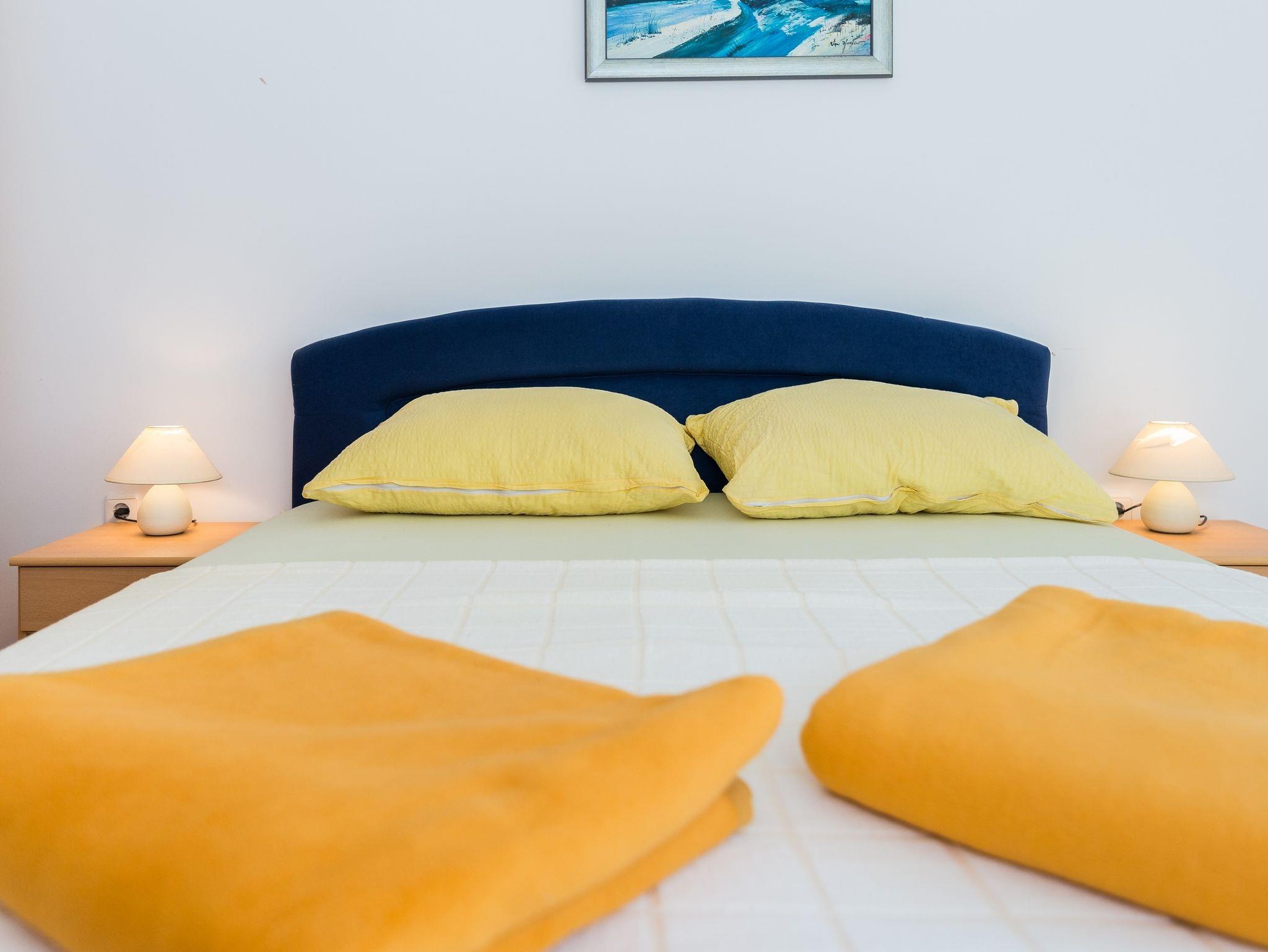 Ferienwohnung bietet Platz für 5 Gäste. Die Betten sind in Schlafzimmern, die es 2 gibt, und in Wohnzimmer, innerhalb einer Gesamtfläche von 55m2, angeordnet. Die Gäste haben eine eigene Terrasse zur Verfügung, auf der sie in warmen Sommernächten genießen können. Es ist erlaubt, Speisen auf dem Gemeinschafts-Grill vorzubereiten. In der Unterkunftseinheit besteht die Möglichkeit des Mitbringens von Haustieren gegen Aufpreis. IM PREIS INBEGRIFFEN: Kurtaxe, Endreinigung, Klimatisierung, Parkplatz, Internet, Kinderbett, Föhn. VERBINDLICHE ZUSÄTZLICHE KOSTEN: Aufzahlung für Kurzaufenthalte (prozentualer Zuschlag pro Nächtigungsanzahl: 30% - 1, 20% - 2, 10% - 3). UNVERBINDLICHE ZUSÄTZLICHE KOSTEN: Haustiere (15,00 € pro Nacht). Die Verfügbarkeit zusätzlicher Dienstleistungen in Ihrem reservierten Termin und die Preise derselben (falls nicht aufgeführt) müssen im Voraus überprüft werden. Zusätzliche Dienstleistungen die in der Zahlungsaufforderung nicht aufgeführt sind werden direkt beim Vermieter bezahlt, angenommen der Gast nutzt auch diese.