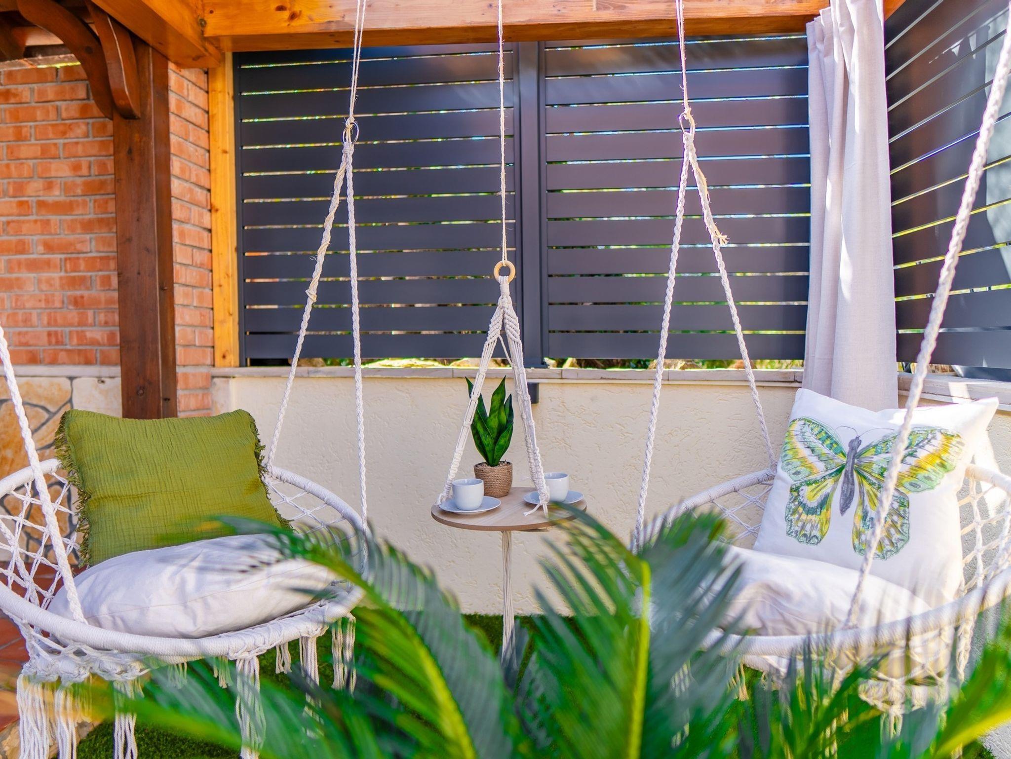 Umgebung des Objekts (Eingerichtet), Hof (400m2, Sitzbereich), Parkplatz (Anzahl der Parkplätze: 3, Entfernung vom Objekt: im Hof), Grill: gemeinsam, WiFi Internet, Föhn, Kinderbett