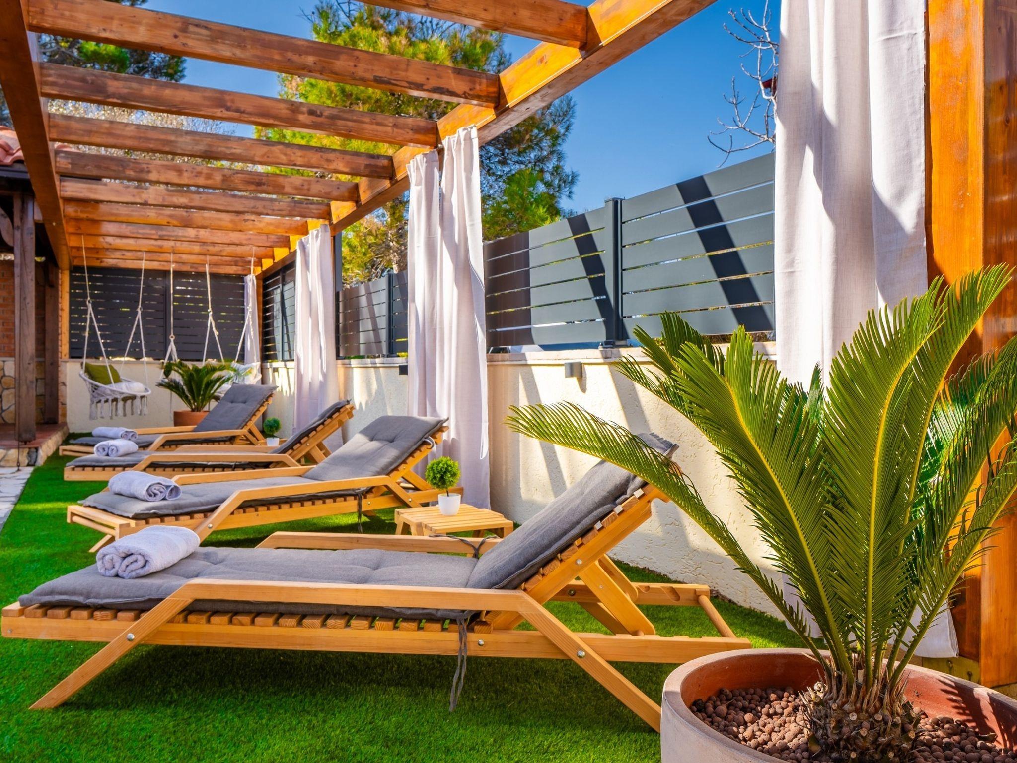 Ferienwohnung bietet Platz für 5 Gäste. Die Betten sind in Schlafzimmern, die es 2 gibt, und in Wohnzimmer, innerhalb einer Gesamtfläche von 55m2, angeordnet. Die Gäste haben eine eigene Terrasse zur Verfügung, auf der sie in warmen Sommernächten genießen können. Es ist erlaubt, Speisen auf dem Gemeinschafts-Grill vorzubereiten. IM PREIS INBEGRIFFEN: Kurtaxe, Endreinigung, Klimatisierung, Parkplatz, Internet, Kinderbett, Föhn. Die Verfügbarkeit zusätzlicher Dienstleistungen in Ihrem reservierten Termin und die Preise derselben (falls nicht aufgeführt) müssen im Voraus überprüft werden. Zusätzliche Dienstleistungen die in der Zahlungsaufforderung nicht aufgeführt sind werden direkt beim Vermieter bezahlt, angenommen der Gast nutzt auch diese.