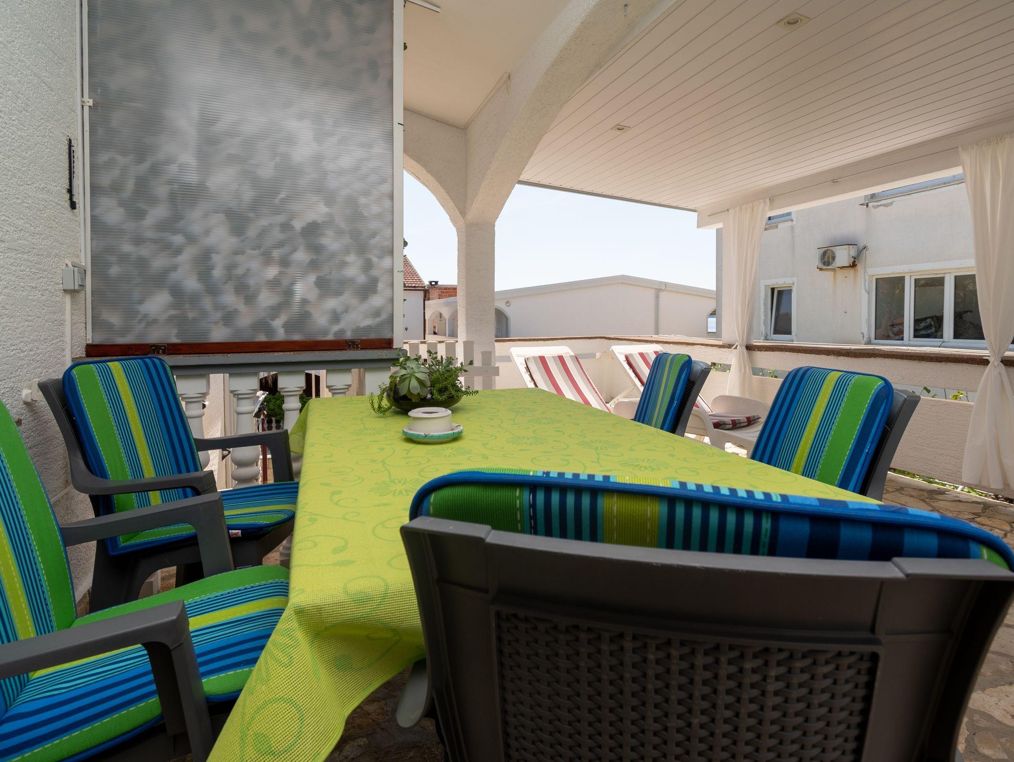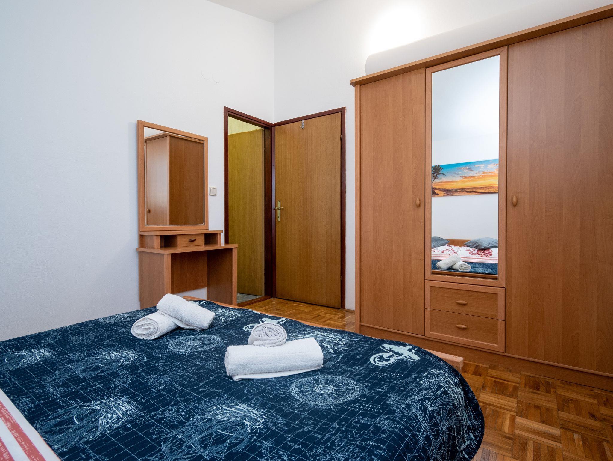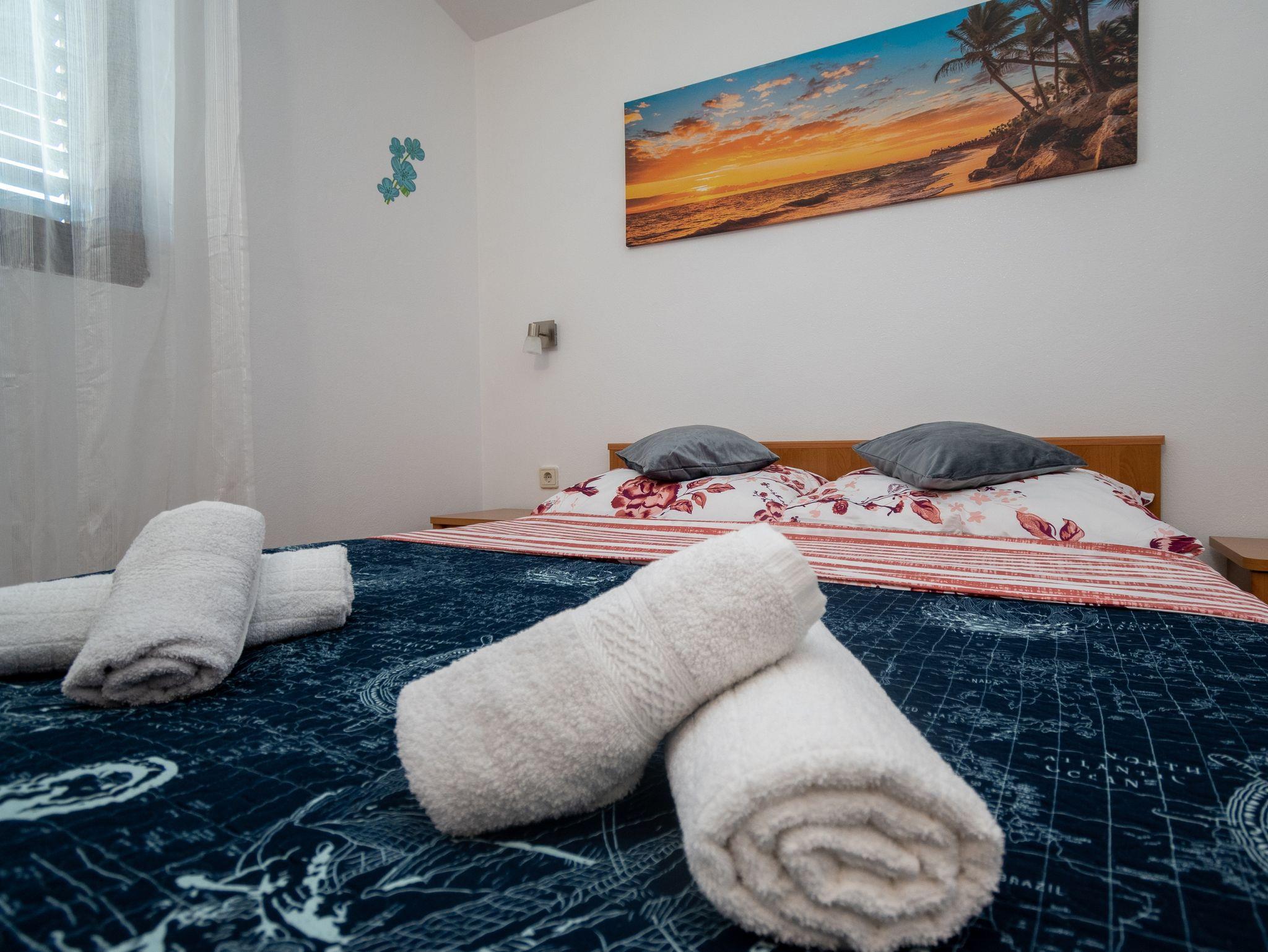 Ferienwohnung bietet Platz für 4 Gäste. Die Betten sind in Schlafzimmern, die es 1 gibt, und in Wohnzimmer, innerhalb einer Gesamtfläche von 28m2, angeordnet. Die Gäste haben eine eigene Terrasse zur Verfügung, auf der sie in warmen Sommernächten genießen können. Das Apartment bietet Meerblick. Es ist erlaubt, Speisen auf dem Gemeinschafts-Grill vorzubereiten. In der Unterkunftseinheit besteht die Möglichkeit des Mitbringens von Haustieren gegen Aufpreis. IM PREIS INBEGRIFFEN: Kurtaxe, Endreinigung, Klimatisierung, Parkplatz, Internet, Bootsanlegeplatz, Bügeleisen, Bügelbrett, Föhn. VERBINDLICHE ZUSÄTZLICHE KOSTEN: Aufzahlung für Kurzaufenthalte (prozentualer Zuschlag pro Nächtigungsanzahl: 30% - 1, 20% - 2, 10% - 3). UNVERBINDLICHE ZUSÄTZLICHE KOSTEN: Wäschewaschen (5,00 € Waschen), Haustiere (5,00 € pro Nacht). Die Verfügbarkeit zusätzlicher Dienstleistungen in Ihrem reservierten Termin und die Preise derselben (falls nicht aufgeführt) müssen im Voraus überprüft werden. Zusätzliche Dienstleistungen die in der Zahlungsaufforderung nicht aufgeführt sind werden direkt beim Vermieter bezahlt, angenommen der Gast nutzt auch diese.