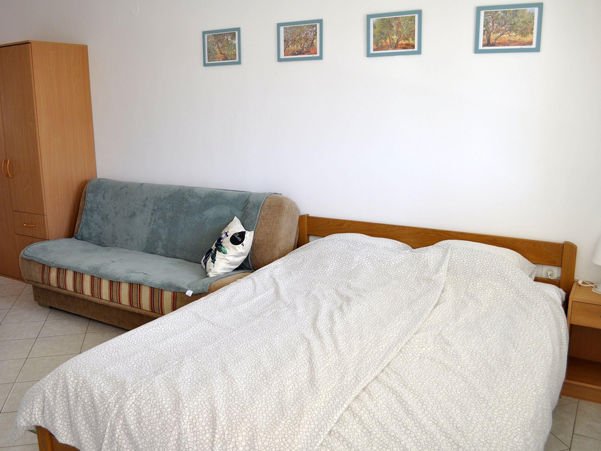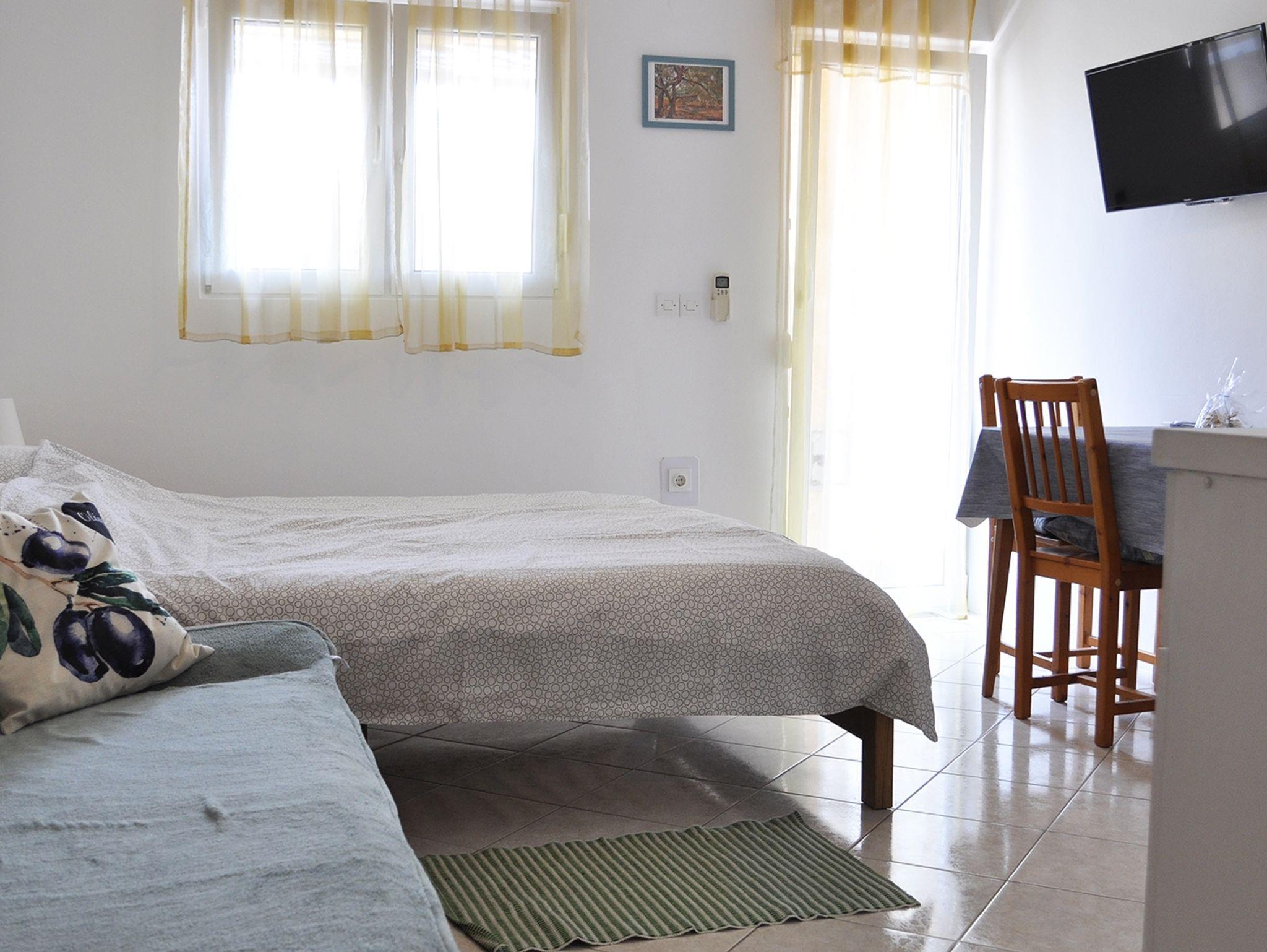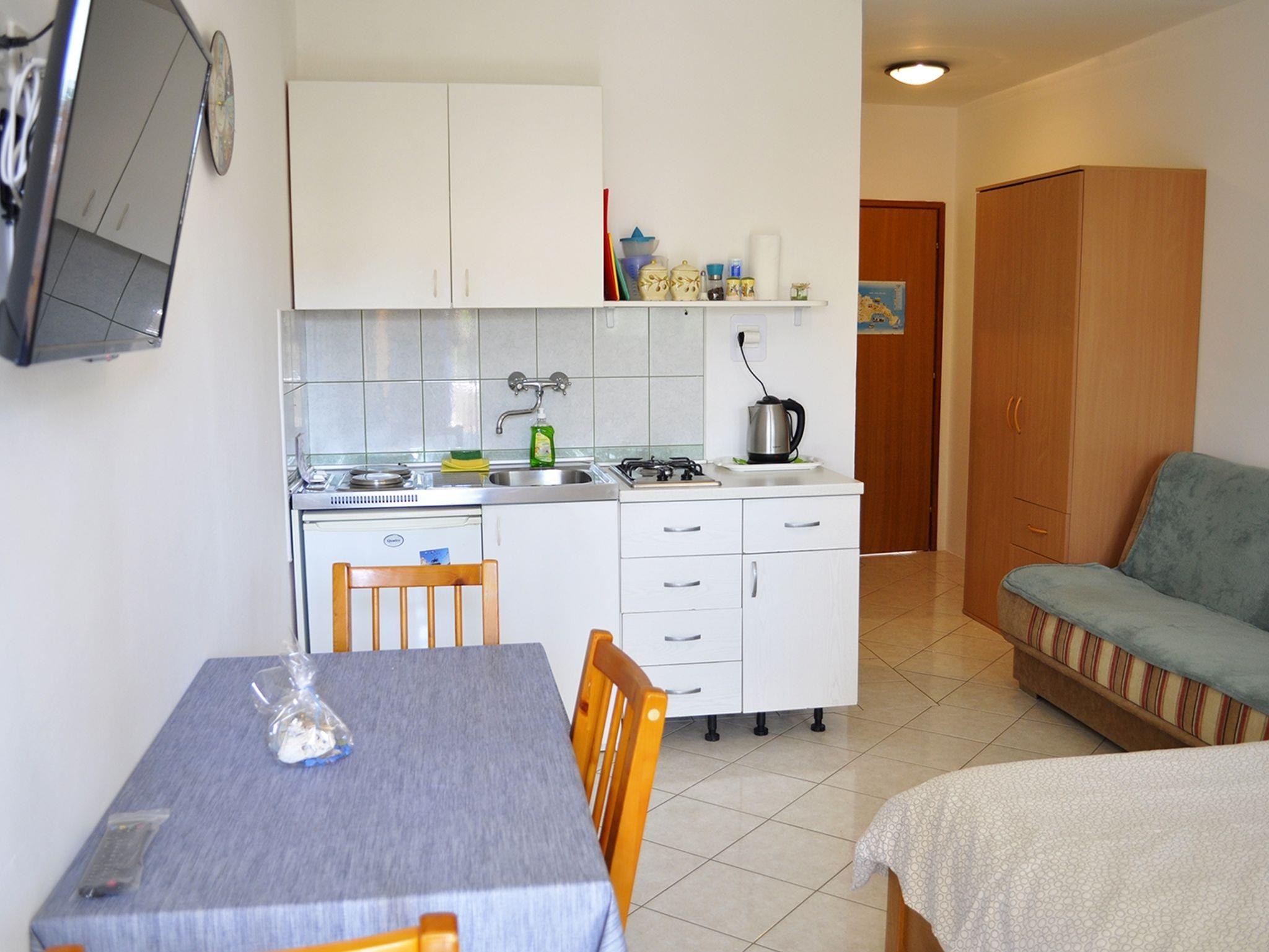 Studio bietet Platz für 3 Gäste. Die Betten sind in Wohnzimmer, innerhalb einer Gesamtfläche von 23m2, angeordnet. Die Gäste haben einen eigenen Balkon zur Verfügung, auf der sie in warmen Sommernächten genießen können. Es ist erlaubt, Speisen auf dem Gemeinschafts-Grill vorzubereiten. In der Unterkunftseinheit besteht die Möglichkeit des Mitbringens von Haustieren, und die Dienstleistung ist im Preis der Unterkunft enthalten. IM PREIS INBEGRIFFEN: Kurtaxe, Endreinigung, Klimatisierung, Parkplatz, Internet, Haustiere. VERBINDLICHE ZUSÄTZLICHE KOSTEN: Aufzahlung für Kurzaufenthalte (prozentualer Zuschlag pro Nächtigungsanzahl: 30% - 1, 20% - 2, 10% - 3). Die Verfügbarkeit zusätzlicher Dienstleistungen in Ihrem reservierten Termin und die Preise derselben (falls nicht aufgeführt) müssen im Voraus überprüft werden. Zusätzliche Dienstleistungen die in der Zahlungsaufforderung nicht aufgeführt sind werden direkt beim Vermieter bezahlt, angenommen der Gast nutzt auch diese.