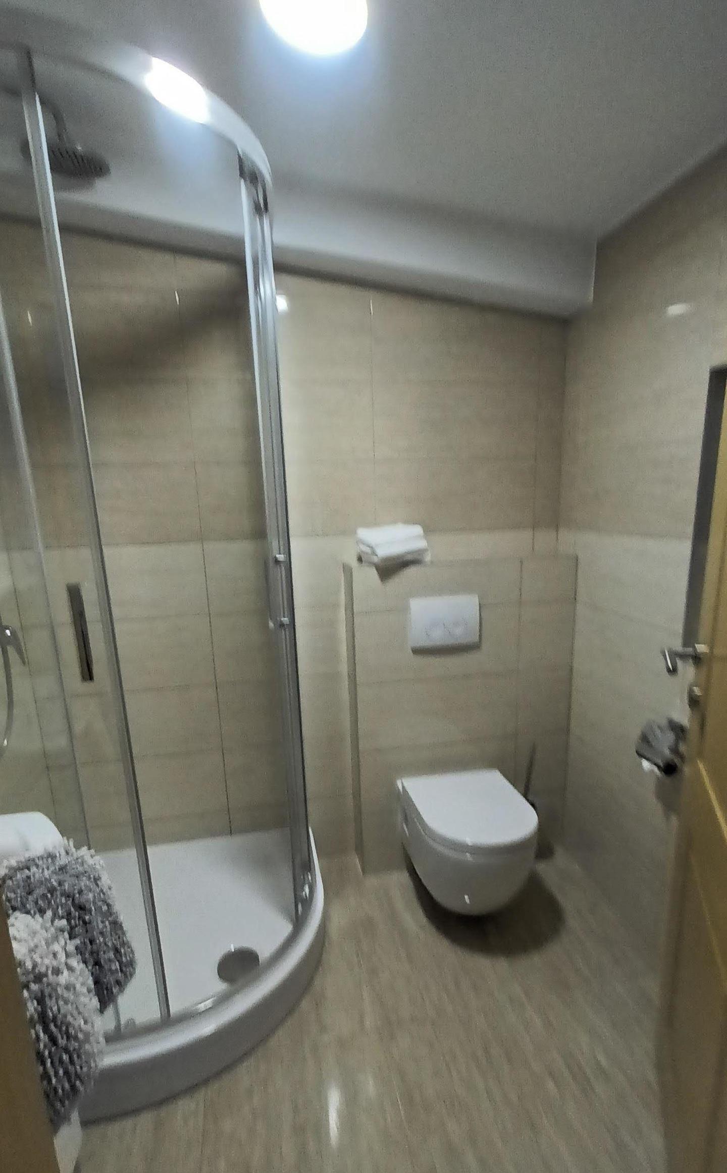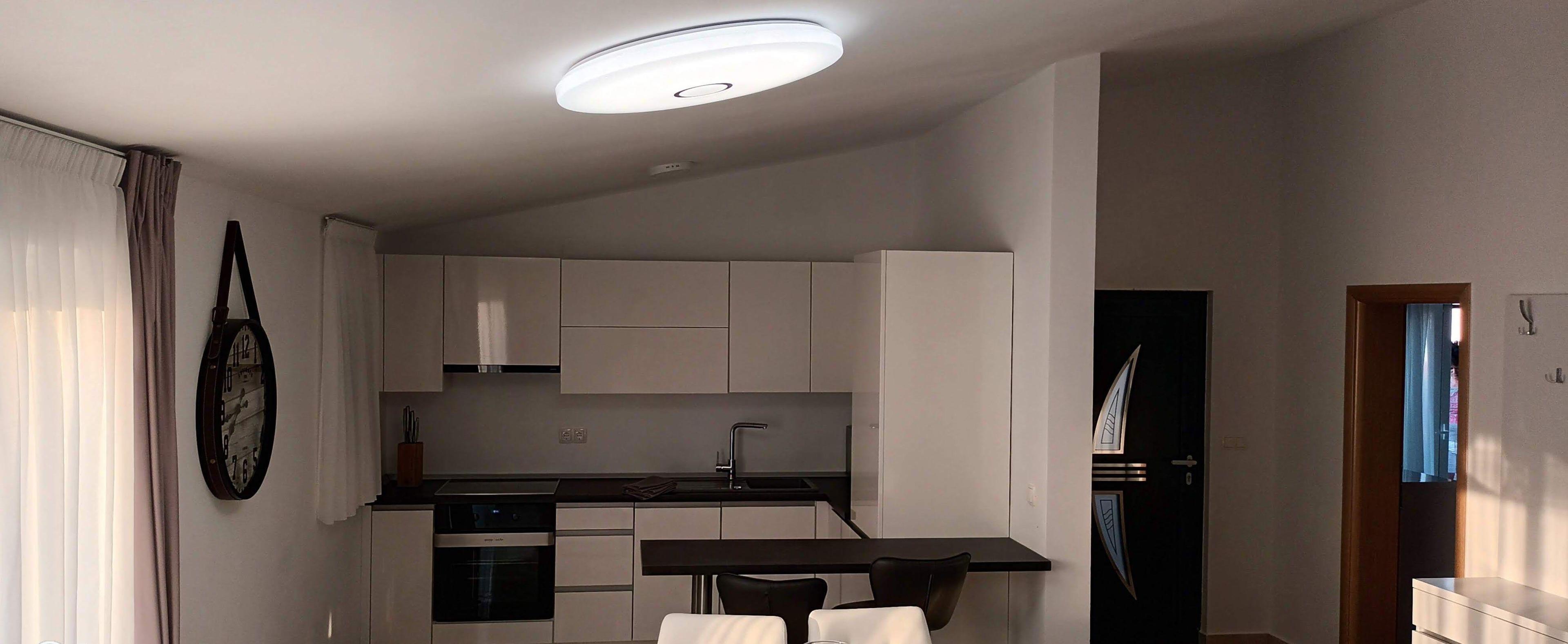 Das Apartment mit 130 qm Wohnfläche, verfügt über zwei Schlafzimmer mit zwei Bädern mit Dusche. Es gibt einen Wohn- und Essbereich, sowie eine offene Küche, die mit Backofen, 4-Platten-Cerankochfeld-Herd, Mikrowelle, Wasserkocher, Toaster, Kühlschrank mit Gefrierschrank, Kaffeemaschine, Spülmaschine, sowie ausreichend Geschirr ausgestattet ist.