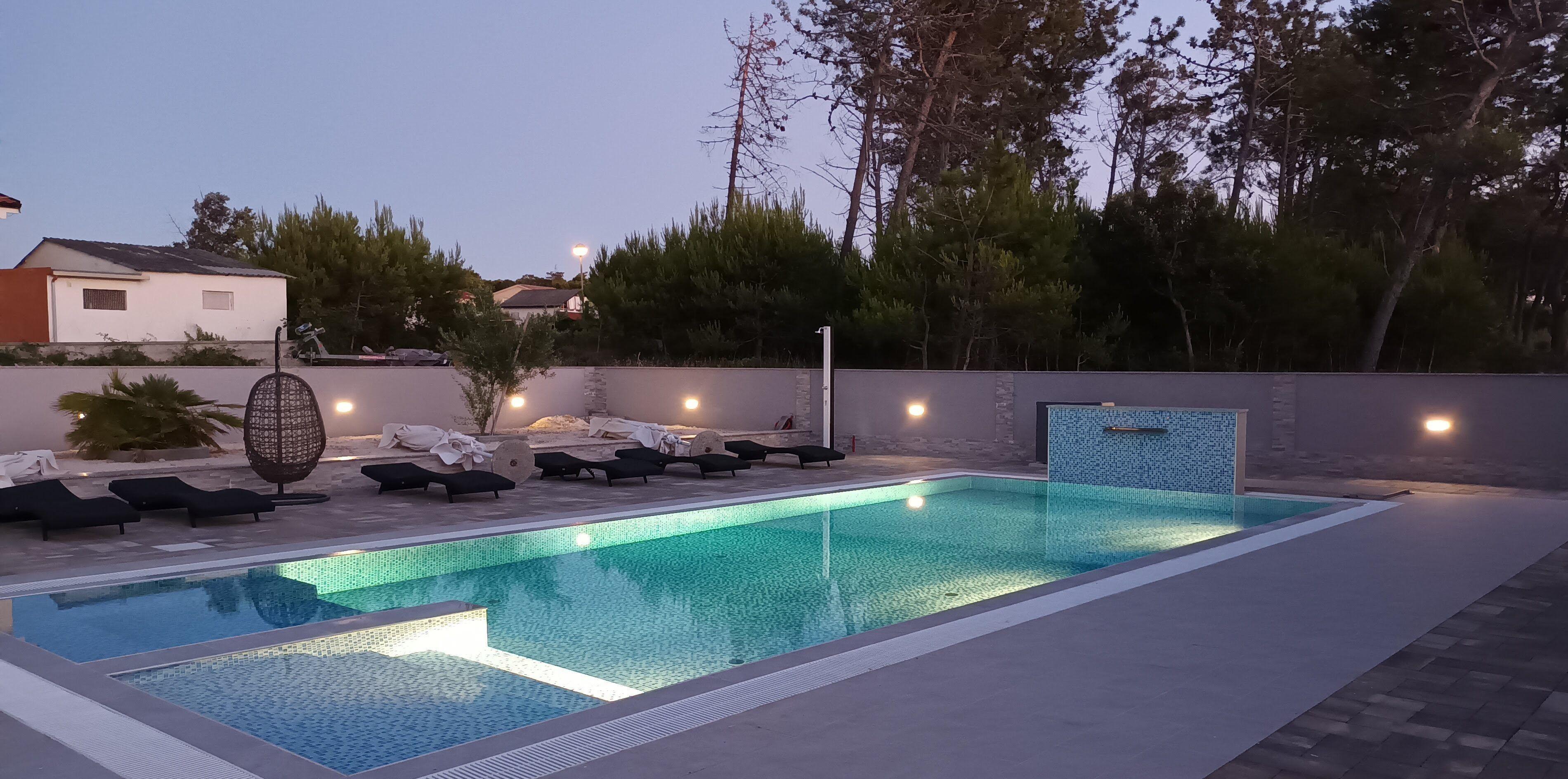 auf dem ummauerten, abgeschlossenen Grundstück in einer Größe von 700 qm befindet sich der 65 qm grosse, 1,5 m tiefe, beheizbare Swimmingpool, sowie Aussendusche, Sitz- und Liegegelegenheiten.