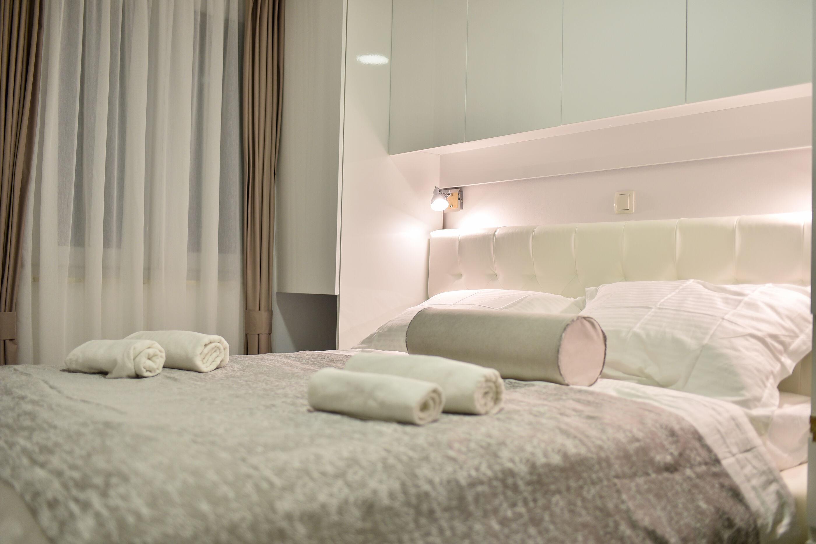 Das Apartment mit 130 qm Wohnfläche, verfügt über zwei Schlafzimmer und es gibt zwei Bäder mit Dusche. Ein Haarfön sowie kosmetische Artikel stehen in jedem Badezimmer zur Verfügung. Alle Schlafzimmer sind mit einem Android-Flachbildschirm-Fernsehgerät ausgestattet. Bettwäsche, Handtücher, Strandtücher sowie Bademäntel sind ebenfalls vorhanden. Darüber hinaus verfügt die Villa über eine voll ausgestattate Küche, ein Esszimmer und ein Wohnzimmer.