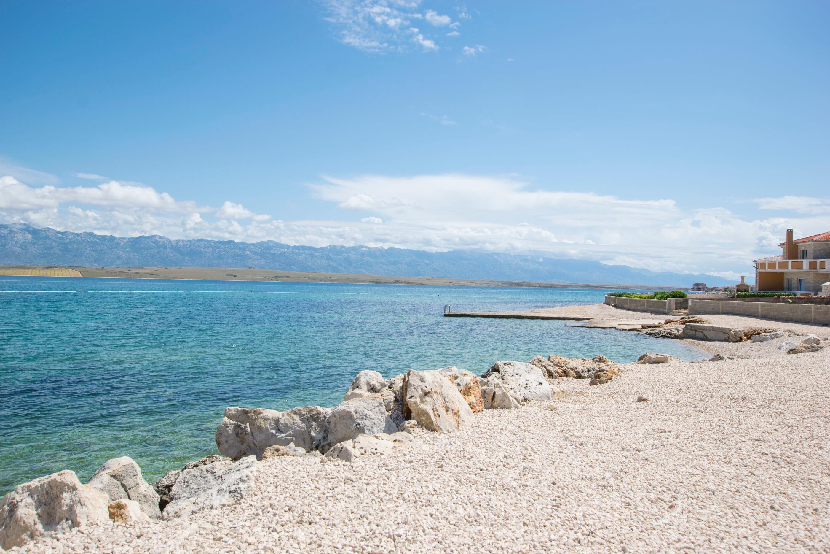 Das steienerne Haus wurde in einem modernen Baustil direkt am Meer erbaut und bietet Platz für maximal 12 Personen. Es besitzt drei Balkone mit Blick auf das Meer und das Velebit Gebirge.