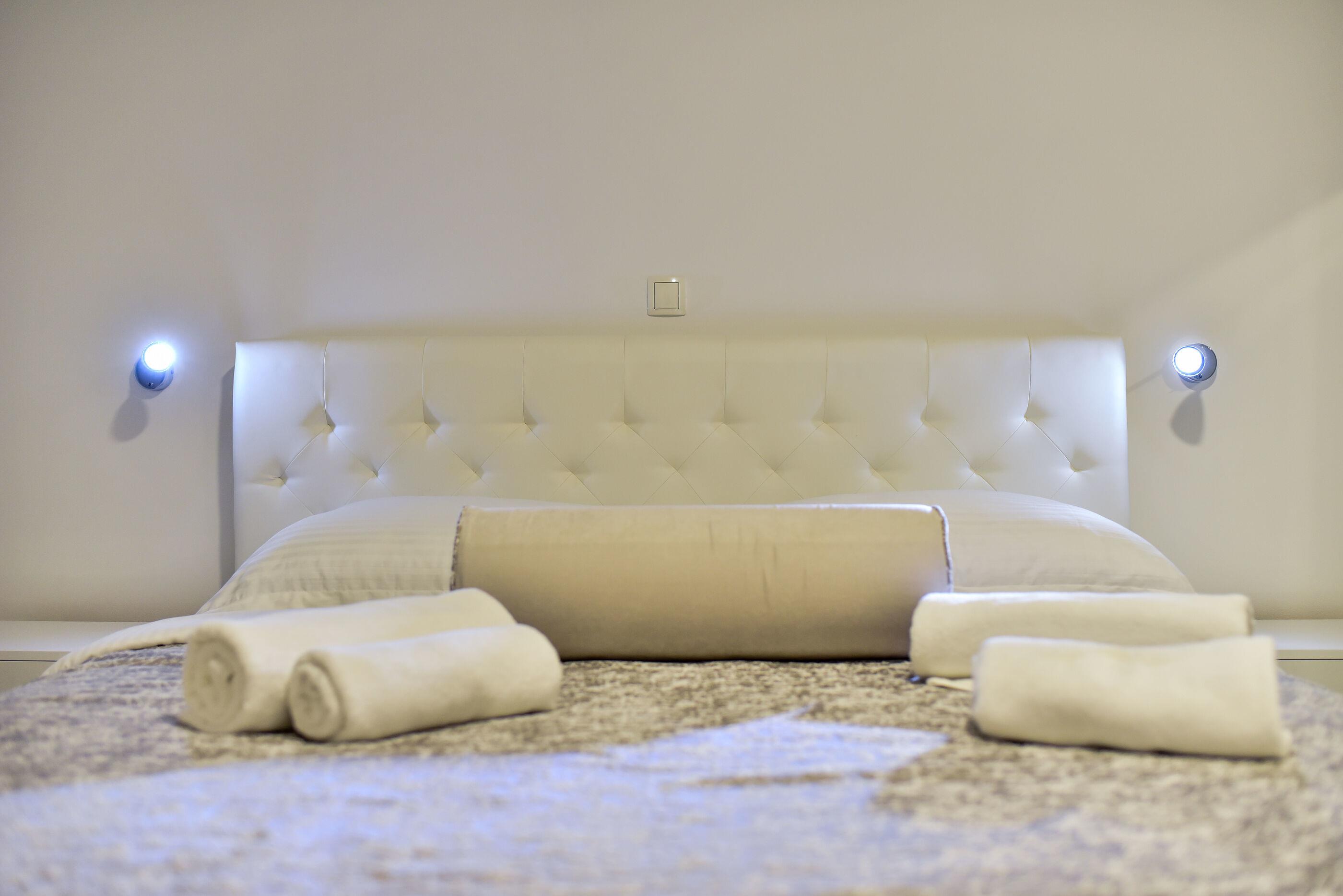 Ein kleinerer Teil der Villa ist als Studio mit einem Schlafzimmer mit Doppelbett, einem Schlafsofa, sowie Küchenzeile mit Kühlschrank, Cerankochfeld und einem Badezimmer ausgestattet.