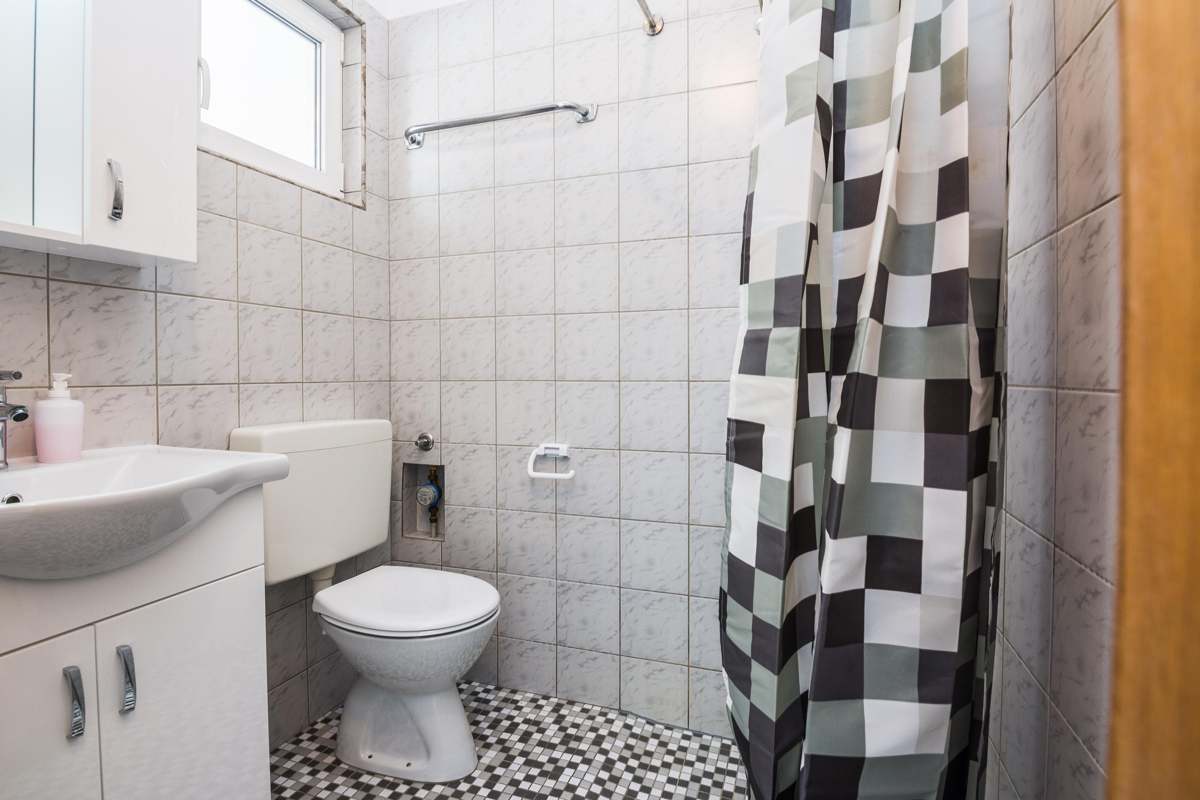 Die 30 m2 FeWo befindet sich im ersten Stock des Hauses und ist auf ein Wohnzimmer mit Essbereich und Küche, ein Schlafzimmer mit einem Doppelbett und ein Badezimmer mit Dusche unterteilt. Im Wohnzimmer gibt es ein Schlafsofa für zwei Personen. Vom Wohnzimmer aus gelangen Sie auf einen 10 m2 überdachten Balkon mit Tisch und Stühlen. Klimaanlage, WLAN, Sat-TV, Safe, Parkplatz auf dem Grundstück und ein zusätzlicher und gemeinsamer Balkon im ersten Stock mit Grill, Tisch und Stühlen sind nur einige der Merkmale dieses Apartments, die den Gästen zur Verfügung stehen. Restaurants, Einkaufladen und das Zentrum der Insel Vir sind nur wenige Gehminuten entfernt.