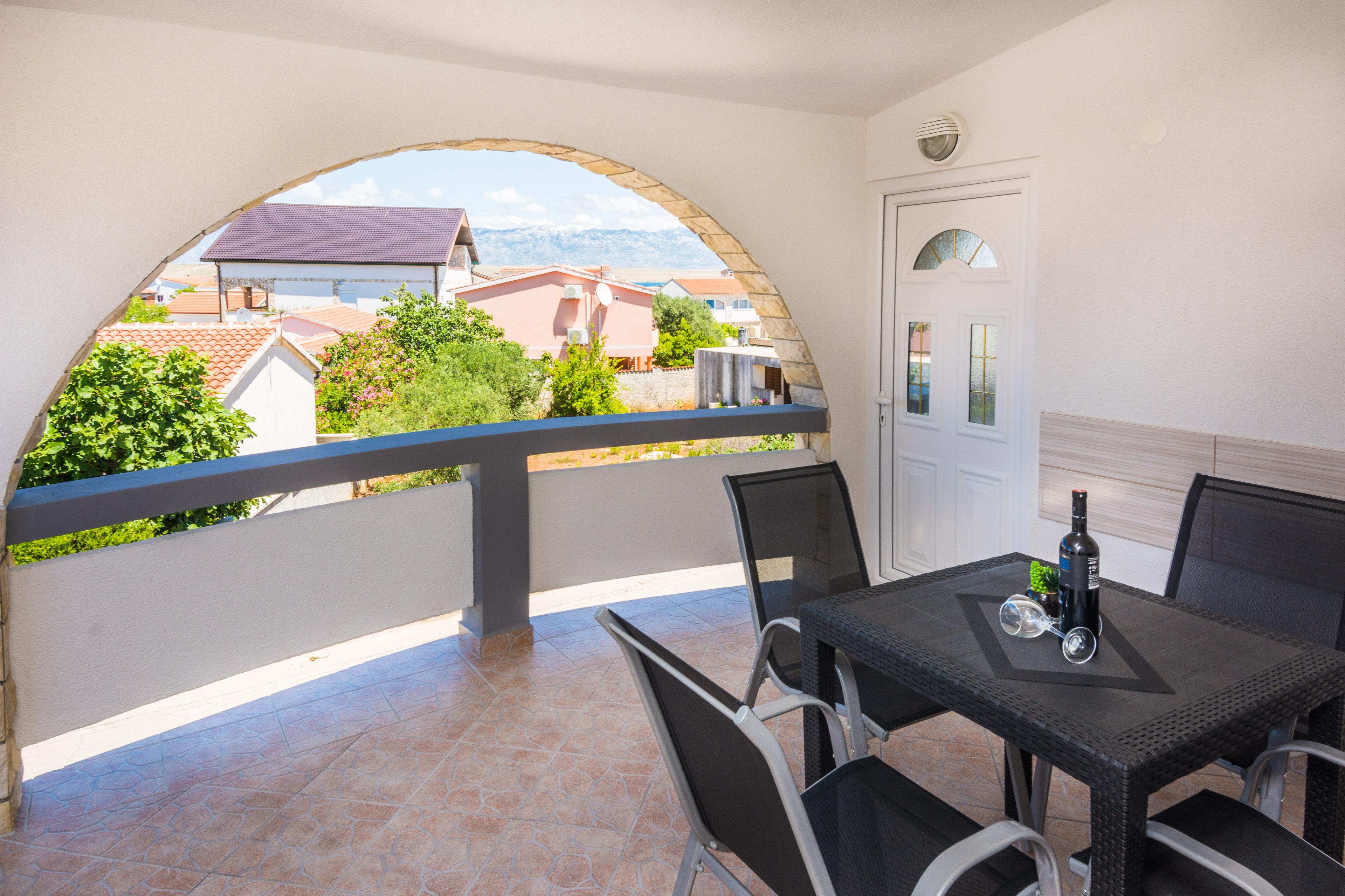 . Die 30 m2 FeWo befindet sich im ersten Stock des Hauses und ist auf ein Wohnzimmer mit Essbereich und Küche, ein Schlafzimmer mit einem Doppelbett und ein Badezimmer mit Dusche unterteilt. Im Wohnzimmer gibt es ein Schlafsofa für zwei Personen. Vom Wohnzimmer aus gelangen Sie auf einen 10 m2 überdachten Balkon mit Tisch und Stühlen. Klimaanlage, WLAN, Sat-TV, Safe, Parkplatz auf dem Grundstück und ein zusätzlicher und gemeinsamer Balkon im ersten Stock mit Grill, Tisch und Stühlen sind nur einige der Merkmale dieses Apartments, die den Gästen zur Verfügung stehen. Restaurants, Einkaufladen und das Zentrum der Insel Vir sind nur wenige Gehminuten entfernt.
