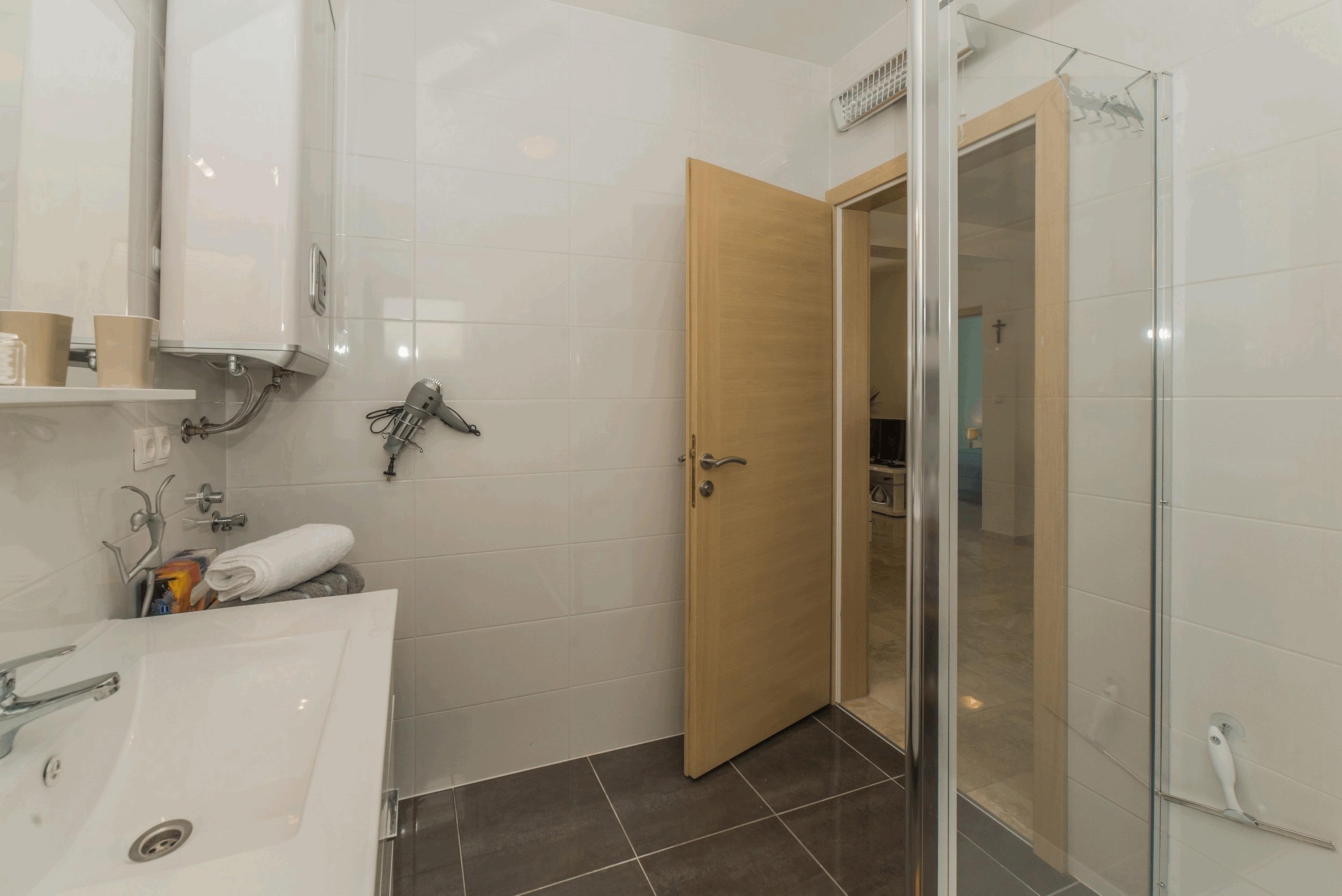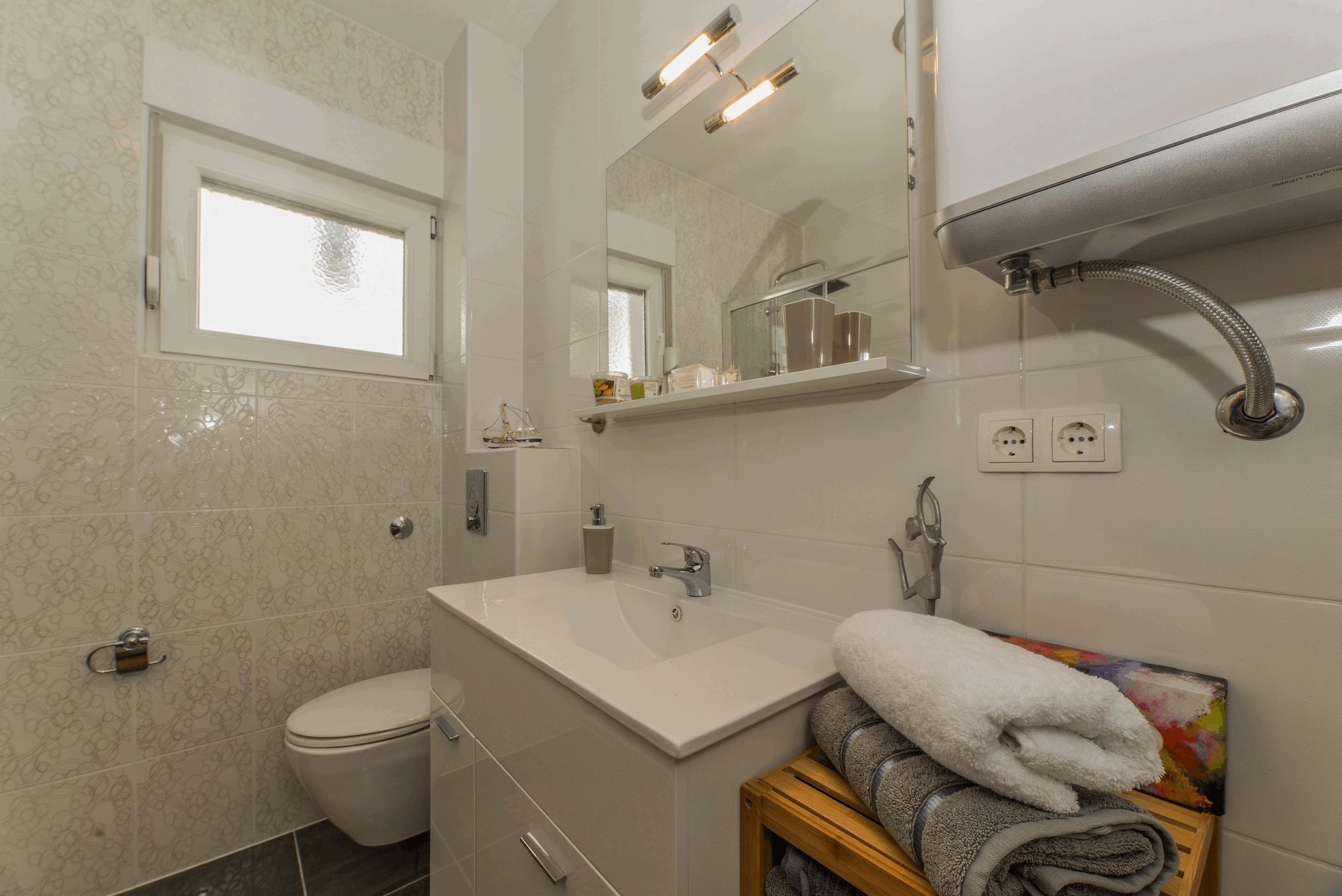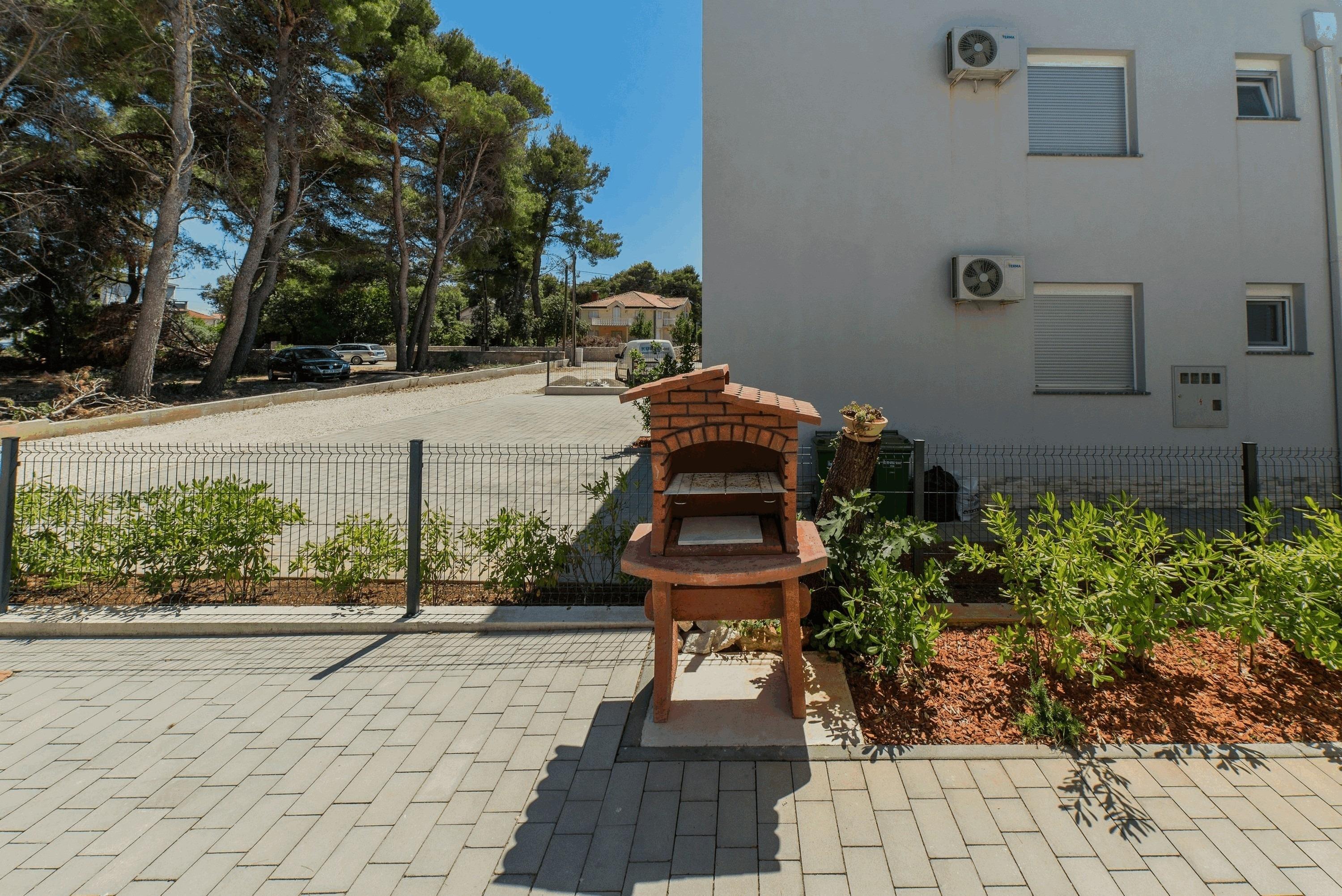 Die 47 m² große Unterkunft in dem Erdgeschoss des Hauses teilt sich in zwei Schlafzimmern mit Doppelbett und Kinderbett, ein Badezimmer mit Dusche sowie einen Ess- & Wohnbereich mit Küche auf. Im Wohnraum befindet sich eine Schlafcouch für zwei Personen. Eine gut ausgestattete Küche, Klimaanlage, Sat-TV, Internetzugang per WLAN, Waschmaschine, möblierte Balkon und Grill im Innenhof zählen zu den weiteren Ausstattungsmerkmalen. Restaurants, Einkaufsmöglichkeiten und das Zentrum des Ortes Vir erreichen Sie innerhalb weniger Gehminuten. Nur 200 m vom Haus entfernt erwarten Sie die schöne Kieselstrand Jadro, der eine große Vielfalt an unterhaltsamen Freizeitaktivitäten und kinderfreundlichen Unterhaltungsprogrammen bietet.