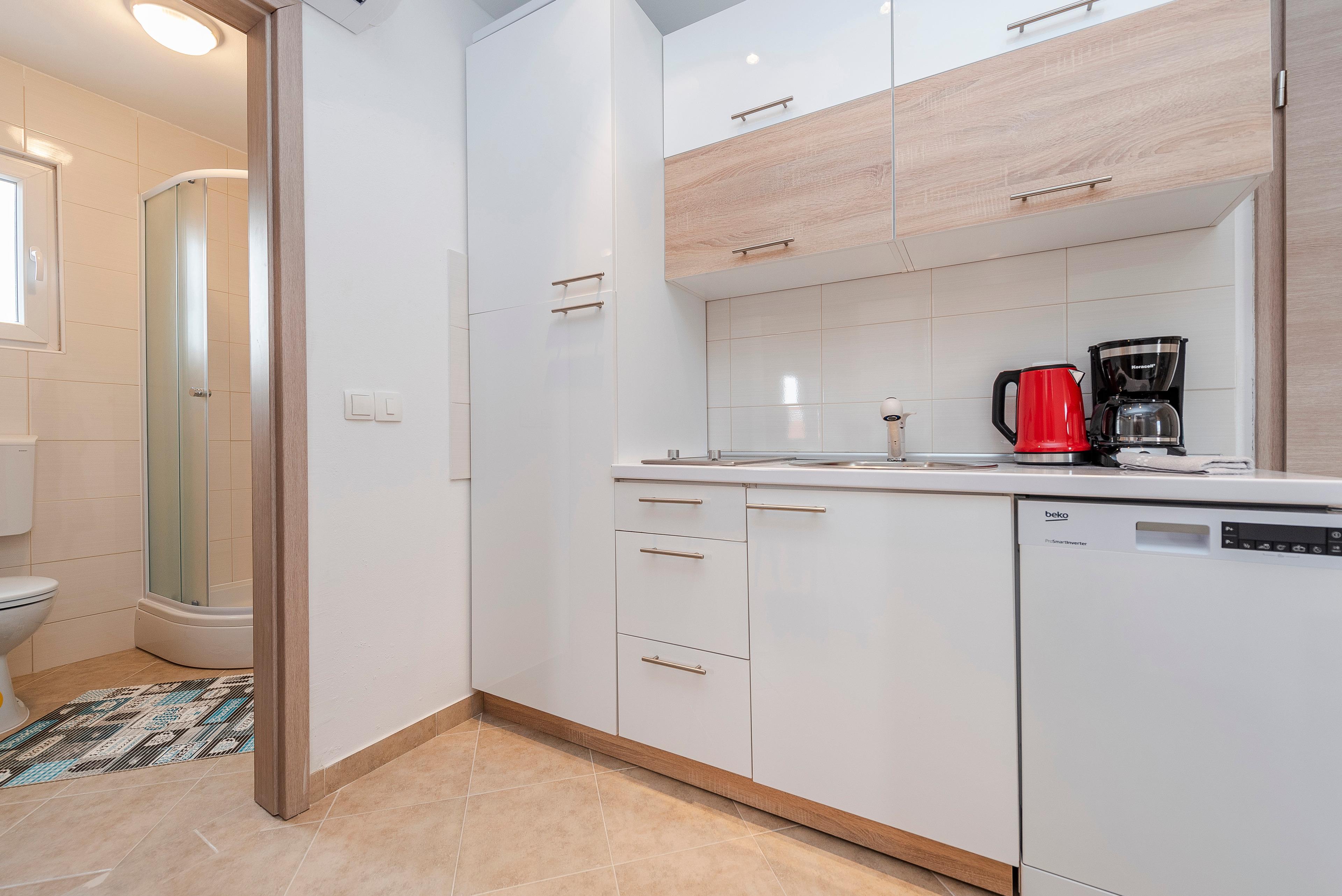 Geräumige und moderne Wohnung (35 m²) befindet sich auf der südlichen Seite der Insel Vir, in einer ruhigen Gegend, nur 100m von Bucht und Strand Luka.