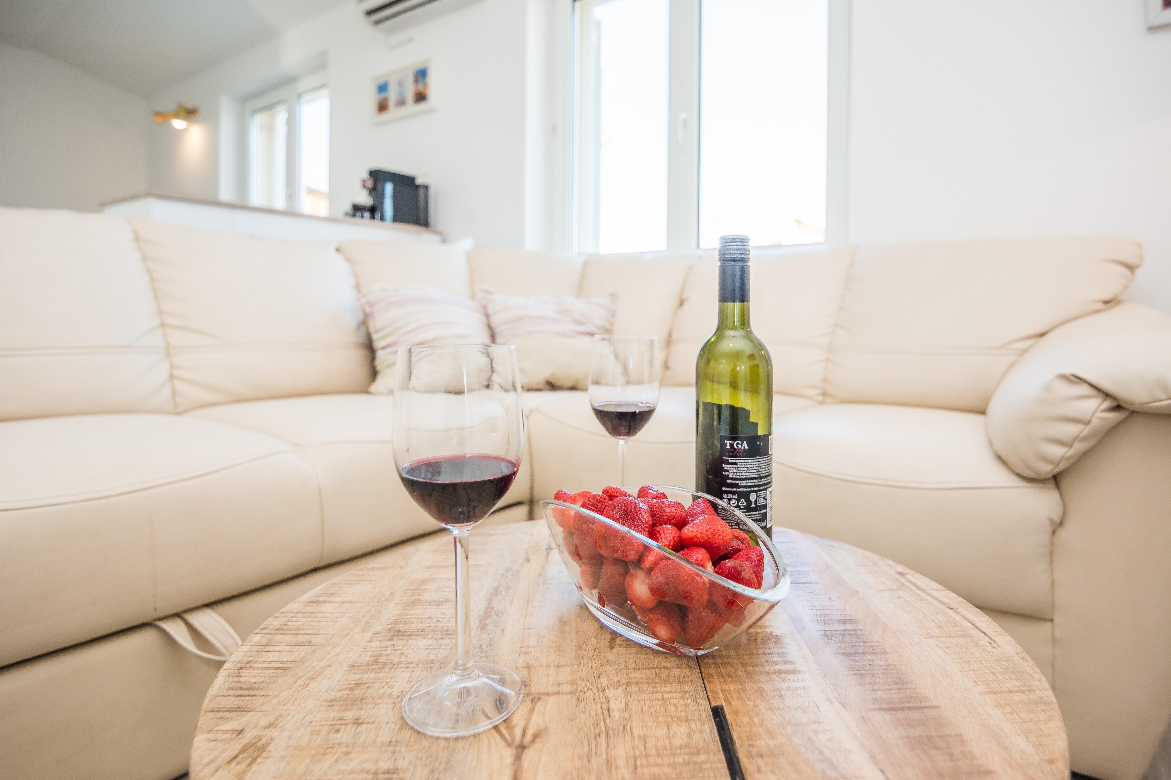 Die Wohnung befindet sich im ersten Stock in einer ruhigen Gegend namens Prezida auf der Insel Vir. Diese private Unterkunft (60 m²) ist ideal für die 4-6 Personen.