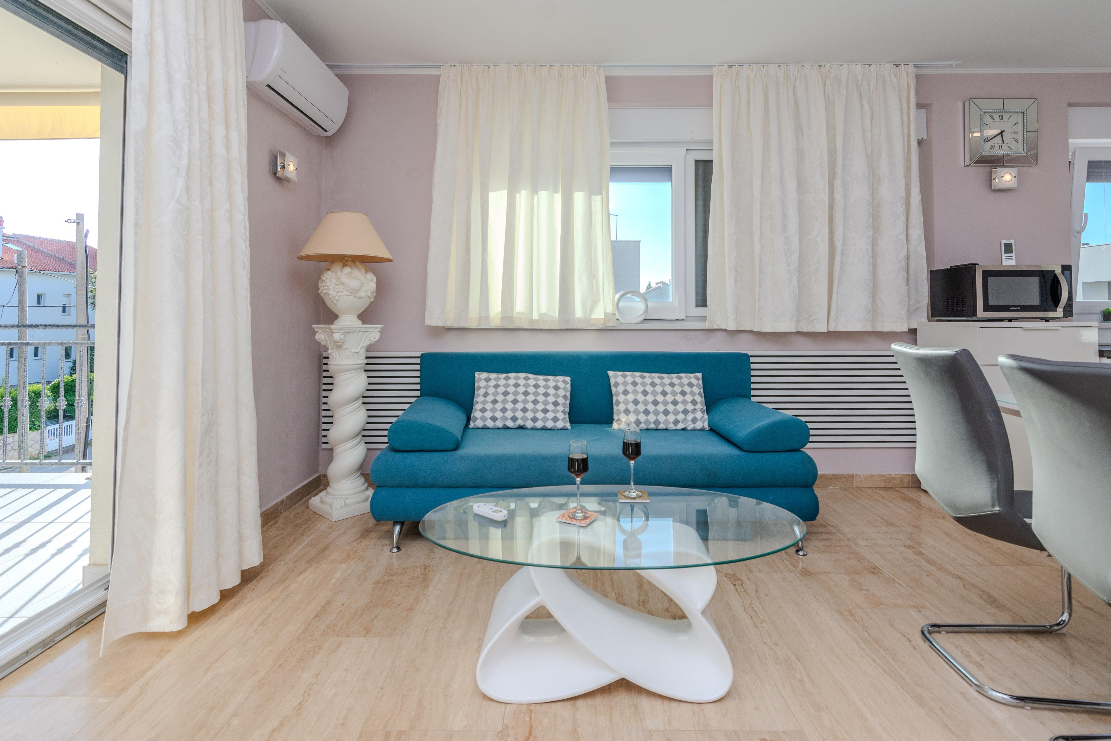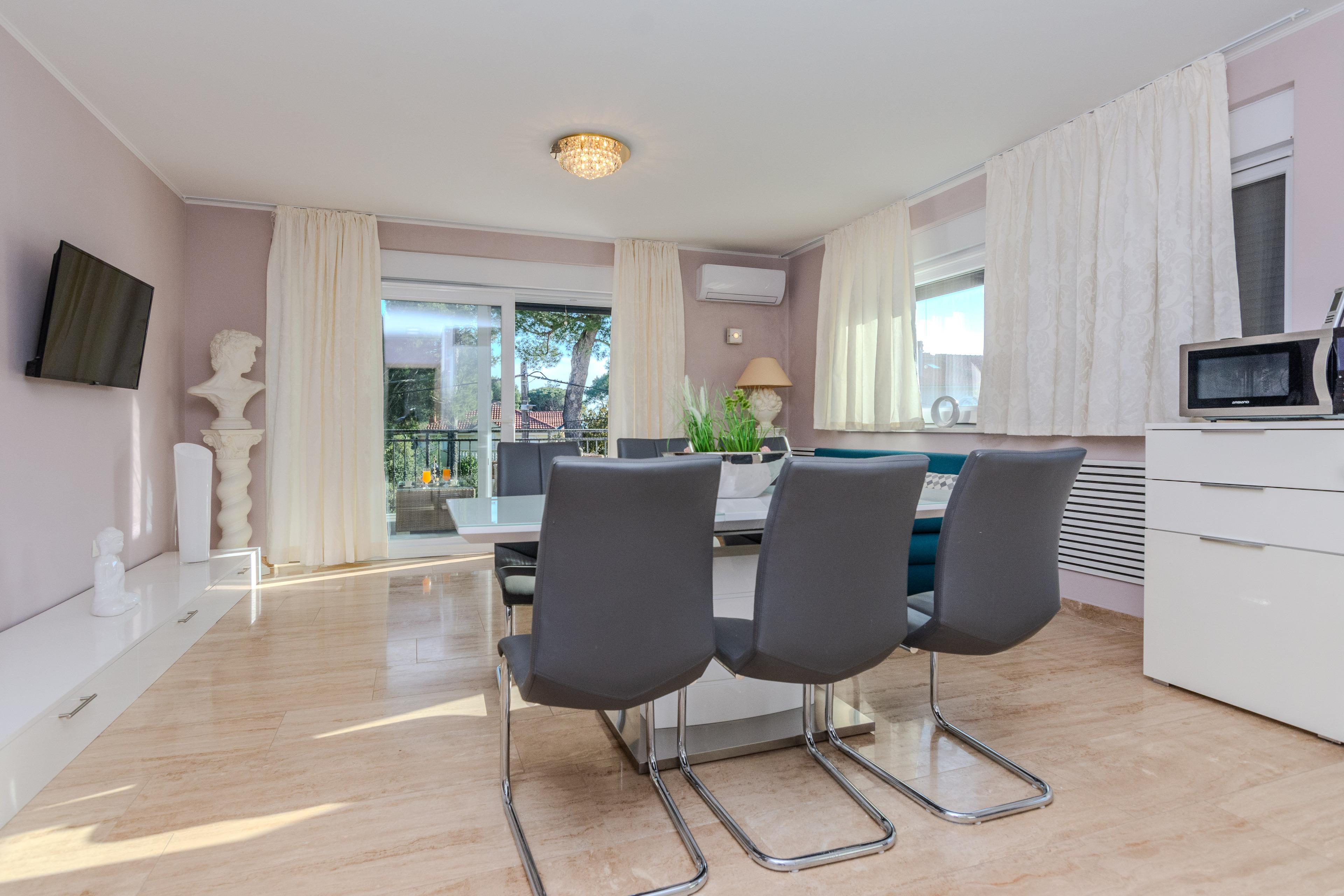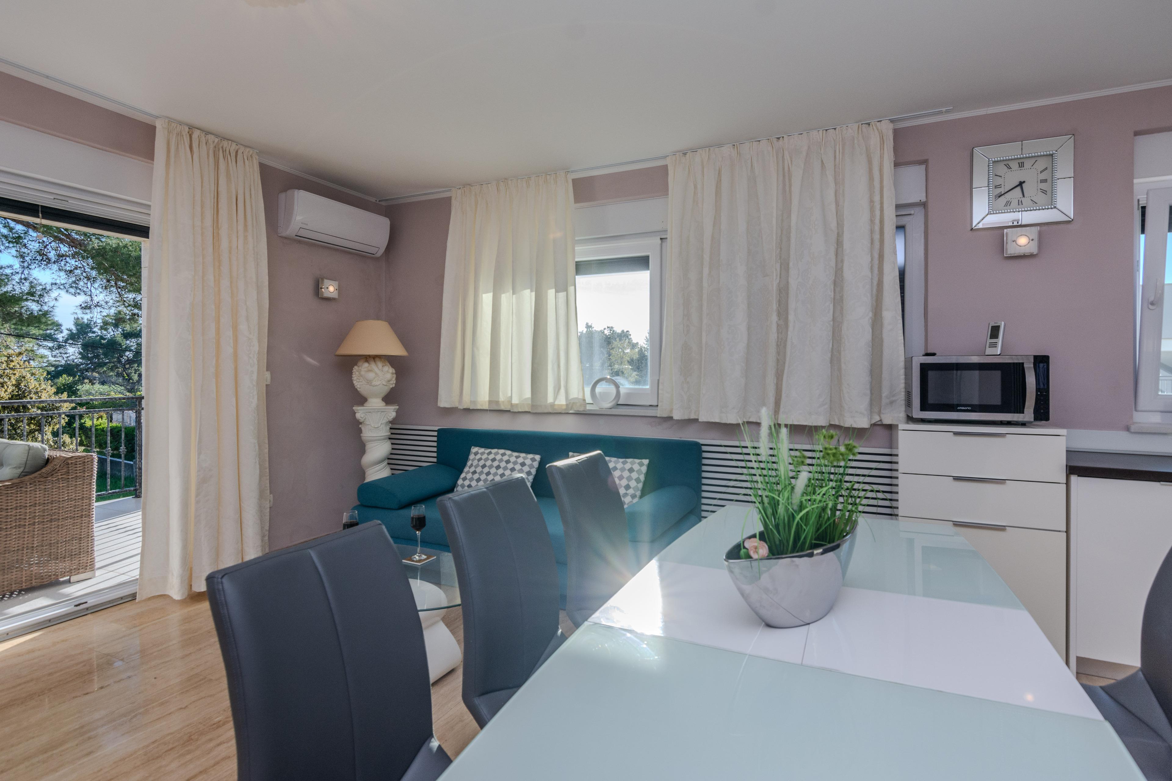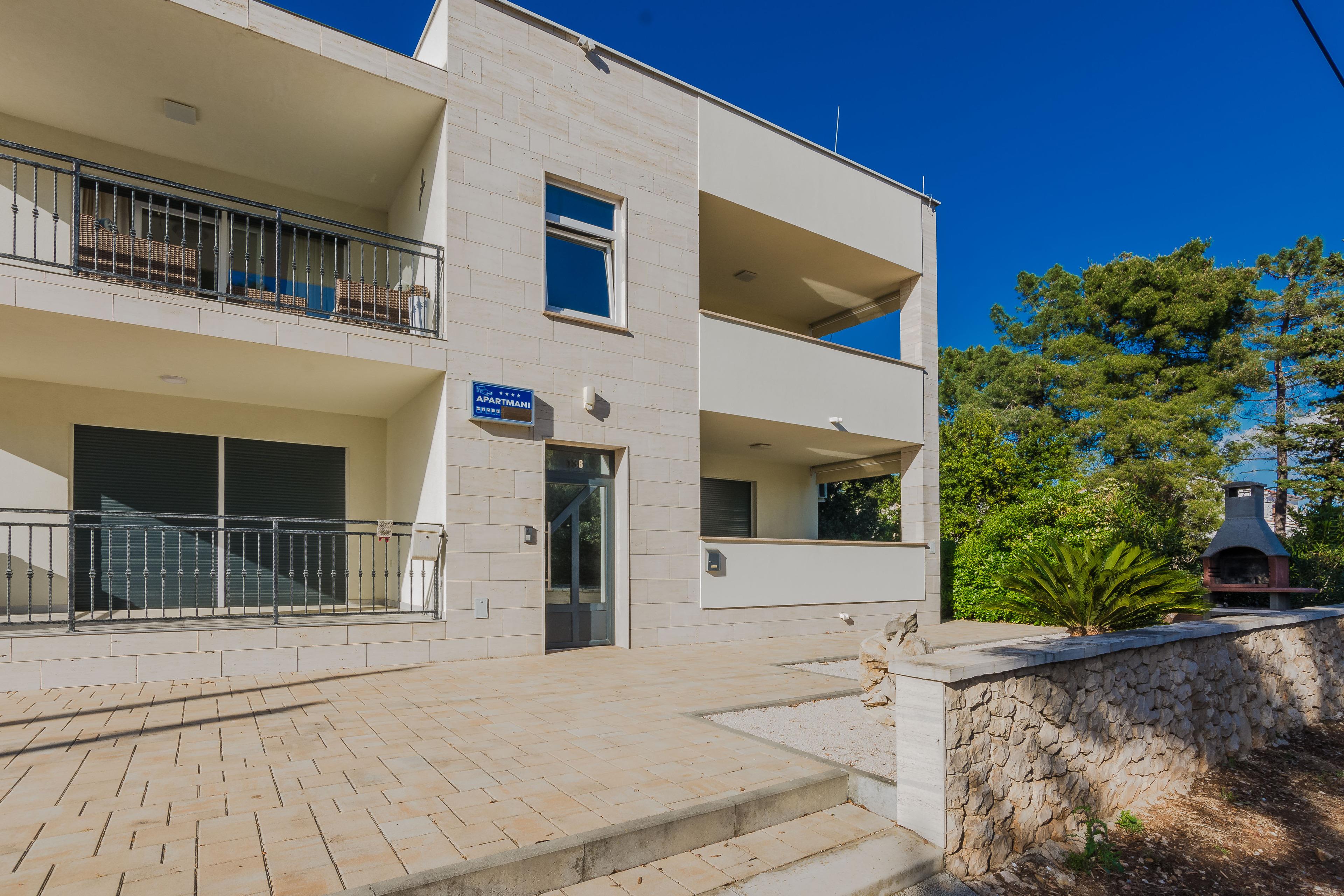 Im Außenbereich steht Ihnen und allen Gästen ein Grill. Der nächste Badestrand ist nur 200m vom Anwesen entfernt. Dieser beliebter Kieselstrand Jadro liegt auf einer Promenade entlang der Küste. Ideal für entspannende Abendspaziergänge.