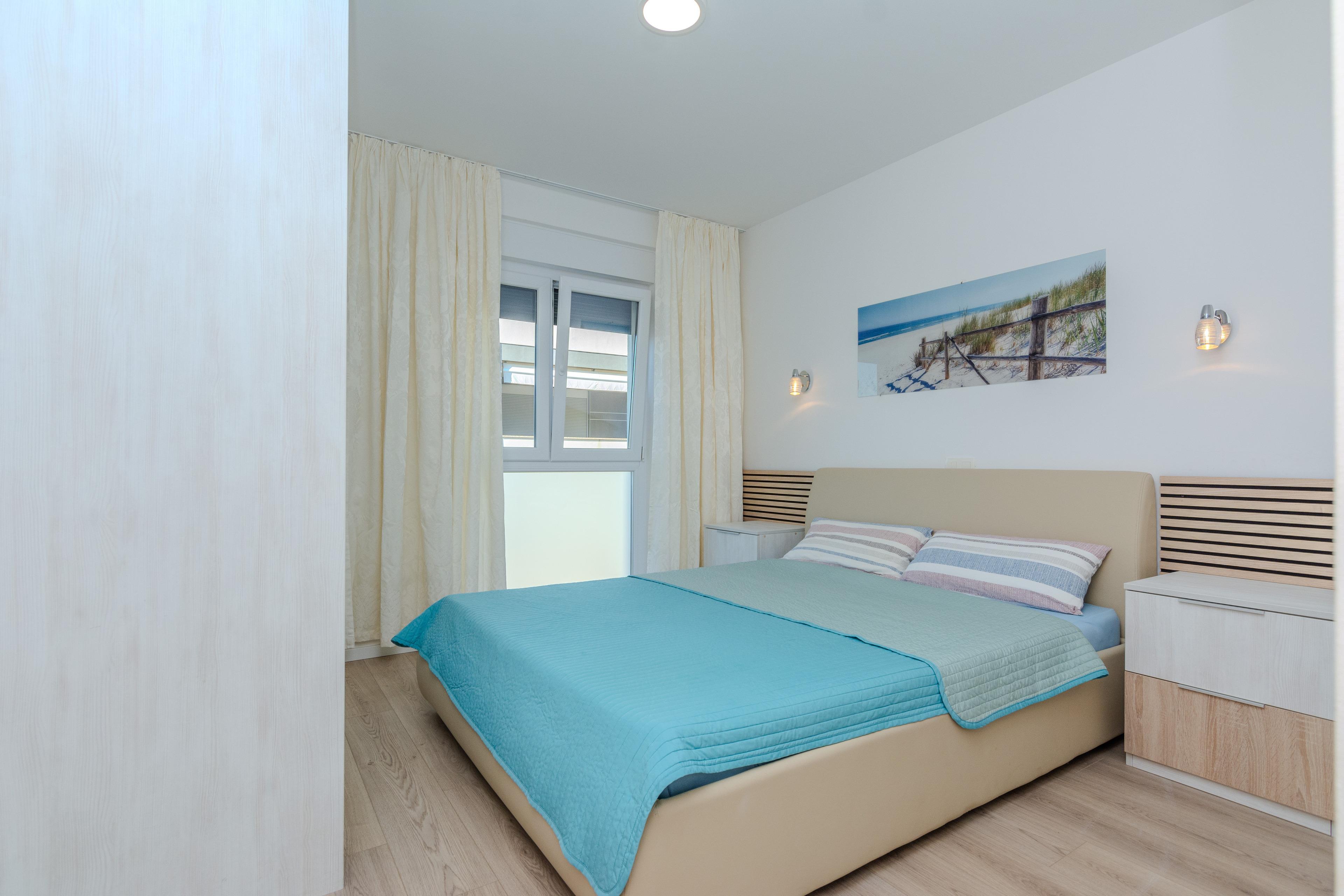 Dieses luxuriöses, modern ausgestattete & neu angerichtete 4-Sterne 75 m2 Urlaubdomizil für 4-6 Personen im 1. Etage des Hauses teilt sich auf zwei Schlafzimmern mit Doppelbett, ein Badezimmer mit Dusche sowie einen Ess- & Wohnbereich mit komplett ausgestatteter Küche auf. Im Wohnraum befindet sich eine Schlafcouch für zwei weitere Personen.