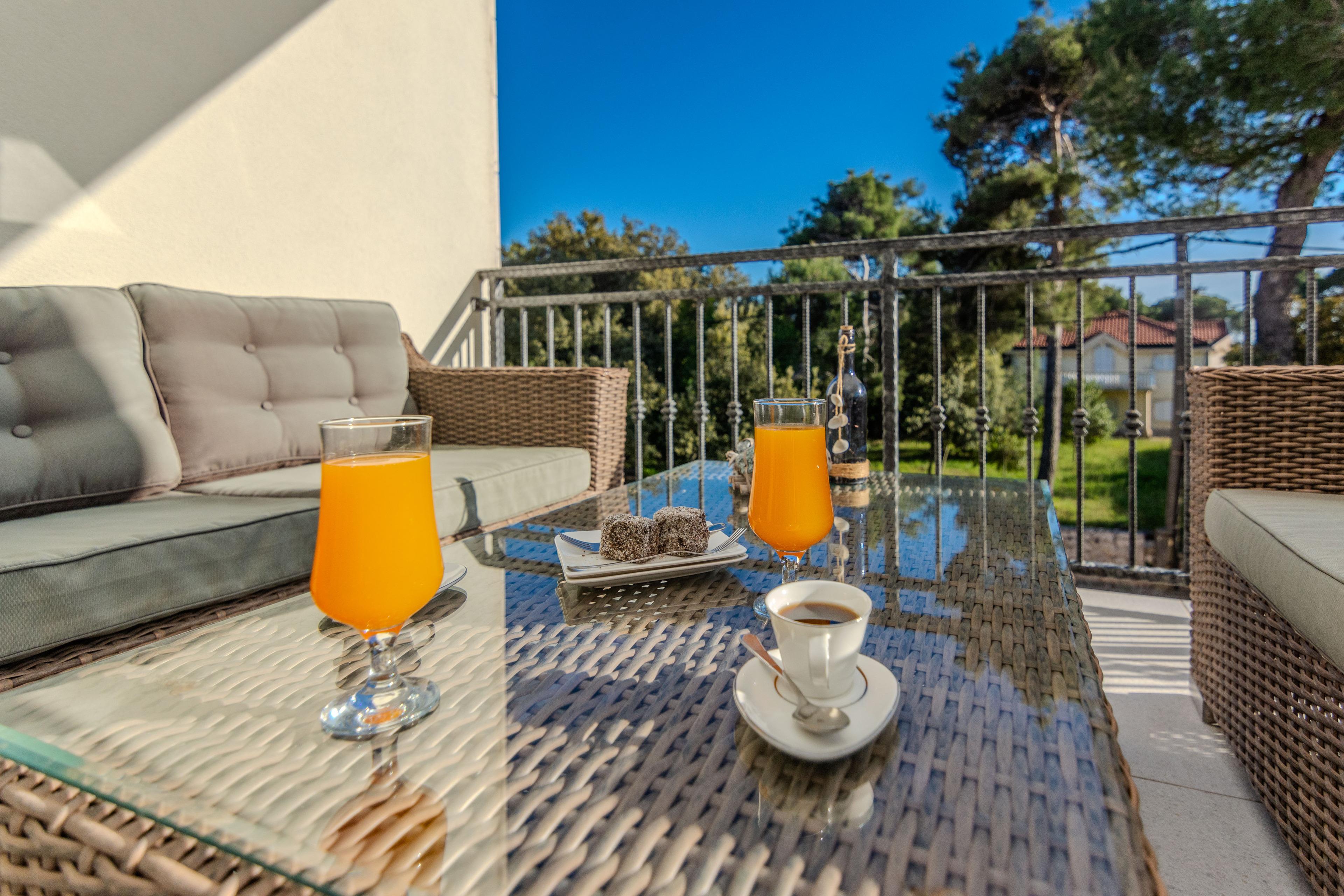 15m2 überdachter möblierter Balkon, Geschirrspülmaschine, Waschmaschine, Klima, Sat-TV und Internetzugang per WLAN zählen zu den weiteren Ausstattungsmerkmalen.