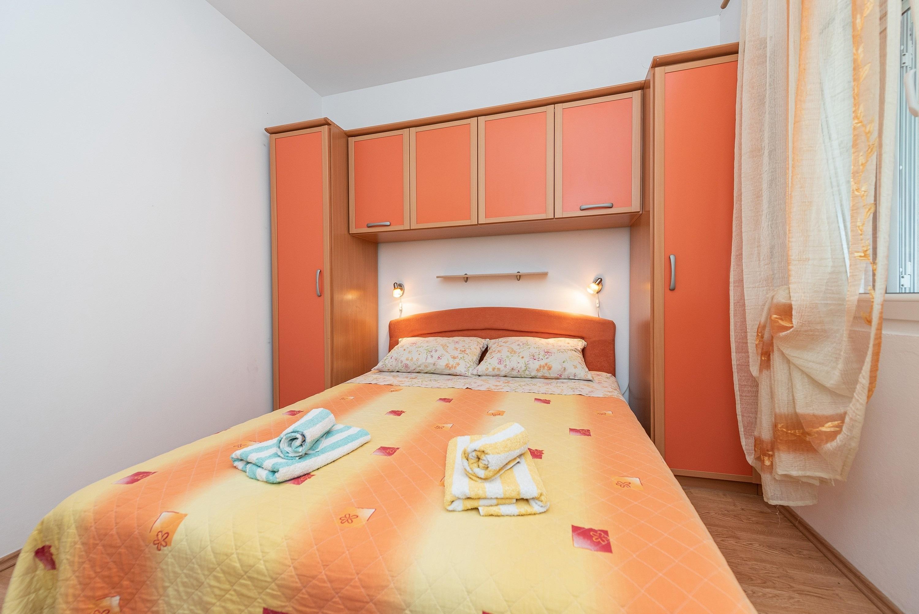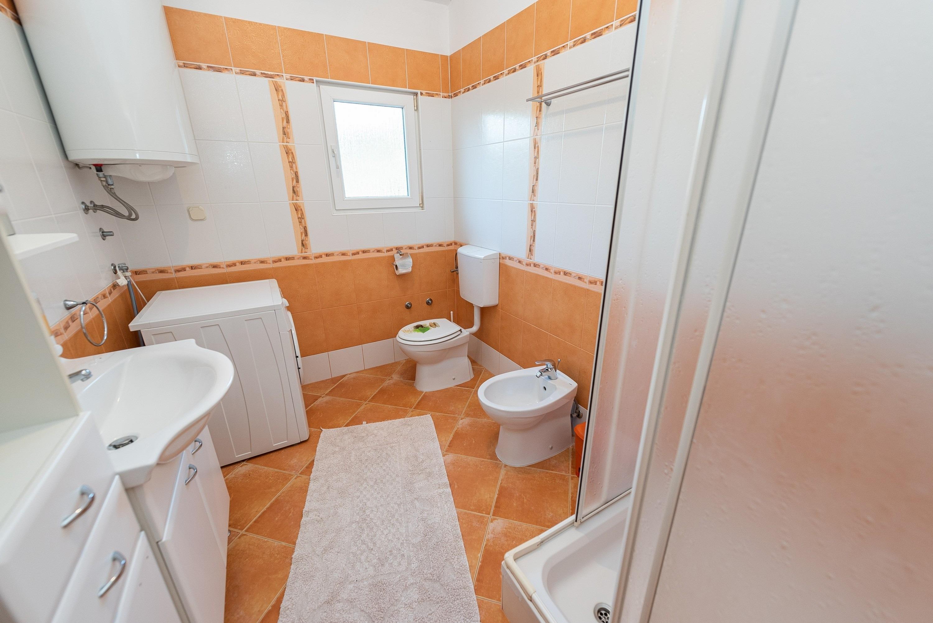 Die 90 m2 große Wohnung teilt sich in drei Schlafzimmern mit Doppelbetten, 2 Badezimmer mit Duschkabinen und gut ausgestattete Küche mit Essbereich. Die zum Apartment gehörende Terrasse mit Meerblick, die mit Tisch und Stühlen ausgestattet ist lädt zum Entspannen ein und bietet Platz zum gemeinsamen Frühstücken und Essen. Für die Kinder gibt es ein ausgestatteter Spielplatz beim Haus und ein Kinderbett und Kinderhochstuhl auf Anfrage aber ohne Aufpreis.