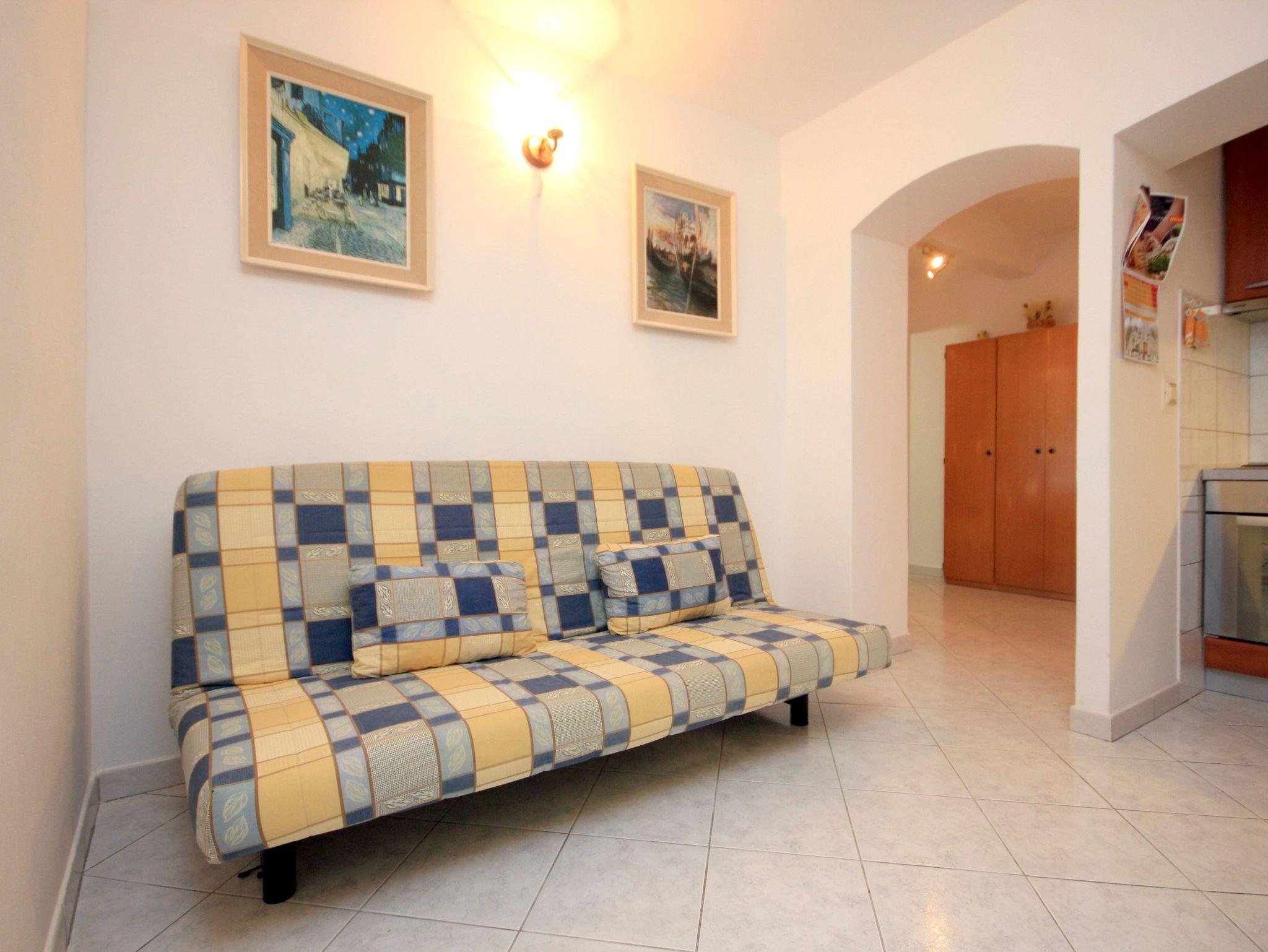 Ferienwohnung bietet Platz für 3 Gäste. Die Betten sind in Schlafzimmern, die es 1 gibt, und in Wohnzimmer, innerhalb einer Gesamtfläche von 36m2, angeordnet. Die Gäste haben eine eigene Terrasse zur Verfügung, auf der sie in warmen Sommernächten genießen können. Das Apartment bietet Meerblick. Es ist erlaubt, Speisen auf dem Gemeinschafts-Grill vorzubereiten. In der Unterkunftseinheit besteht die Möglichkeit des Mitbringens von Haustieren, und die Dienstleistung ist im Preis der Unterkunft enthalten. IM PREIS INBEGRIFFEN: Kurtaxe, Endreinigung, Klimatisierung, Parkplatz, Internet, Haustiere, Bügeleisen, Bügelbrett, Föhn. Die Verfügbarkeit zusätzlicher Dienstleistungen in Ihrem reservierten Termin und die Preise derselben (falls nicht aufgeführt) müssen im Voraus überprüft werden. Zusätzliche Dienstleistungen die in der Zahlungsaufforderung nicht aufgeführt sind werden direkt beim Vermieter bezahlt, angenommen der Gast nutzt auch diese.