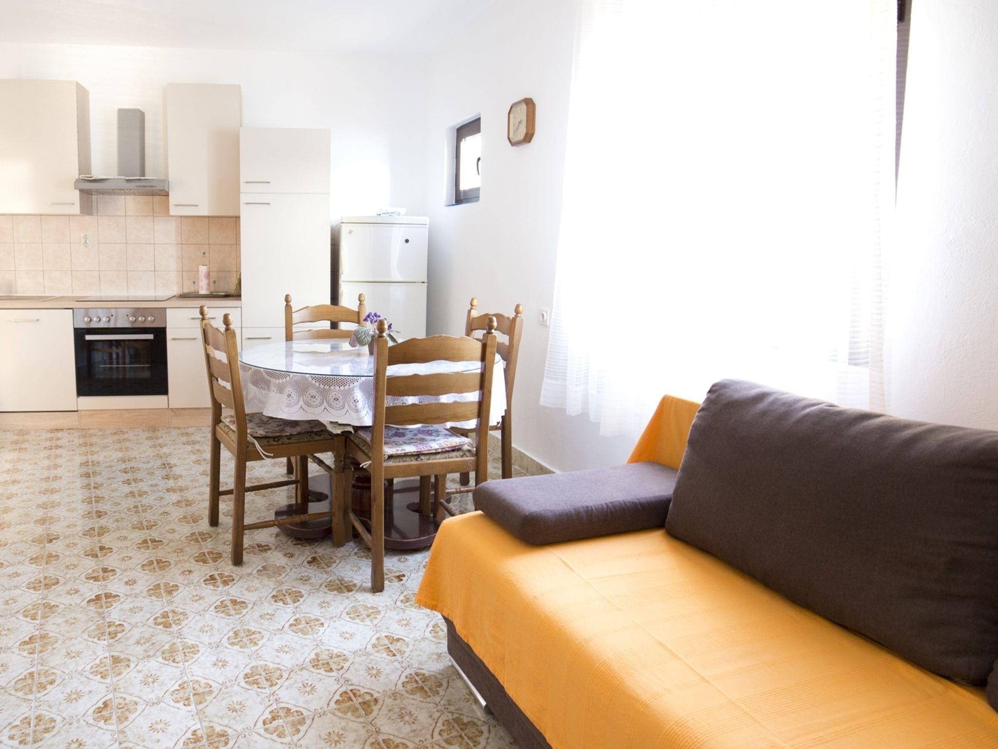 Ferienwohnung bietet Platz für 4 Gäste. Die Betten sind in Schlafzimmern, die es 1 gibt, und in Wohnzimmer, innerhalb einer Gesamtfläche von 38m2, angeordnet. Die Gäste haben einen eigenen Balkon zur Verfügung, auf der sie in warmen Sommernächten genießen können. Das Apartment bietet Meerblick. IM PREIS INBEGRIFFEN: Kurtaxe, Endreinigung, Klimatisierung, Parkplatz, Internet, Bügeleisen, Bügelbrett, Föhn. VERBINDLICHE ZUSÄTZLICHE KOSTEN: Aufzahlung für Kurzaufenthalte (prozentualer Zuschlag pro Nächtigungsanzahl: 30% - 1, 20% - 2, 10% - 3). Die Verfügbarkeit zusätzlicher Dienstleistungen in Ihrem reservierten Termin und die Preise derselben (falls nicht aufgeführt) müssen im Voraus überprüft werden. Zusätzliche Dienstleistungen die in der Zahlungsaufforderung nicht aufgeführt sind werden direkt beim Vermieter bezahlt, angenommen der Gast nutzt auch diese.
