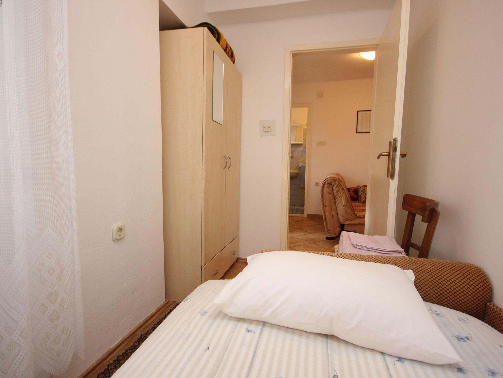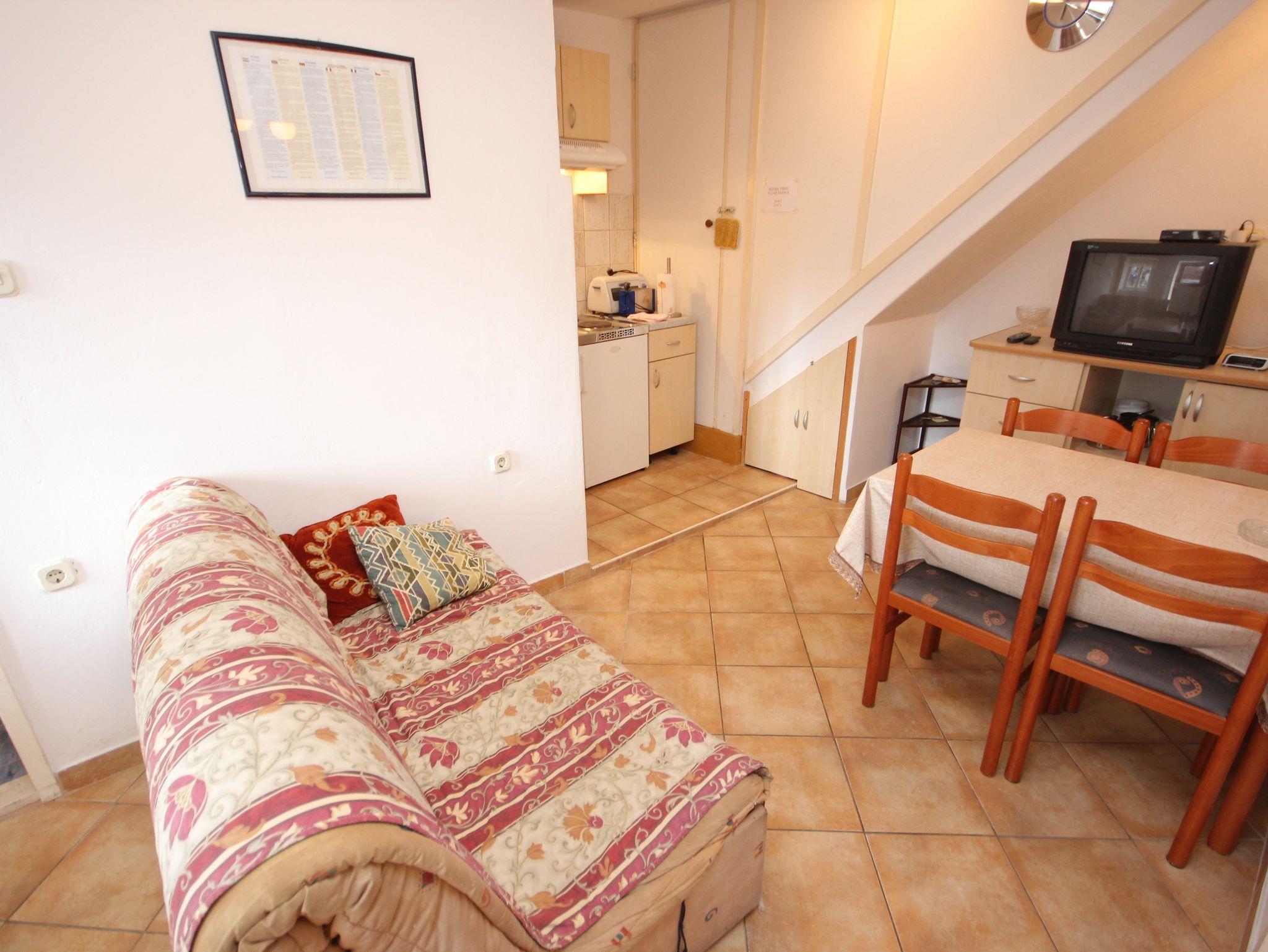 Ferienwohnung bietet Platz für 4 Gäste. Die Betten sind in Schlafzimmern, die es 2 gibt, und in Esszimmer, innerhalb einer Gesamtfläche von 31m2, angeordnet. Die Gäste haben einen eigenen Balkon zur Verfügung, auf der sie in warmen Sommernächten genießen können. IM PREIS INBEGRIFFEN: Kurtaxe, Endreinigung, Klimatisierung, Internet, Bügeleisen, Bügelbrett, Föhn. VERBINDLICHE ZUSÄTZLICHE KOSTEN: Aufzahlung für Kurzaufenthalte (prozentualer Zuschlag pro Nächtigungsanzahl: 30% - 1, 20% - 2, 10% - 3). Die Verfügbarkeit zusätzlicher Dienstleistungen in Ihrem reservierten Termin und die Preise derselben (falls nicht aufgeführt) müssen im Voraus überprüft werden. Zusätzliche Dienstleistungen die in der Zahlungsaufforderung nicht aufgeführt sind werden direkt beim Vermieter bezahlt, angenommen der Gast nutzt auch diese. Ermäßigung auf den Grundpreis: Gratistag 14=13 (bei einem Aufenthalt von 14 Tagen oder mehr erhalten Sie einen Gratistag für den Aufenthalt bis 31.12.26).