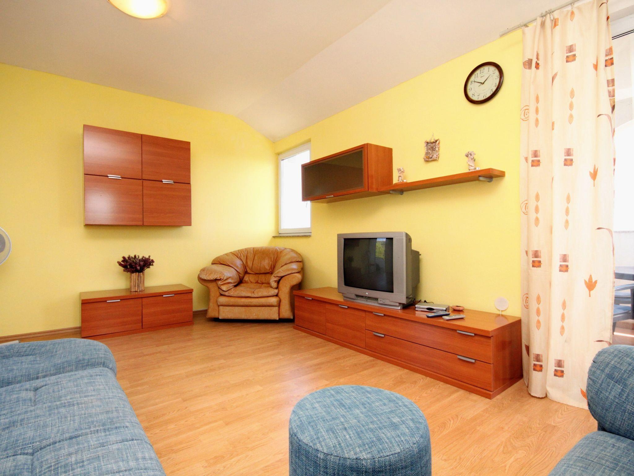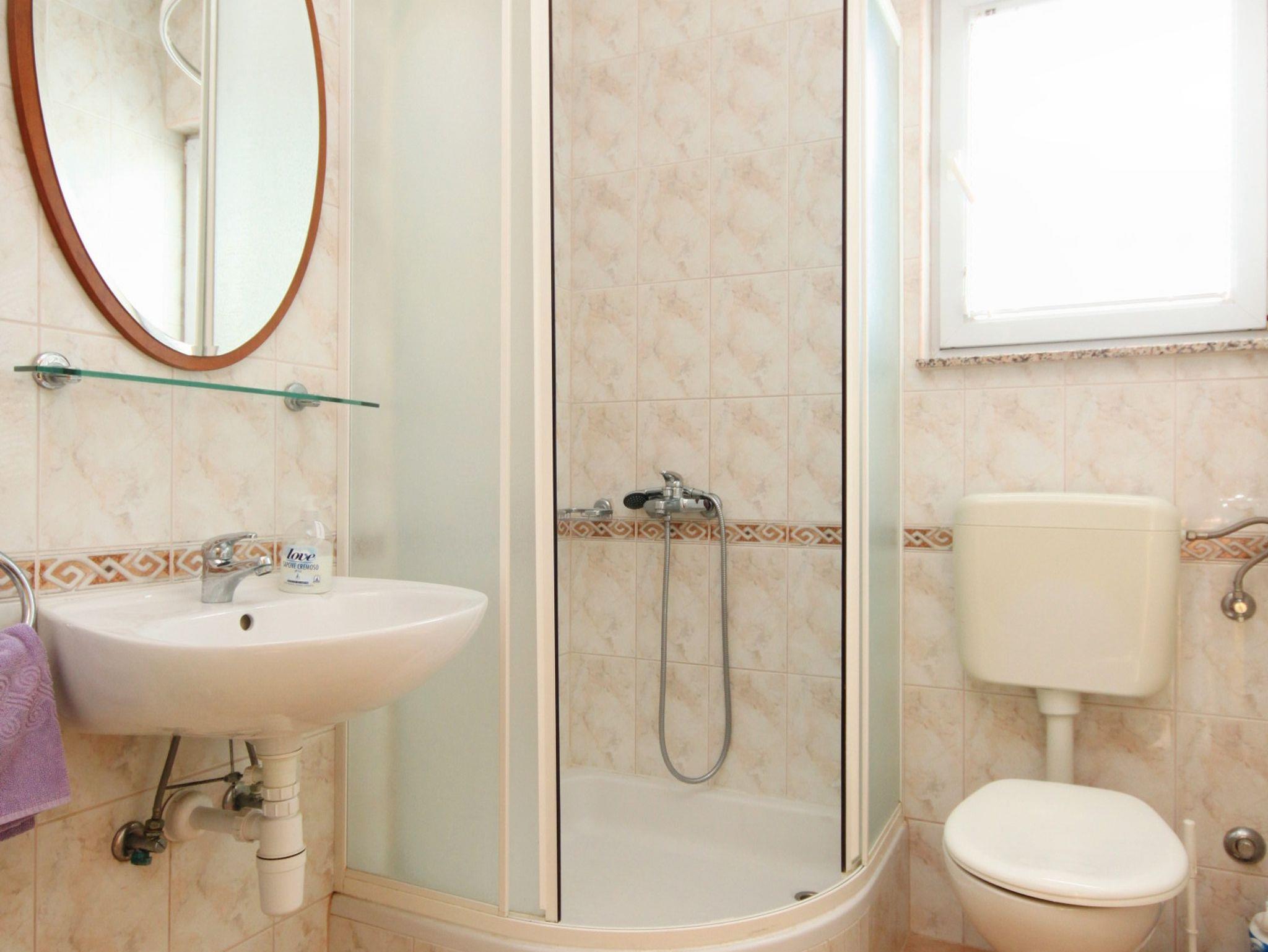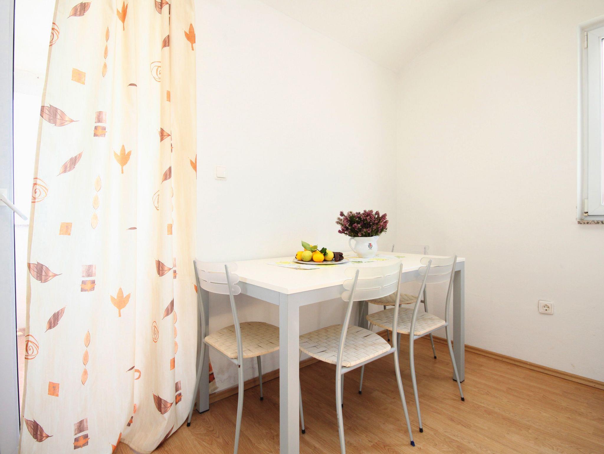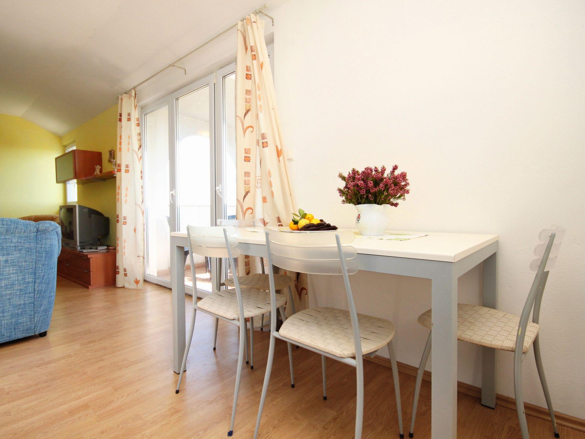Ferienwohnung bietet Platz für 4 Gäste. Die Betten sind in Schlafzimmern, die es 2 gibt, innerhalb einer Gesamtfläche von 49m2, angeordnet. Die Gäste haben eine eigene Terrasse zur Verfügung, auf der sie in warmen Sommernächten genießen können. Das Apartment bietet Meerblick. Es ist erlaubt, Speisen auf dem Gemeinschafts-Grill vorzubereiten. IM PREIS INBEGRIFFEN: Kurtaxe, Endreinigung, Klimatisierung, Parkplatz, Internet, Wäschewaschen, Bügeleisen, Bügelbrett, Föhn, 1 Bett für Kinder (im Preis enthalten). VERBINDLICHE ZUSÄTZLICHE KOSTEN: Aufzahlung für Kurzaufenthalte (prozentualer Zuschlag pro Nächtigungsanzahl: 30% - 1, 20% - 2, 10% - 3). Die Verfügbarkeit zusätzlicher Dienstleistungen in Ihrem reservierten Termin und die Preise derselben (falls nicht aufgeführt) müssen im Voraus überprüft werden. Zusätzliche Dienstleistungen die in der Zahlungsaufforderung nicht aufgeführt sind werden direkt beim Vermieter bezahlt, angenommen der Gast nutzt auch diese. Ermäßigung auf den Grundpreis: Gratistag 14=13 (bei einem Aufenthalt von 14 Tagen oder mehr erhalten Sie einen Gratistag für den Aufenthalt bis 31.12.26).