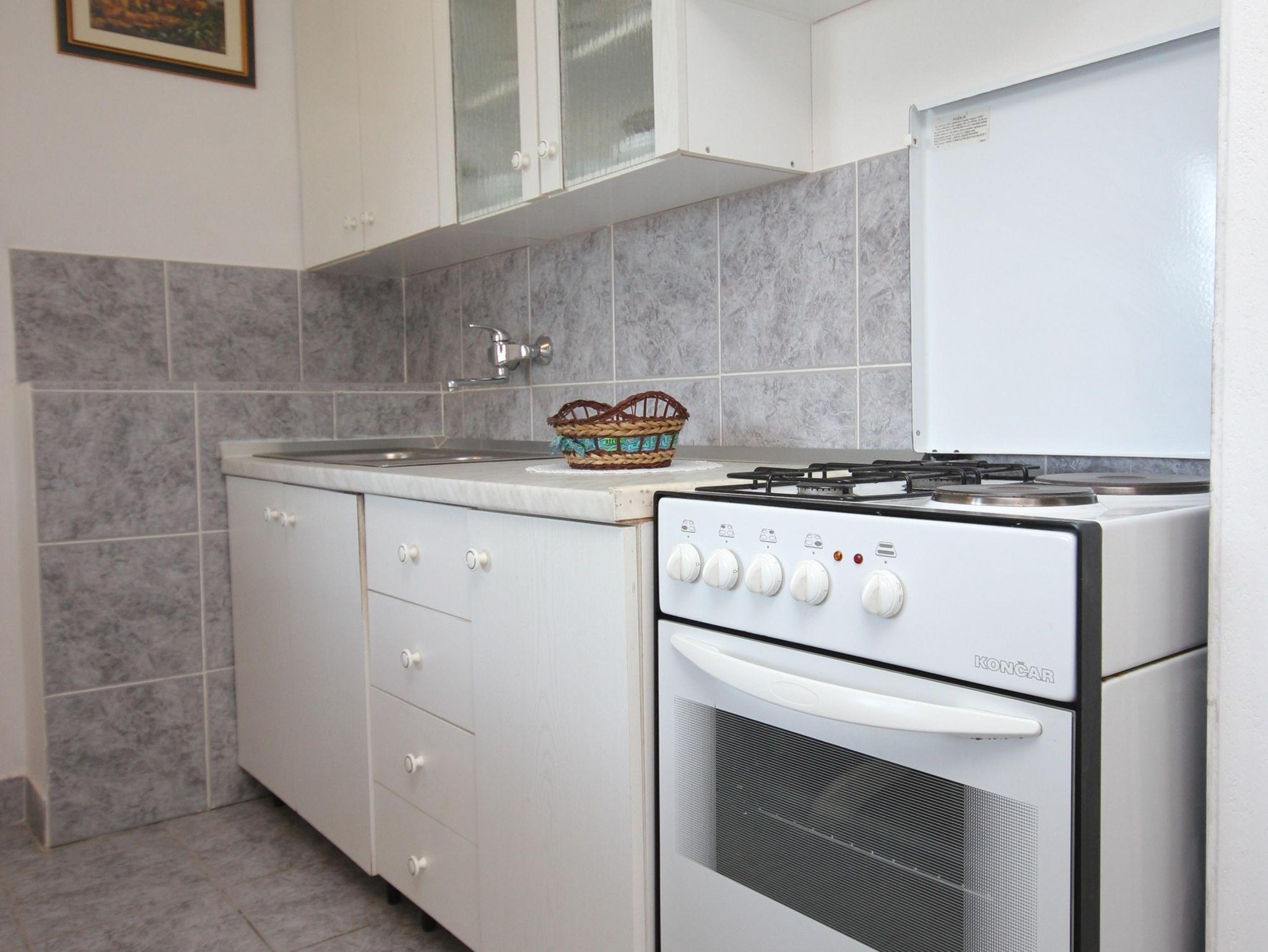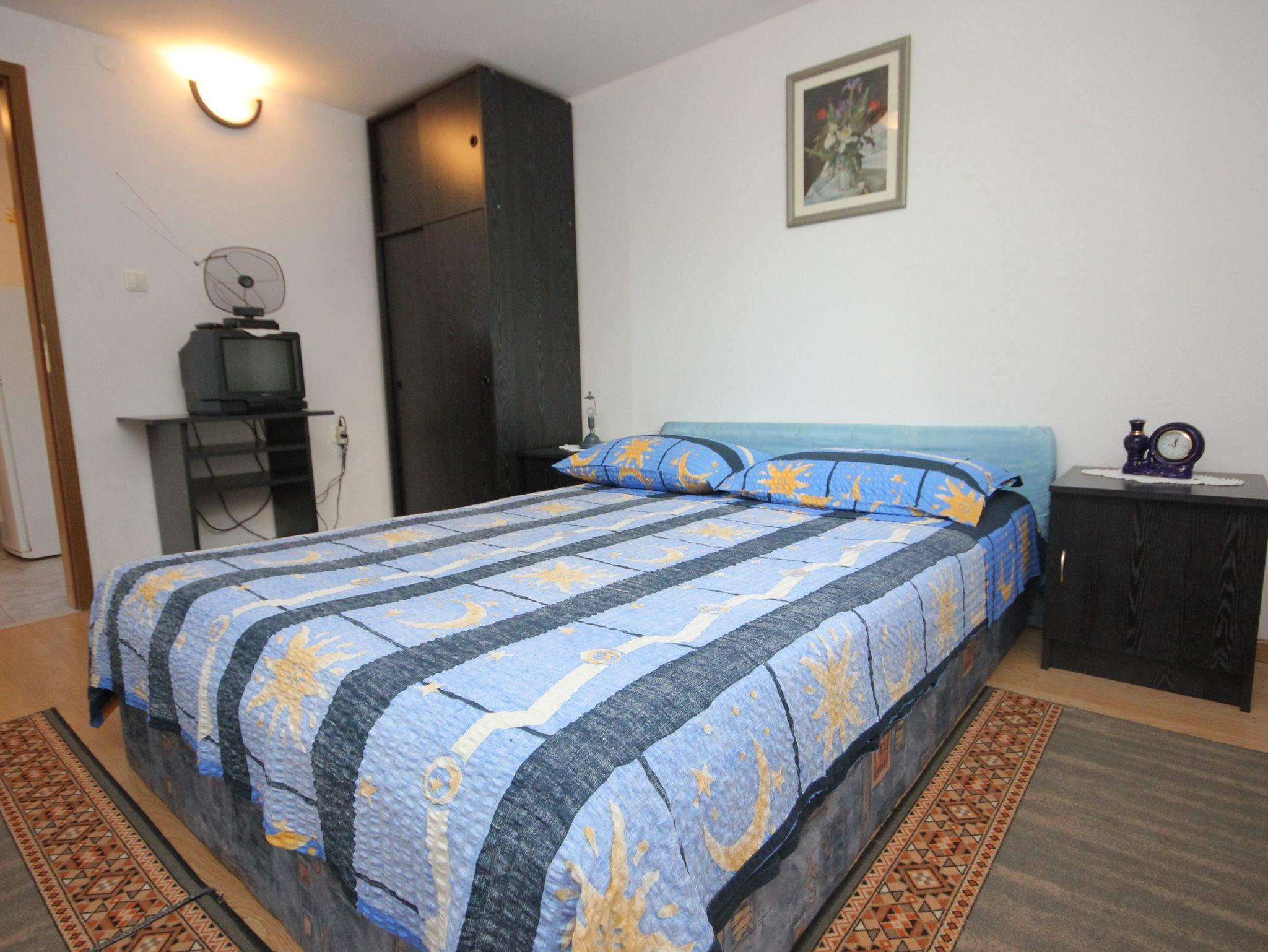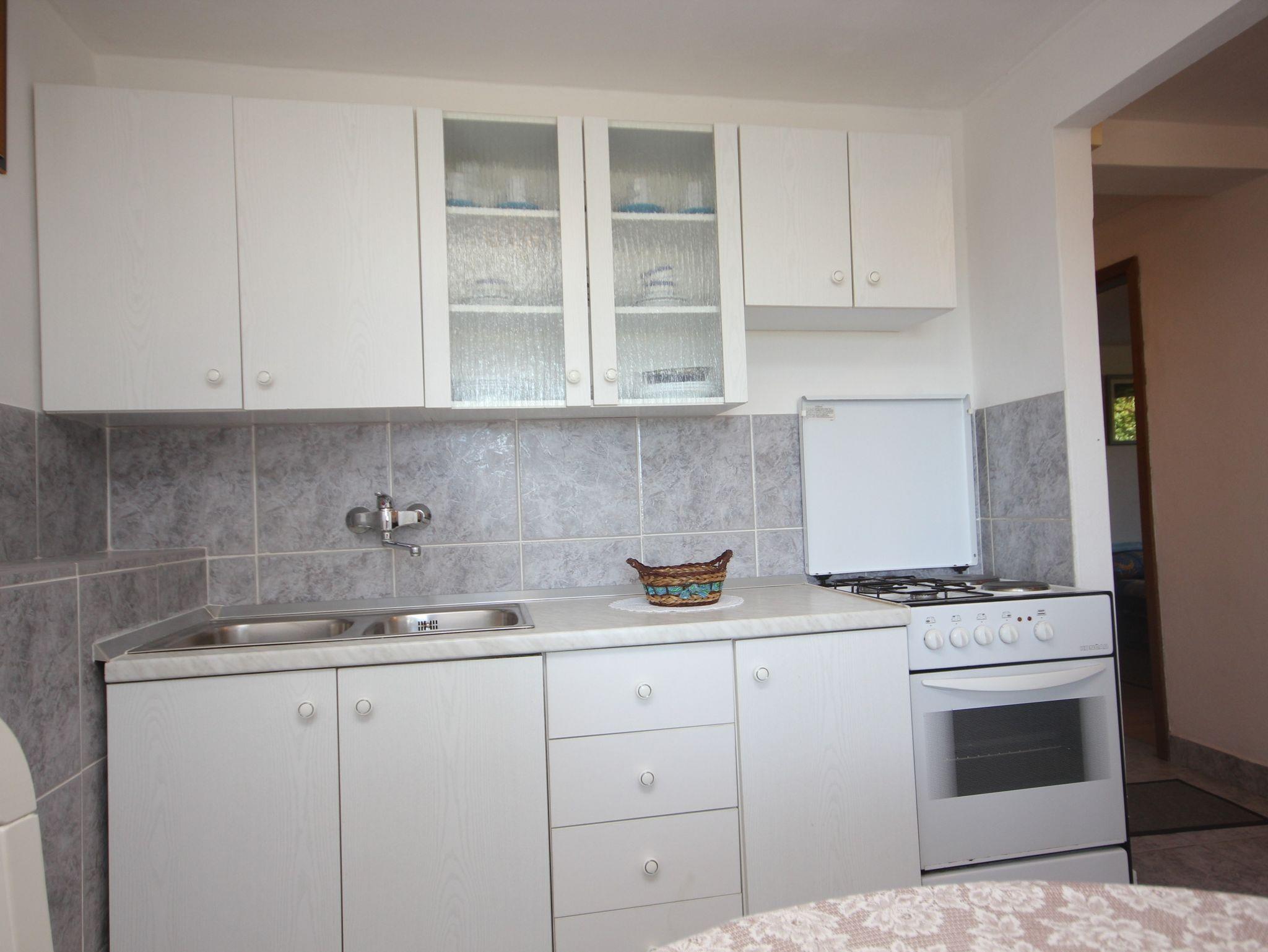 Ferienwohnung bietet Platz für 4 Gäste. Die Betten sind in Schlafzimmern, die es 2 gibt, innerhalb einer Gesamtfläche von 46m2, angeordnet. Die Gäste haben eine eigene Terrasse zur Verfügung, auf der sie in warmen Sommernächten genießen können. Das Apartment bietet Meerblick. Es ist erlaubt, Speisen auf dem Gemeinschafts-Grill vorzubereiten. In der Unterkunftseinheit besteht die Möglichkeit des Mitbringens von Haustieren gegen Aufpreis. IM PREIS INBEGRIFFEN: Kurtaxe, Endreinigung, Klimatisierung, Parkplatz, Garage, Internet, Bügeleisen, Bügelbrett, Föhn. VERBINDLICHE ZUSÄTZLICHE KOSTEN: Aufzahlung für Kurzaufenthalte (prozentualer Zuschlag pro Nächtigungsanzahl: 30% - 1, 20% - 2, 10% - 3). UNVERBINDLICHE ZUSÄTZLICHE KOSTEN: Bootsanlegeplatz (10,00 € pro Nacht), Haustiere (10,00 € pro Nacht). Die Verfügbarkeit zusätzlicher Dienstleistungen in Ihrem reservierten Termin und die Preise derselben (falls nicht aufgeführt) müssen im Voraus überprüft werden. Zusätzliche Dienstleistungen die in der Zahlungsaufforderung nicht aufgeführt sind werden direkt beim Vermieter bezahlt, angenommen der Gast nutzt auch diese.