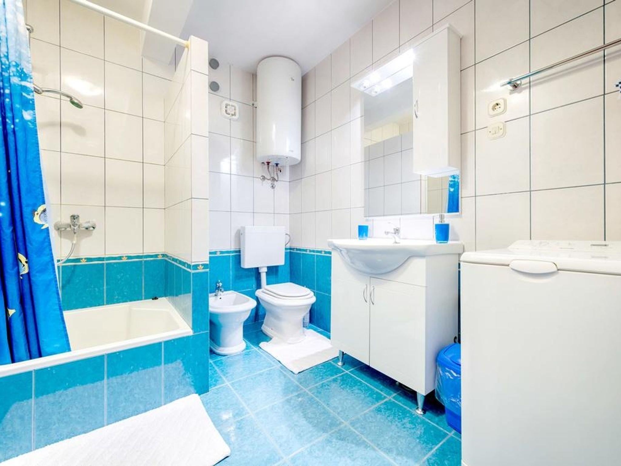 Ferienwohnung bietet Platz für 4 Gäste. Die Betten sind in Schlafzimmern, die es 2 gibt, innerhalb einer Gesamtfläche von 57m2, angeordnet. Die Gäste haben eine eigene Terrasse zur Verfügung, auf der sie in warmen Sommernächten genießen können. Das Apartment bietet Meerblick. Es ist erlaubt, Speisen auf dem Gemeinschafts-Grill vorzubereiten. IM PREIS INBEGRIFFEN: Kurtaxe, Endreinigung, Klimatisierung, Parkplatz, Internet. VERBINDLICHE ZUSÄTZLICHE KOSTEN: Aufzahlung für Kurzaufenthalte (prozentualer Zuschlag pro Nächtigungsanzahl: 30% - 1, 20% - 2, 10% - 3). Die Verfügbarkeit zusätzlicher Dienstleistungen in Ihrem reservierten Termin und die Preise derselben (falls nicht aufgeführt) müssen im Voraus überprüft werden. Zusätzliche Dienstleistungen die in der Zahlungsaufforderung nicht aufgeführt sind werden direkt beim Vermieter bezahlt, angenommen der Gast nutzt auch diese.