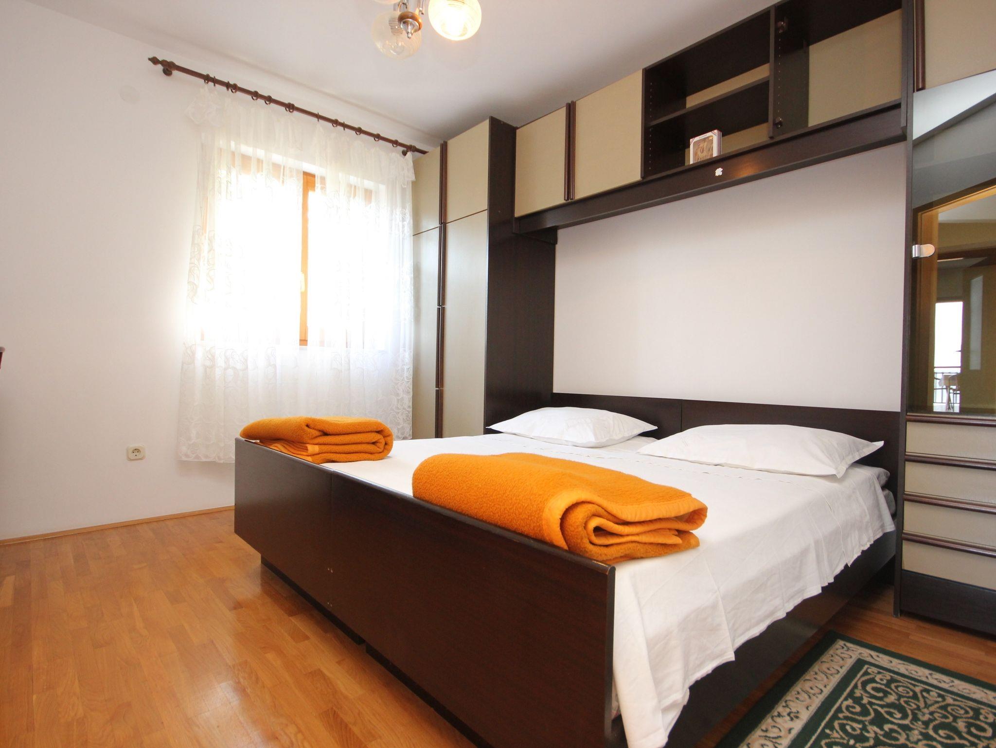 Ferienwohnung bietet Platz für 4 Gäste. Die Betten sind in Schlafzimmern, die es 1 gibt, und in Wohnzimmer, innerhalb einer Gesamtfläche von 47m2, angeordnet. Die Gäste haben eine eigene Terrasse zur Verfügung, auf der sie in warmen Sommernächten genießen können. Das Apartment bietet Meerblick. Es ist erlaubt, Speisen auf dem Gemeinschafts-Grill vorzubereiten. In der Unterkunftseinheit besteht die Möglichkeit des Mitbringens von Haustieren gegen Aufpreis. IM PREIS INBEGRIFFEN: Kurtaxe, Endreinigung, Klimatisierung, Parkplatz, Internet, Wäschewaschen, Kinderbett, Bügeleisen, Bügelbrett, Föhn. VERBINDLICHE ZUSÄTZLICHE KOSTEN: Aufzahlung für Kurzaufenthalte (prozentualer Zuschlag pro Nächtigungsanzahl: 30% - 1, 20% - 2, 10% - 3). UNVERBINDLICHE ZUSÄTZLICHE KOSTEN: Haustiere (5,00 € pro Nacht), Zusatzbett (5,00 € pro Nacht). Die Verfügbarkeit zusätzlicher Dienstleistungen in Ihrem reservierten Termin und die Preise derselben (falls nicht aufgeführt) müssen im Voraus überprüft werden. Zusätzliche Dienstleistungen die in der Zahlungsaufforderung nicht aufgeführt sind werden direkt beim Vermieter bezahlt, angenommen der Gast nutzt auch diese. Ermäßigung auf den Grundpreis: Gratistag 14=13 (bei einem Aufenthalt von 14 Tagen oder mehr erhalten Sie einen Gratistag für den Aufenthalt bis 31.12.26).