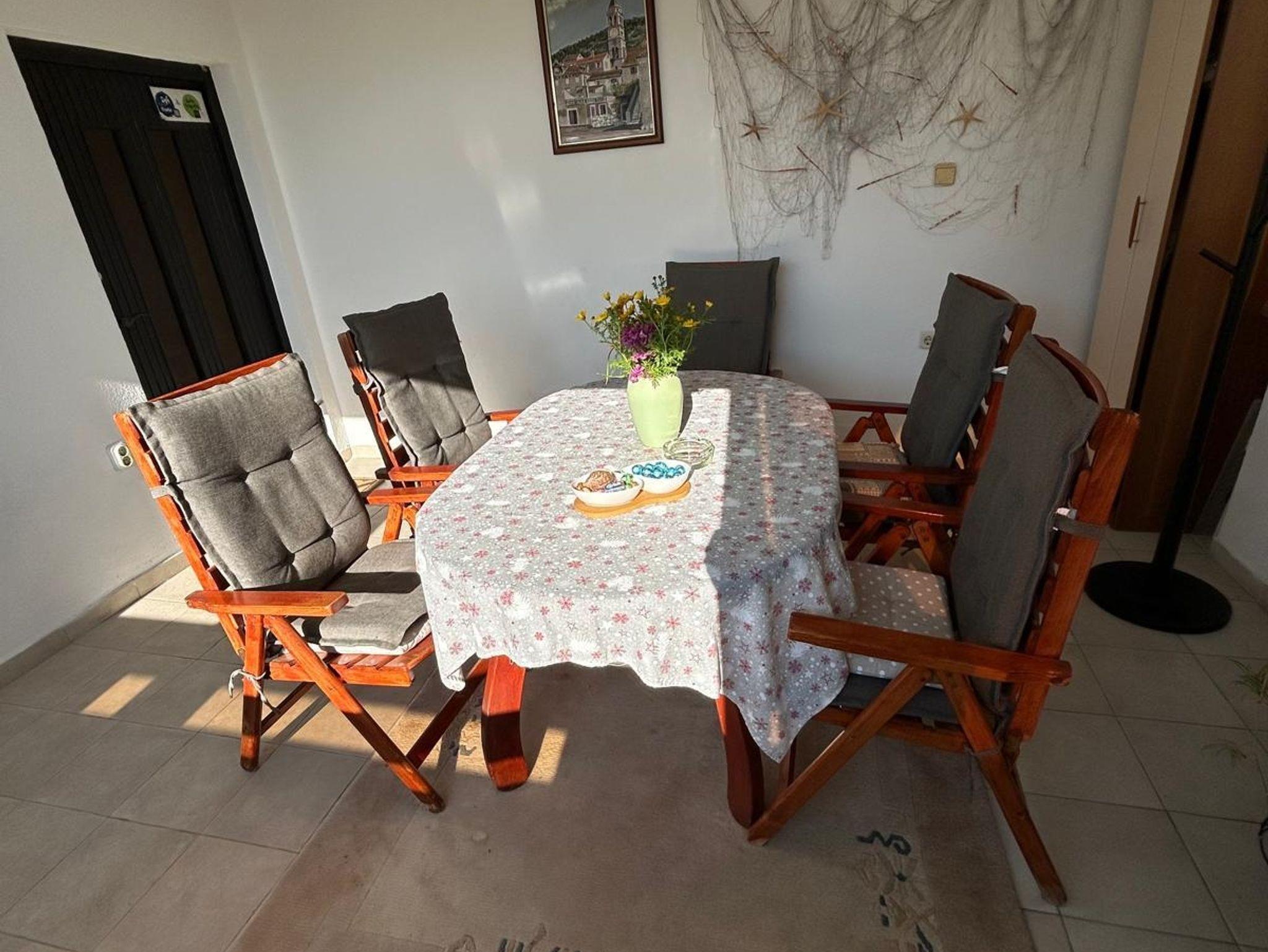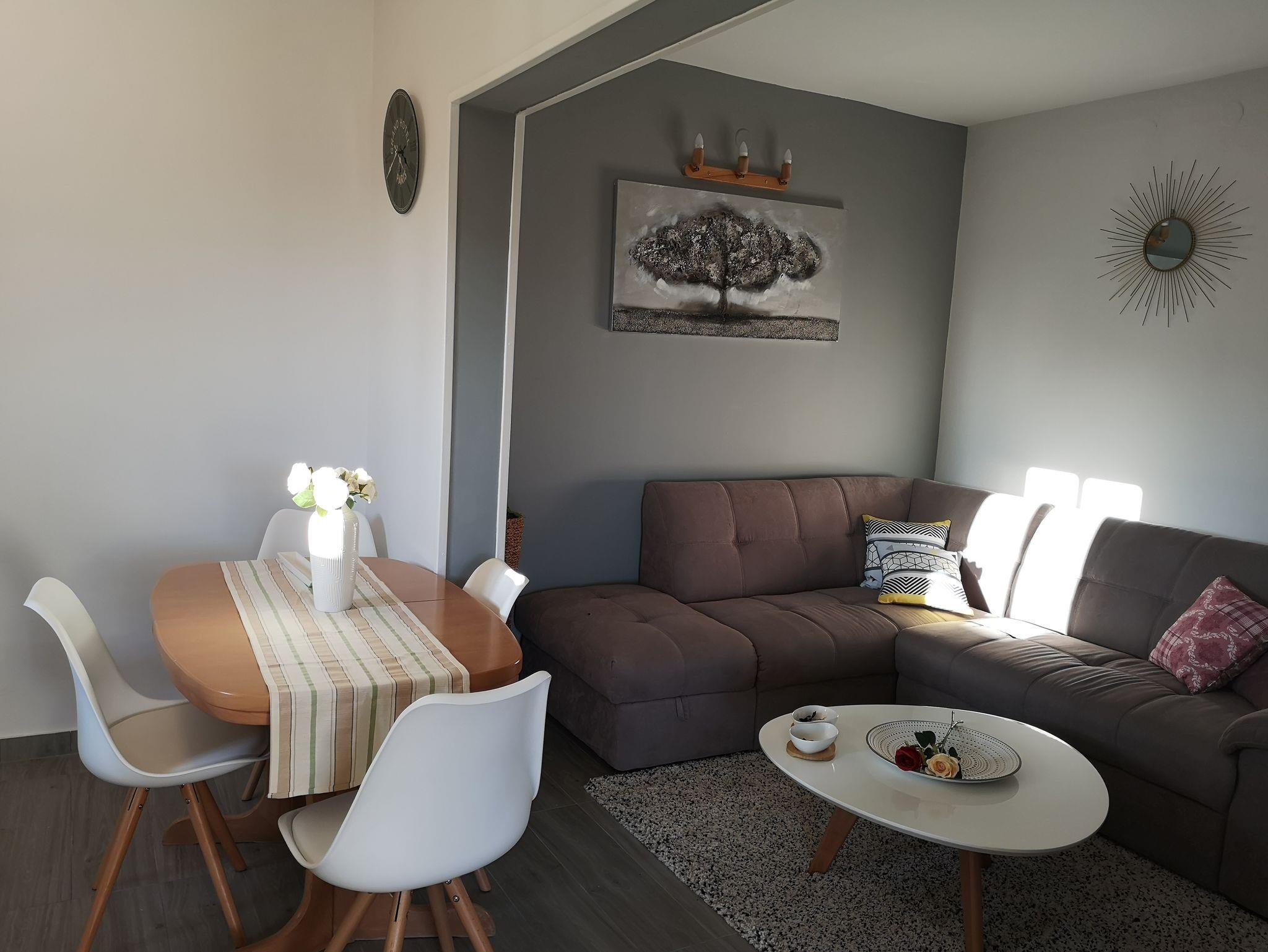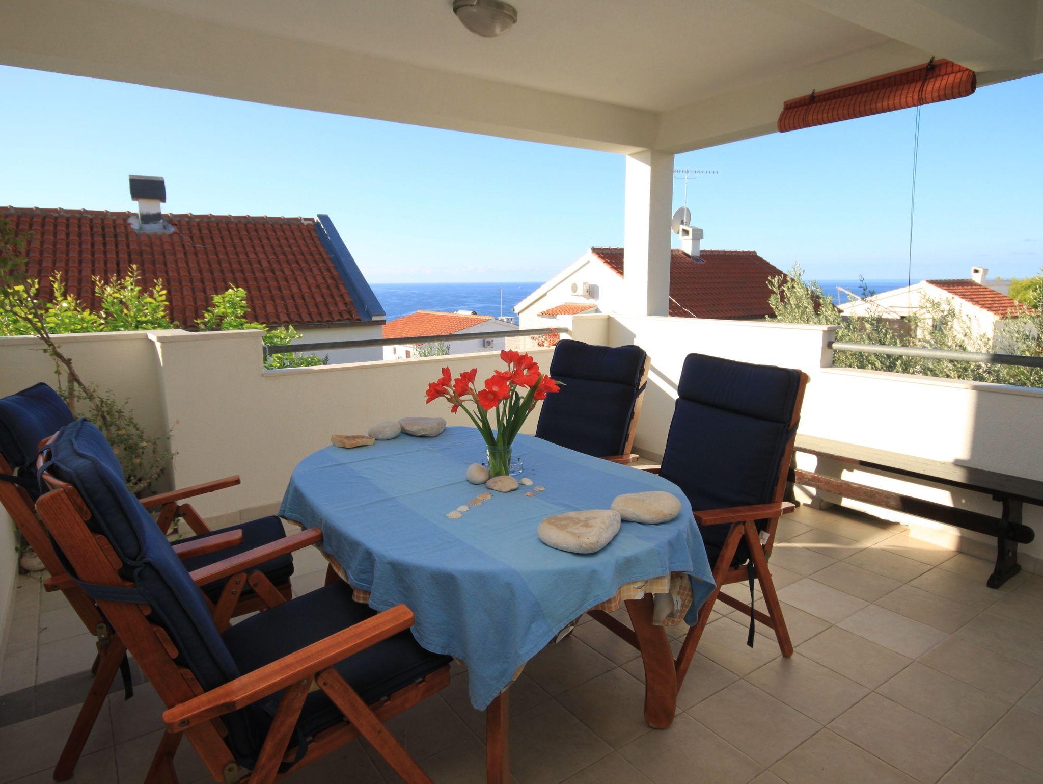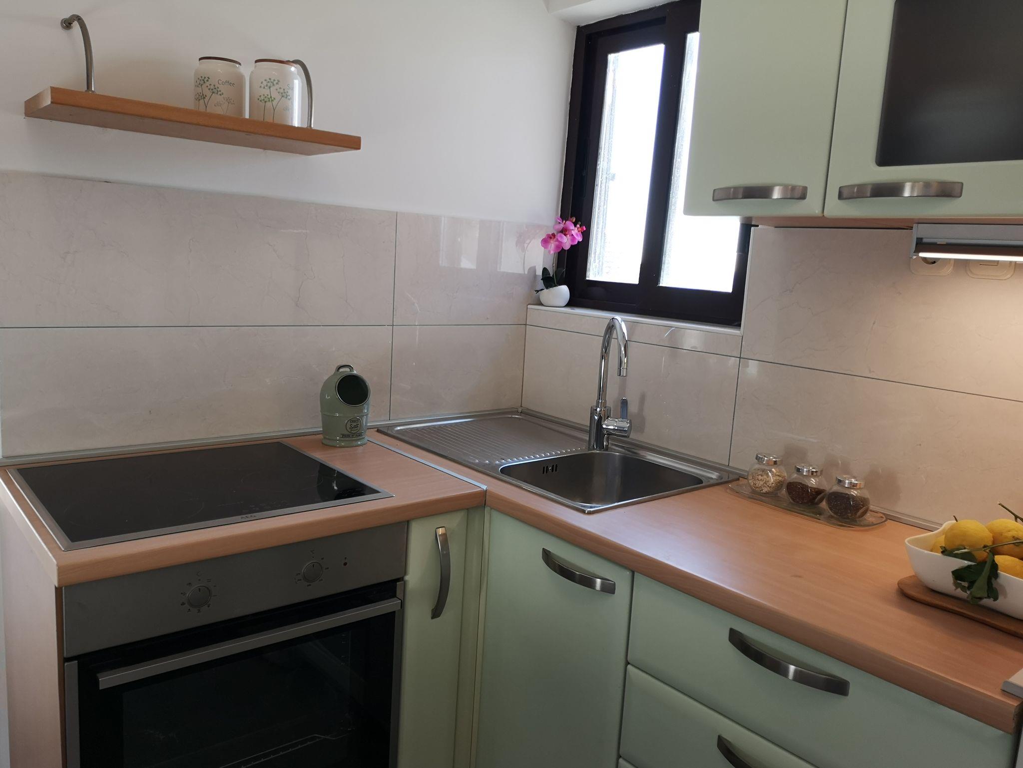 Ferienwohnung bietet Platz für 4 Gäste. Die Betten sind in Schlafzimmern, die es 1 gibt, und in Wohnzimmer, innerhalb einer Gesamtfläche von 38m2, angeordnet. Die Gäste haben eine eigene Terrasse zur Verfügung, auf der sie in warmen Sommernächten genießen können. Das Apartment bietet Meerblick. Für vollen Genuss und Entspannung gibt es einen privaten Grill für Gäste dieser Unterkunft. In der Unterkunftseinheit besteht die Möglichkeit des Mitbringens von Haustieren gegen Aufpreis. IM PREIS INBEGRIFFEN: Kurtaxe, Endreinigung, Klimatisierung, Parkplatz, Internet, Bügeleisen, Bügelbrett, Föhn. VERBINDLICHE ZUSÄTZLICHE KOSTEN: Aufzahlung für Kurzaufenthalte (prozentualer Zuschlag pro Nächtigungsanzahl: 30% - 1, 20% - 2, 10% - 3). UNVERBINDLICHE ZUSÄTZLICHE KOSTEN: Wäschewaschen (5,00 € Waschen), Haustiere (10,00 € pro Nacht). Die Verfügbarkeit zusätzlicher Dienstleistungen in Ihrem reservierten Termin und die Preise derselben (falls nicht aufgeführt) müssen im Voraus überprüft werden. Zusätzliche Dienstleistungen die in der Zahlungsaufforderung nicht aufgeführt sind werden direkt beim Vermieter bezahlt, angenommen der Gast nutzt auch diese. Ermäßigung auf den Grundpreis: Gratistag 14=13 (bei einem Aufenthalt von 14 Tagen oder mehr erhalten Sie einen Gratistag für den Aufenthalt bis 31.12.26).