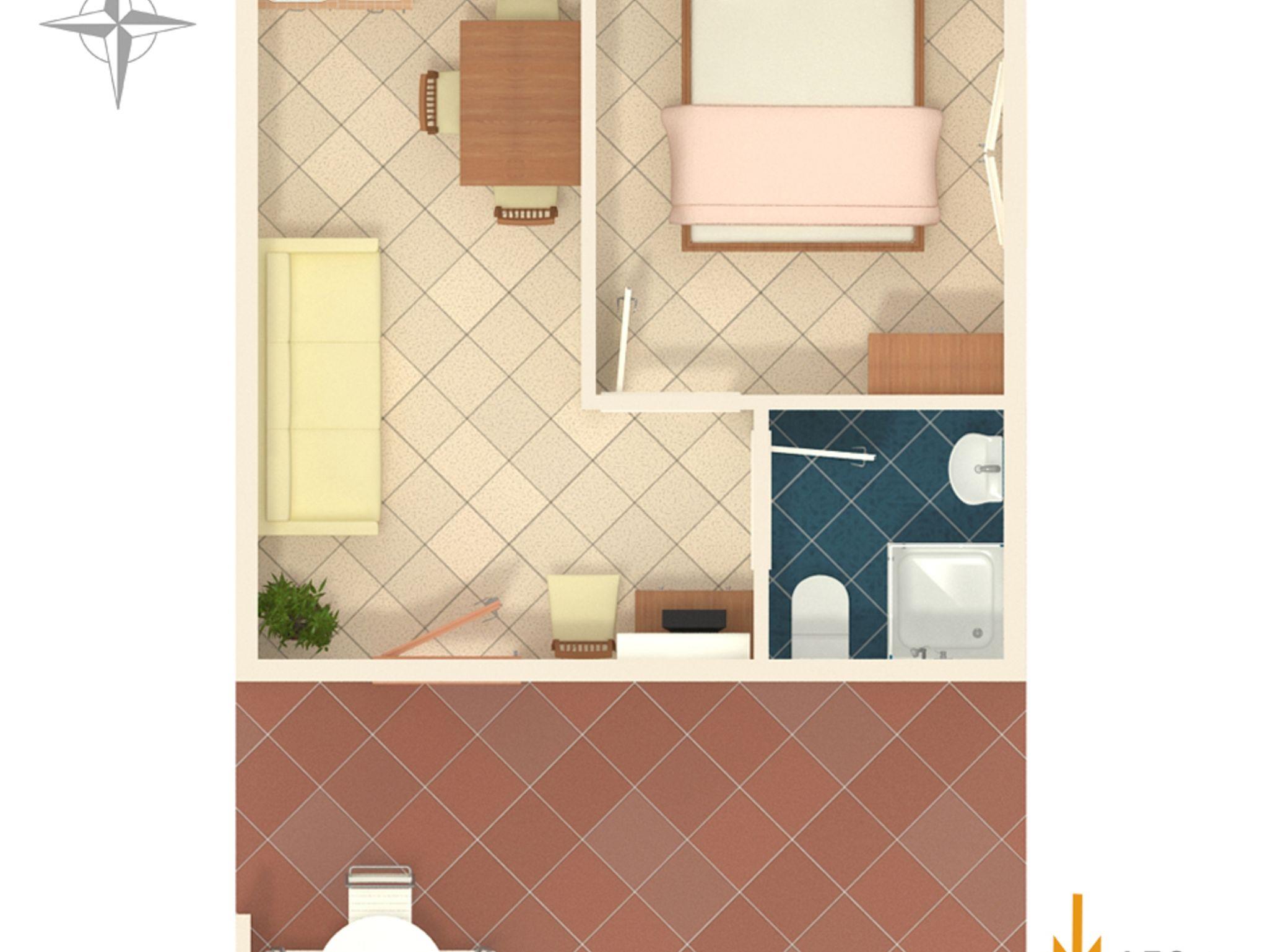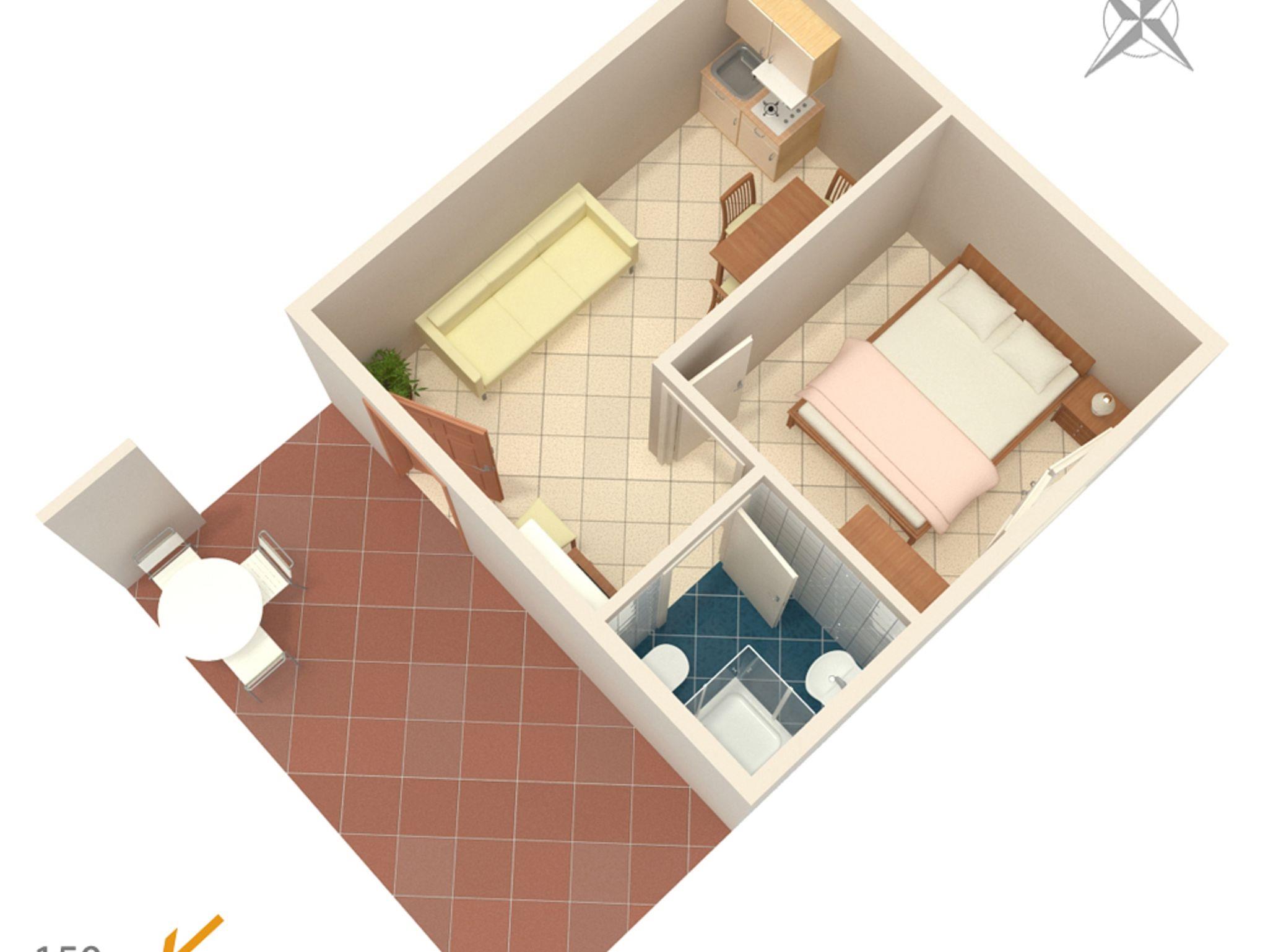 Ferienwohnung bietet Platz für 3 Gäste. Die Betten sind in Schlafzimmern, die es 1 gibt, und in Wohnzimmer, innerhalb einer Gesamtfläche von 25m2, angeordnet. Die Gäste haben eine eigene Terrasse zur Verfügung, auf der sie in warmen Sommernächten genießen können. Es ist erlaubt, Speisen auf dem Gemeinschafts-Grill vorzubereiten. In der Unterkunftseinheit besteht die Möglichkeit des Mitbringens von Haustieren gegen Aufpreis. IM PREIS INBEGRIFFEN: Kurtaxe, Endreinigung, Klimatisierung, Parkplatz, Internet, Wäschewaschen, Kinderbett, Bügeleisen, Bügelbrett, Föhn. VERBINDLICHE ZUSÄTZLICHE KOSTEN: Aufzahlung für Kurzaufenthalte (prozentualer Zuschlag pro Nächtigungsanzahl: 30% - 1, 20% - 2, 10% - 3). UNVERBINDLICHE ZUSÄTZLICHE KOSTEN: Haustiere (5,00 € pro Nacht), Zusatzbett (5,00 € pro Nacht). Die Verfügbarkeit zusätzlicher Dienstleistungen in Ihrem reservierten Termin und die Preise derselben (falls nicht aufgeführt) müssen im Voraus überprüft werden. Zusätzliche Dienstleistungen die in der Zahlungsaufforderung nicht aufgeführt sind werden direkt beim Vermieter bezahlt, angenommen der Gast nutzt auch diese. Ermäßigung auf den Grundpreis: Gratistag 14=13 (bei einem Aufenthalt von 14 Tagen oder mehr erhalten Sie einen Gratistag für den Aufenthalt bis 31.12.26).