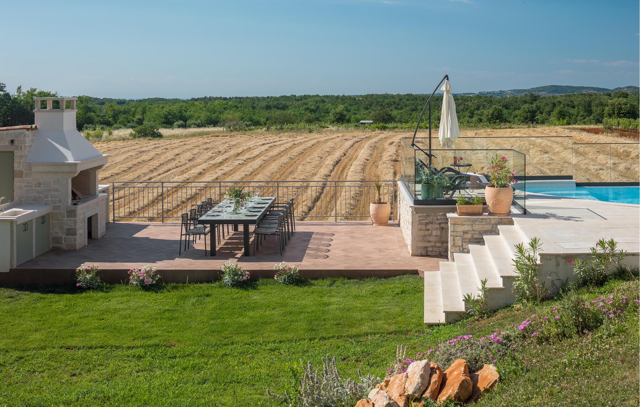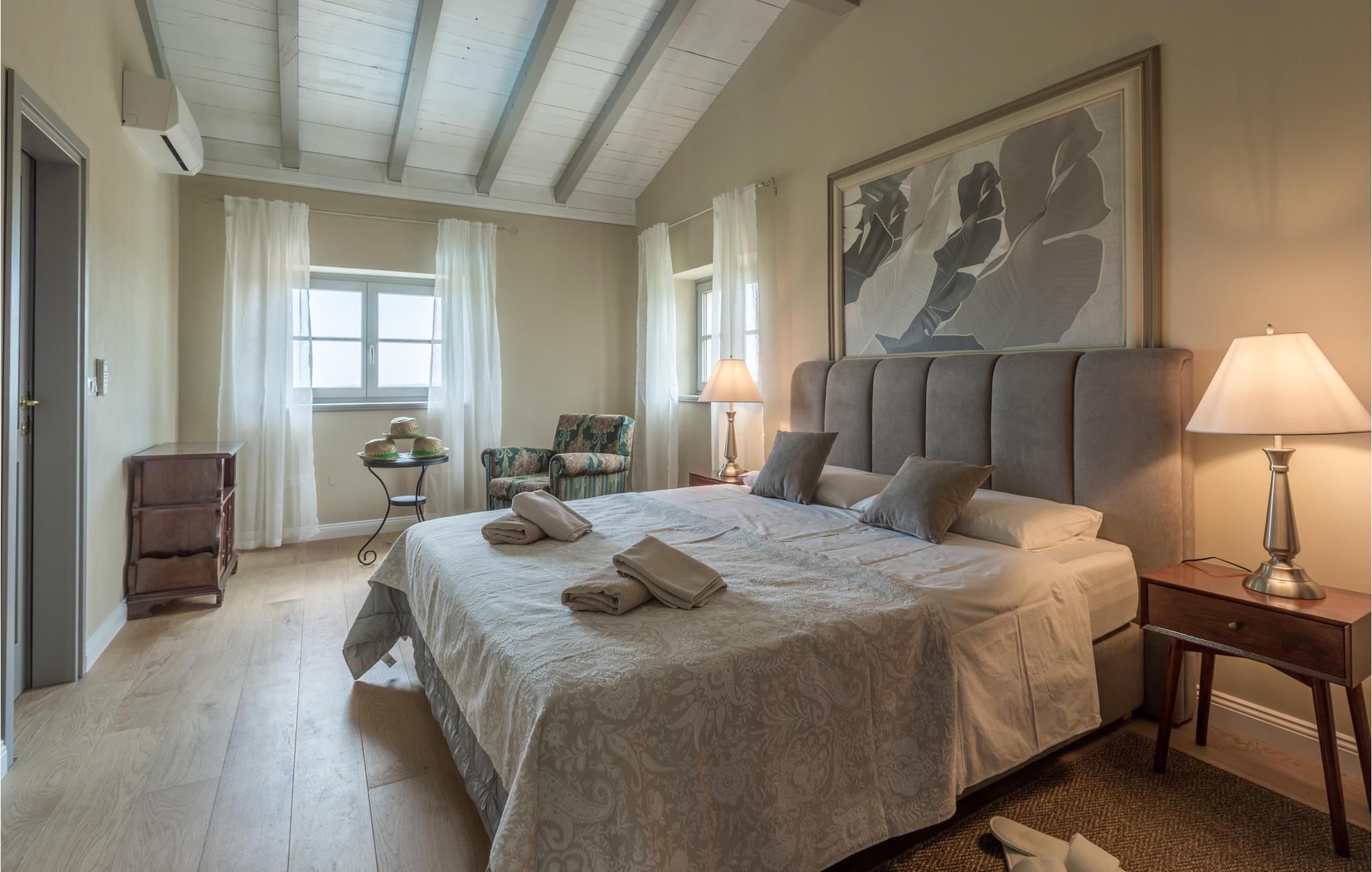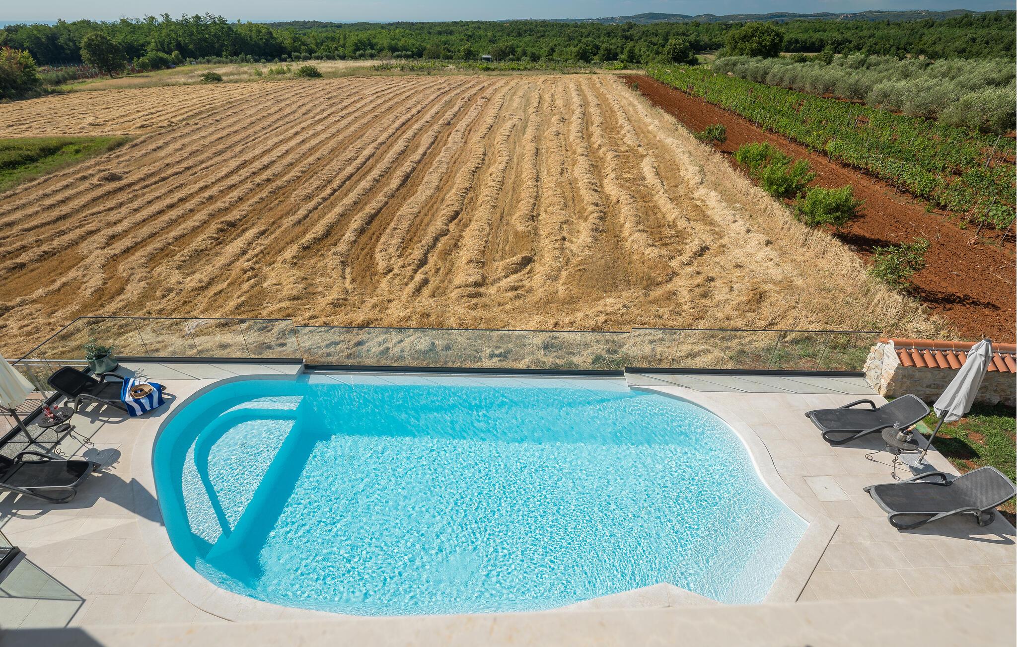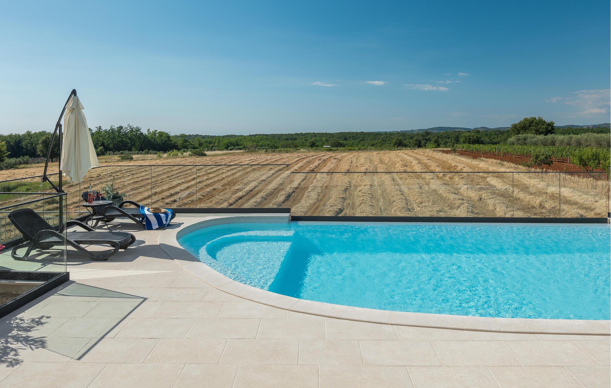 Dette rummelige og smagfulde stenhus byder dig velkommen med masser af plads og en stor swimmingpool og have. Undslip din hverdagsrutine og find noget hvile nær en skov i den lille landsby Baldasi. Det indbydende hus er lyst og komfortabelt og tilbyder dig og din udvidede familie den ideelle planløsning på flere niveauer til din afslappende ferie. Nyd det åbne rumdesign, så du kan deltage i, hvad der sker i stuen fra køkkenet og få gode samtaler. Udearealet er heller ikke på nogen måde ringere end huset. Glæd dig til den overdækkede terrasse, som er et godt sted at grille og til socialt samvær om aftenen med god mad, leg og snak. Du kan tilbringe sommerdagene med at bade og solbade i og omkring poolen og se dine børn lege og boltre sig i haven. Oplev det istriske landskab, mens du cykler eller vandrer. Du kan også besøge de omkringliggende byer på Adriaterhavskysten. En kort køretur tager dig til den smukke havneby Porec, et populært sommerferiested med en historisk gammel bydel og en berømt basilika fra det 6. århundrede. For aktive feriegæster er der talrige muligheder for vandsport ved havet, men der er også meget at opdage inde i landet. Men du kan også bare slappe af på stenstrandene og lade din sjæl dingle til lyden af havet!